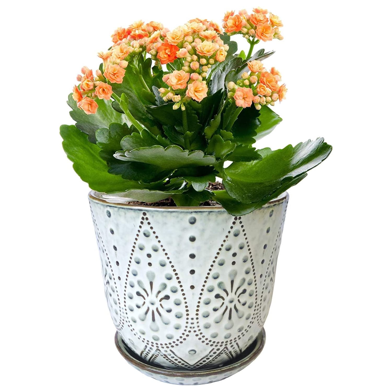 6 Inch Ceramic Orchid Pot -Set of 2 This ceramic planter perfectly suitable planting lovely and cute plants, ceramic saucer can store water when excessive watering and keep the table clean.It is a suitable gift for succulents enthusiasts, gardening lovers.Cup-shaped retro planters are good for orchids, succulent, cactus, other flowers and green plants, large plant containers can be placed on tabletops, windowsills and floors.We are committed to providing plant pot for plants and a source of happiness for you.If you have any questions, please contact us and we will be happy to help you. Material: Ceramic Package: with 2 ceramic planters, 2 saucers, and 2 Mesh Pads, plants are not included.