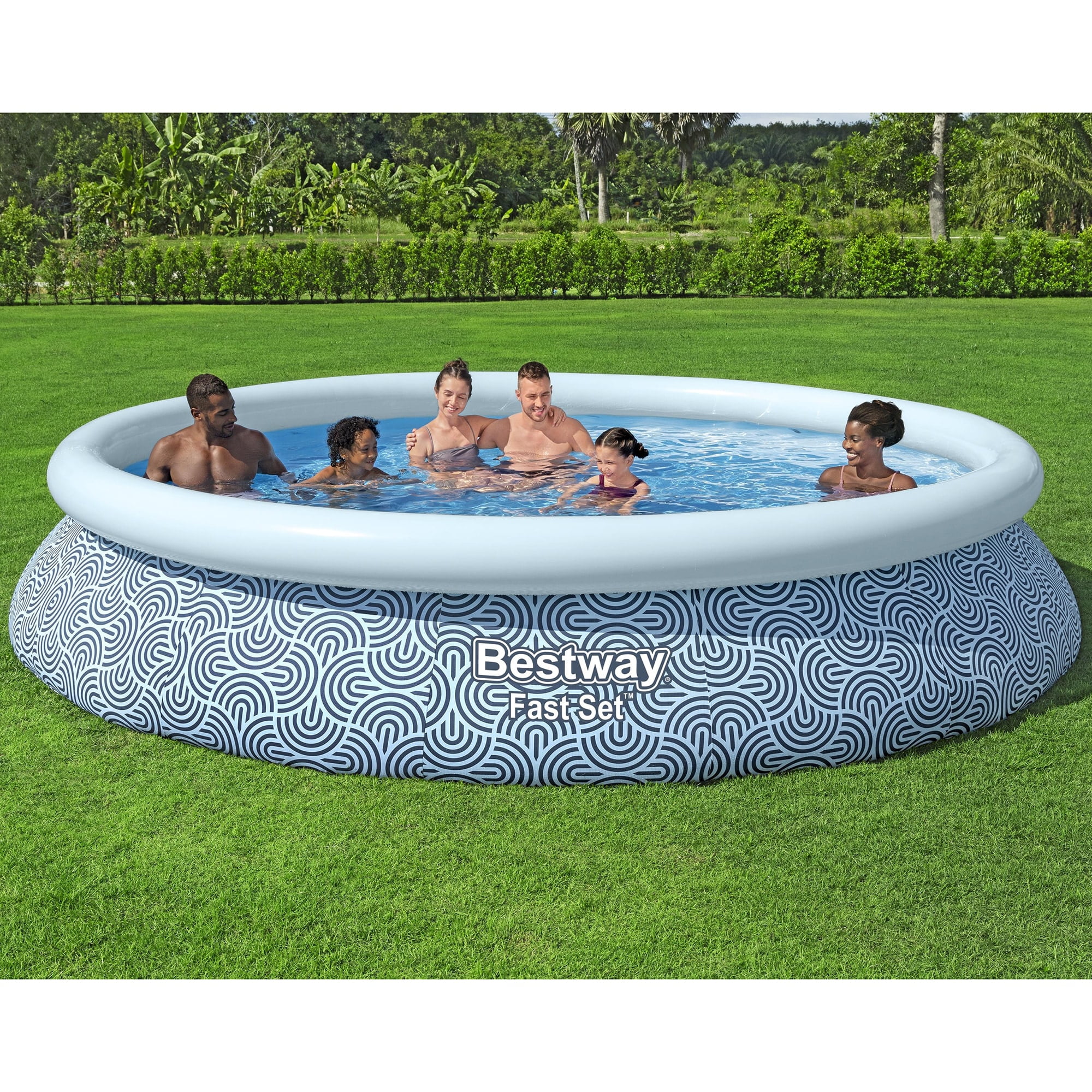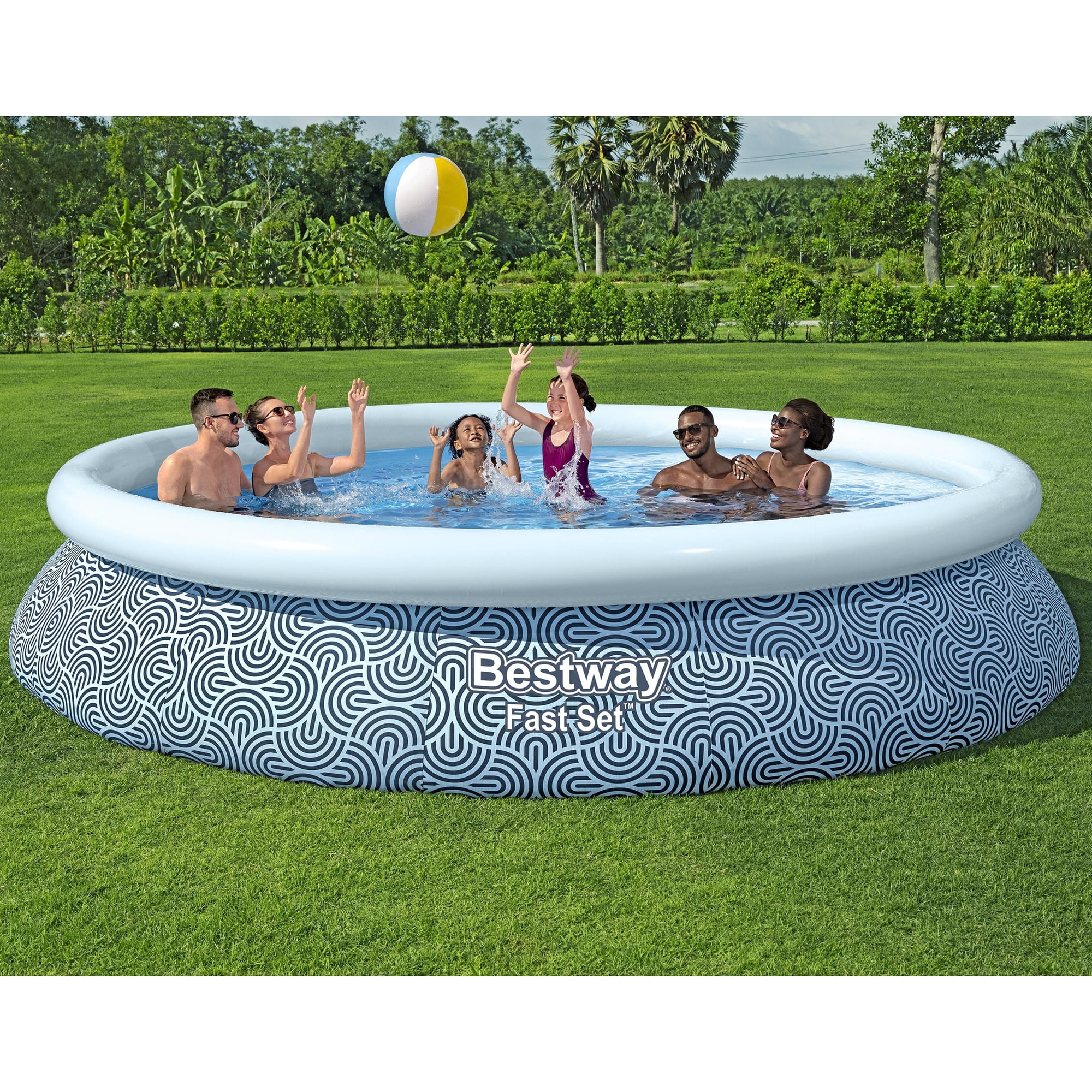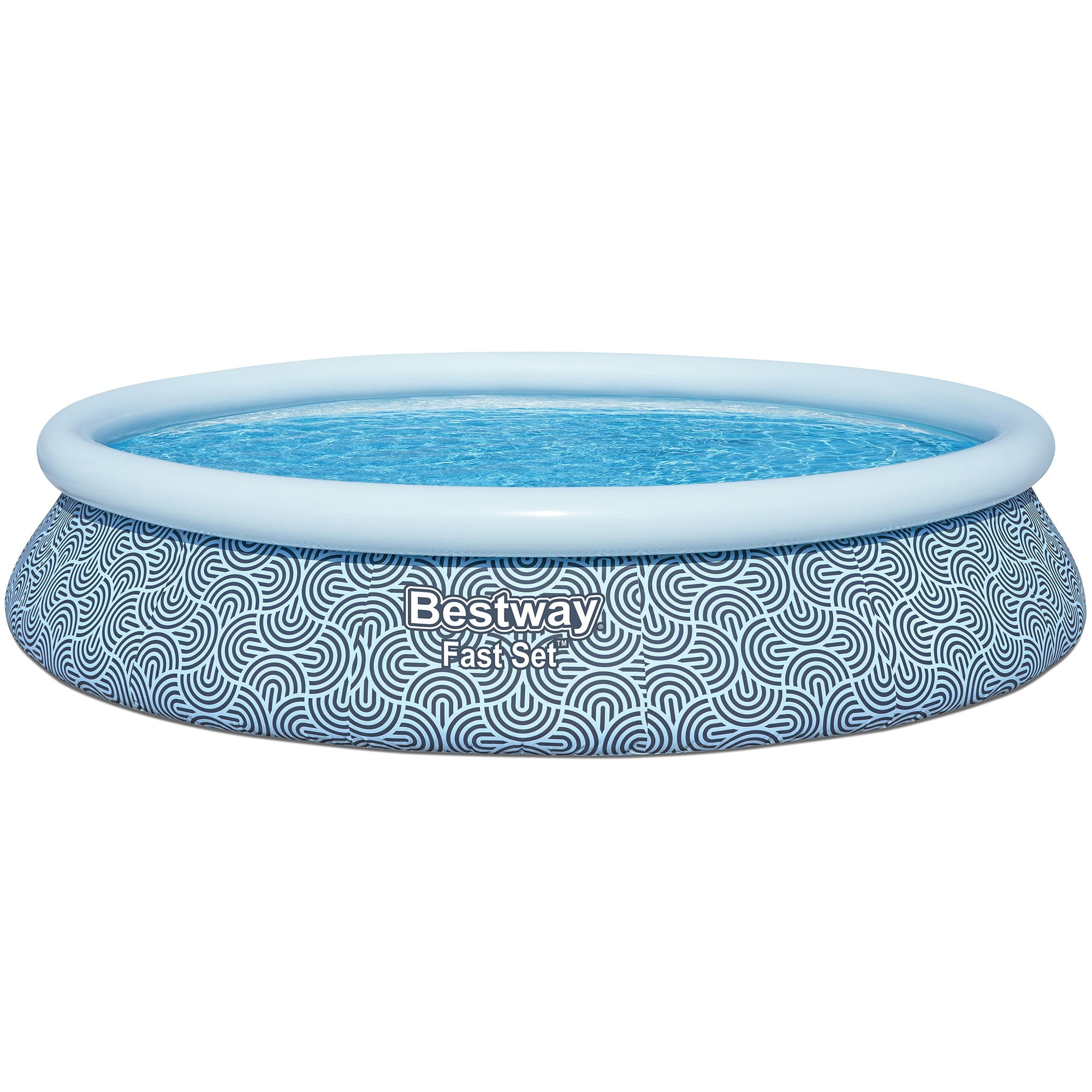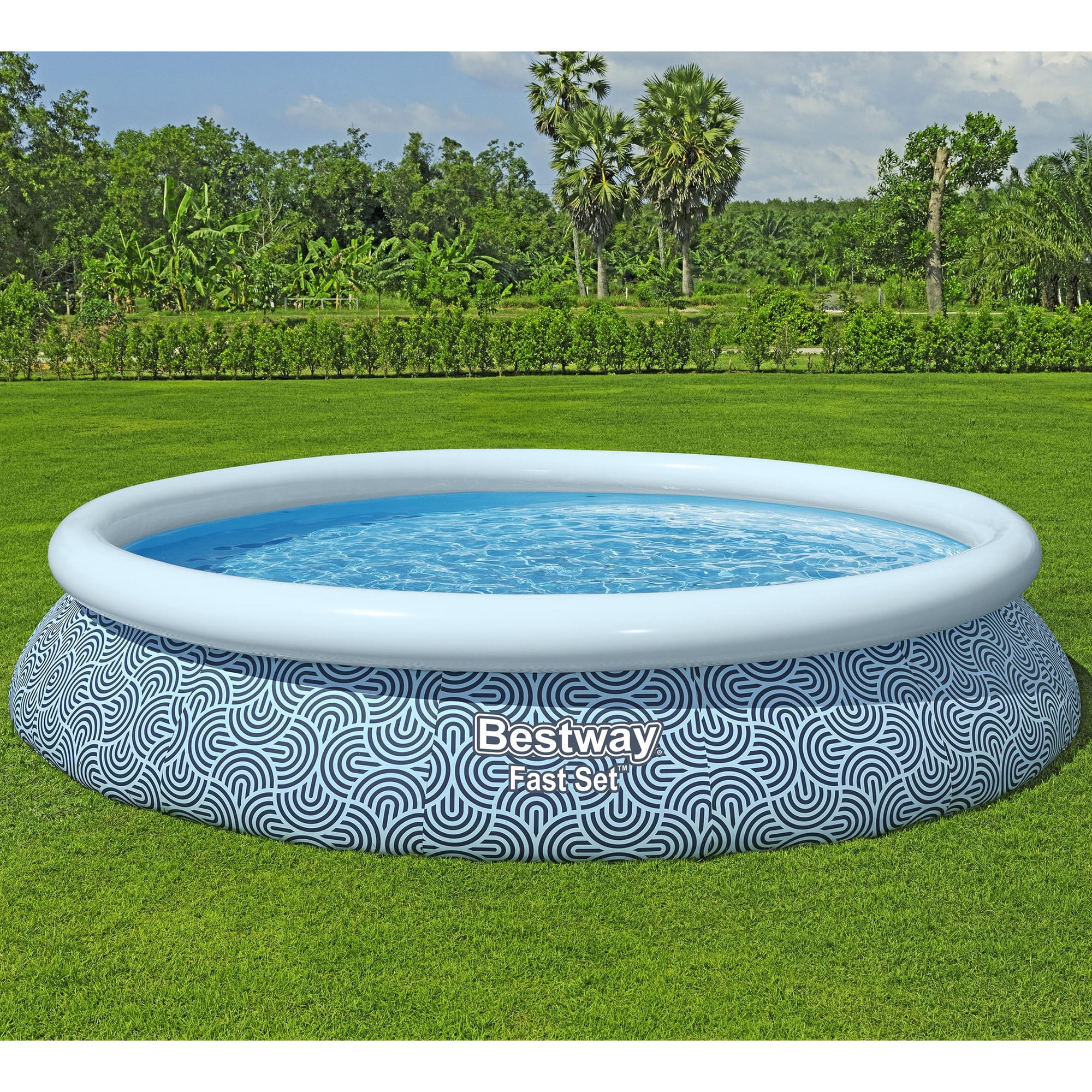 Bestway: Fast Set Pool Set – 15′ x 33″ – Blue, Inflatable Above Ground Swimming Pool, Water Filter Pump, Tritech Material, 2,556 Gal, Fill-Rise Setup
