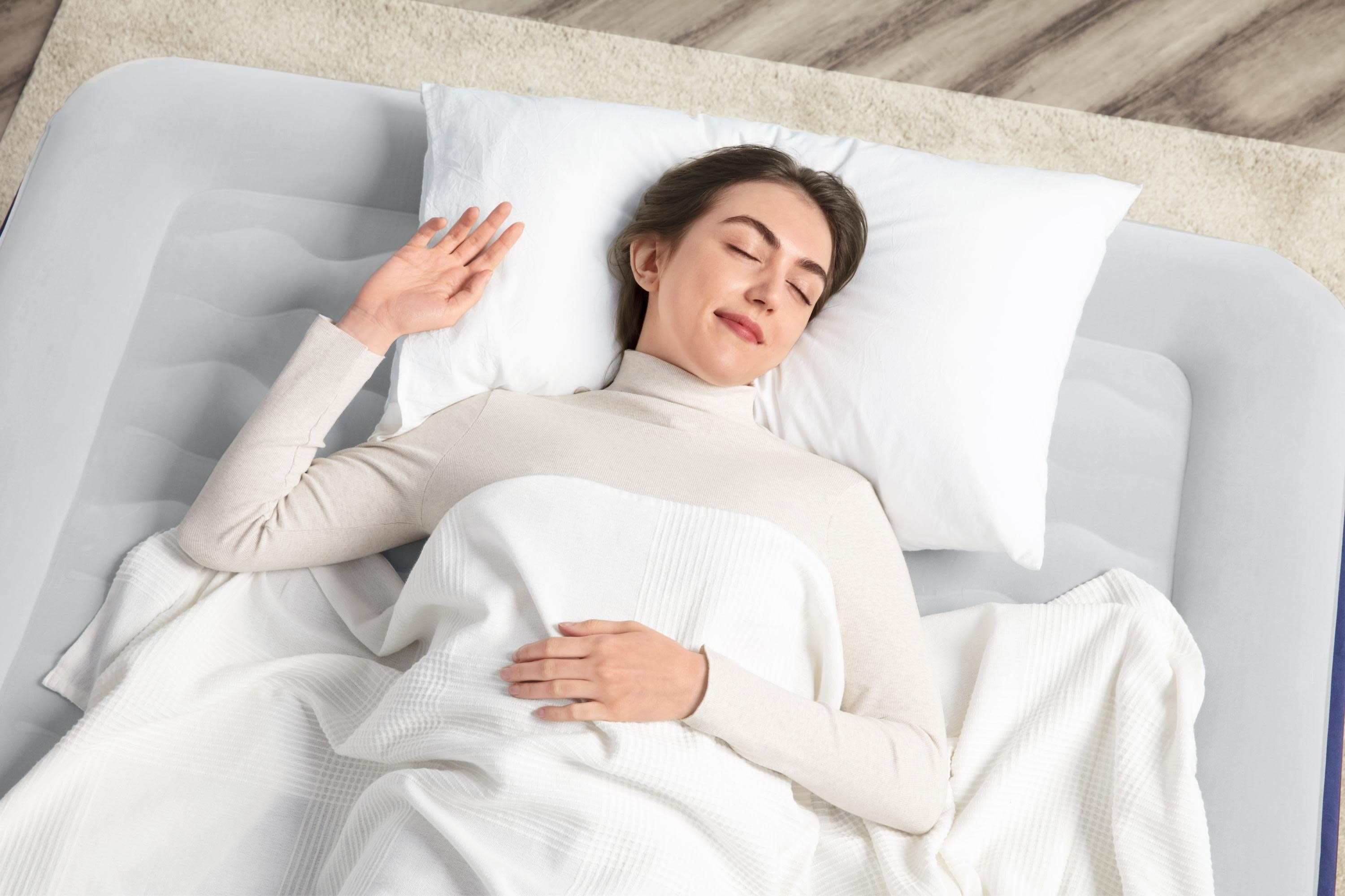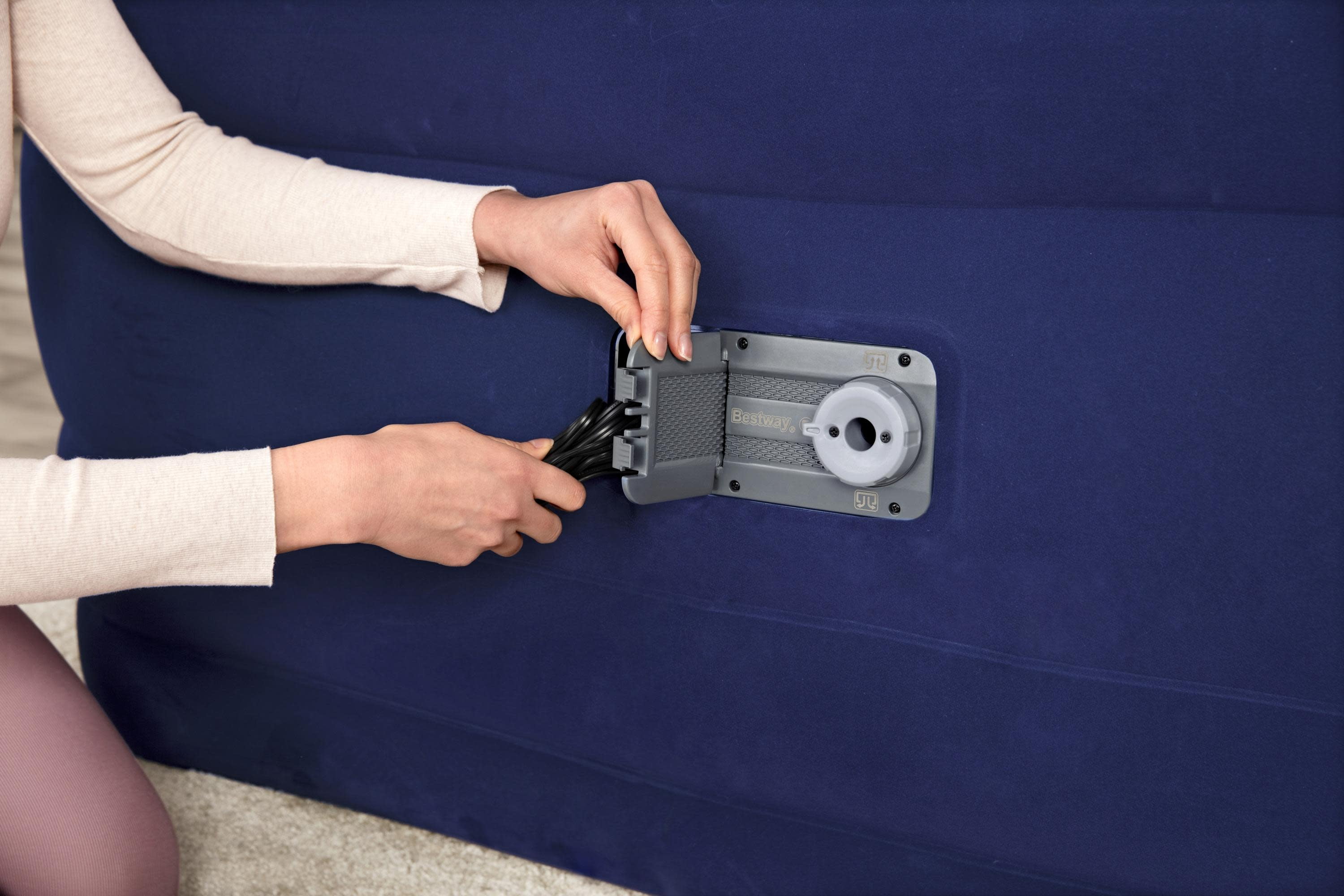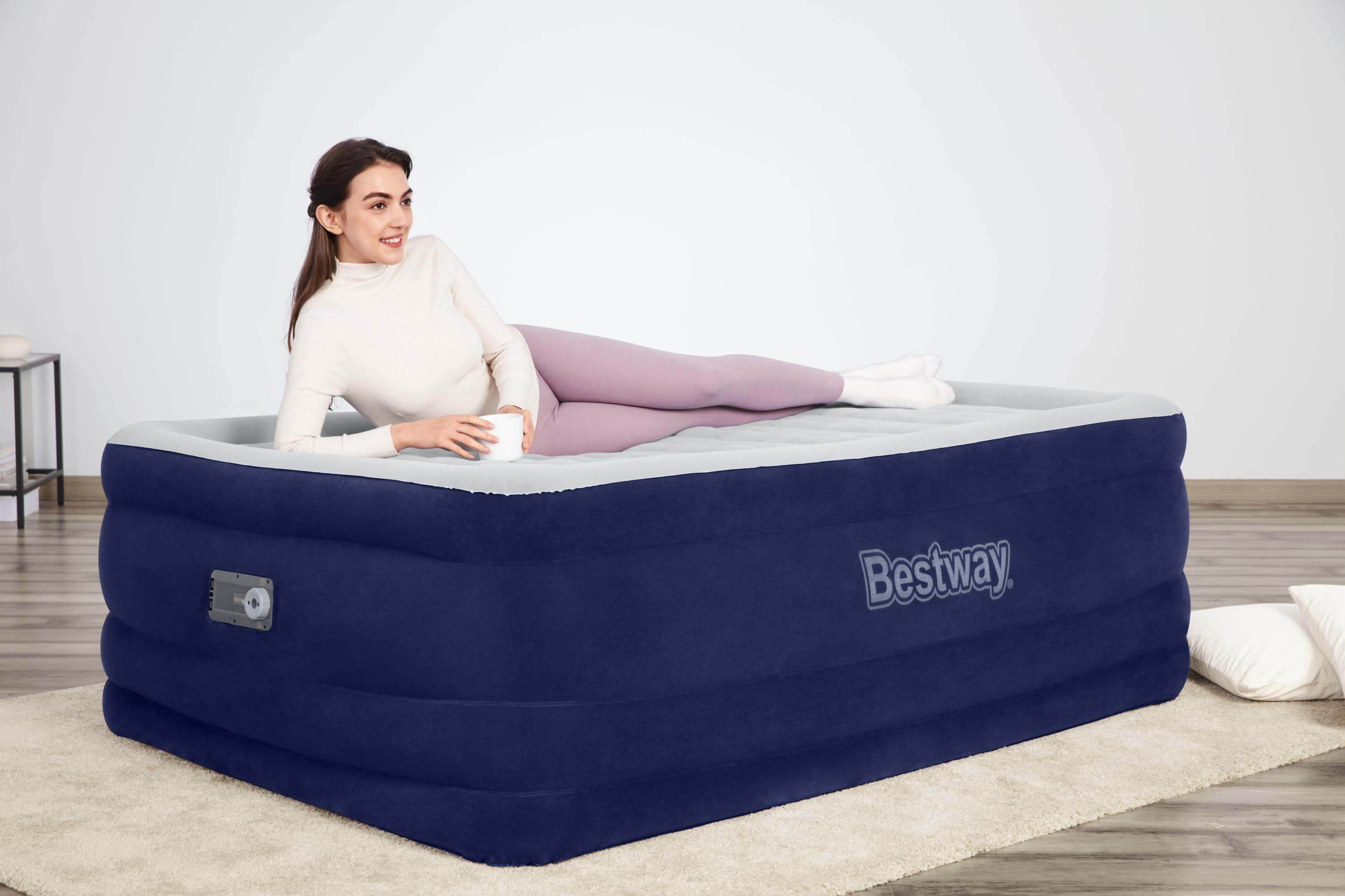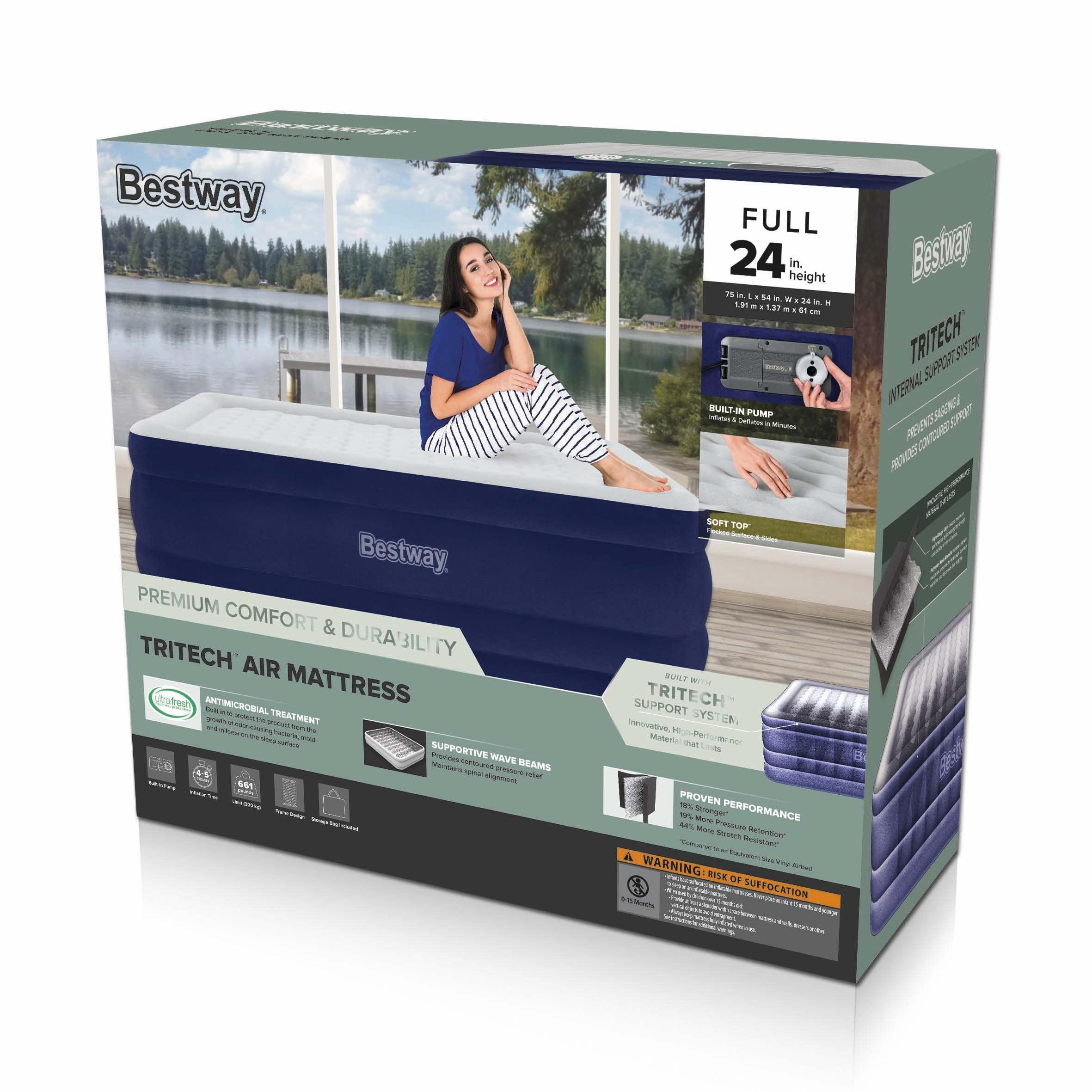 Wake up renewed and refreshed on the Bestway® Tritech™ Air Mattress! This 24 in. tall, Full-sized bed promises strength, durability and comfort all night long. Its compact size and built-in pump make it quick and convenient for use whenever you need it. Plus, with the Ultra-Fresh™ antimicrobial surface, your bed will be protected from the growth of odor-causing bacteria, mold and mildew on the sleep surface. Durable Construction: With a comfortable sleeping surface and sturdy construction, a great night’s sleep is right around the corner. The internal structure of this bed is made with Tritech™ material offering durability and strength, while also allowing the mattress to keep the same shape no matter how many times it’s inflated and deflated. Specifically engineered for firmness, this material minimizes air loss throughout the night.
