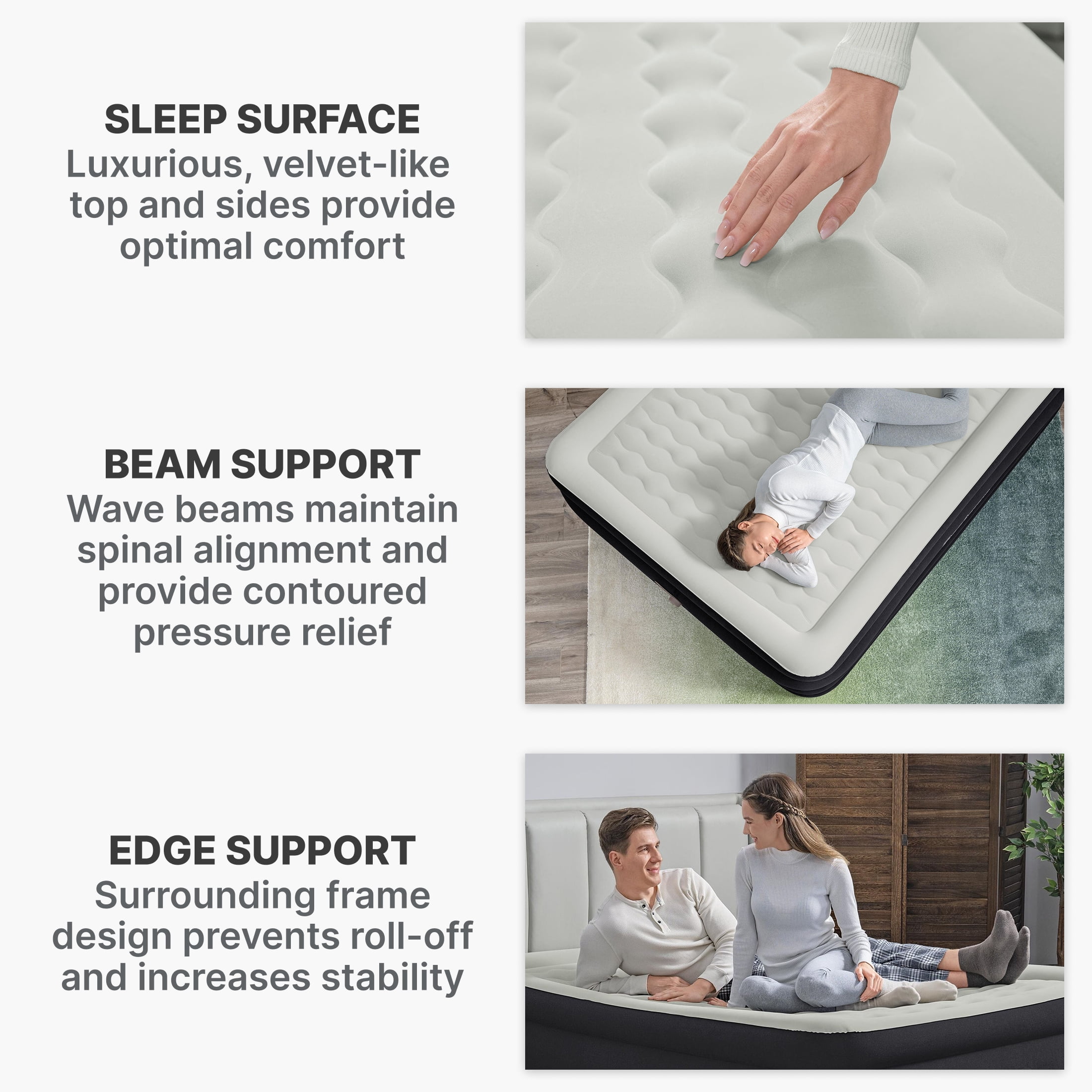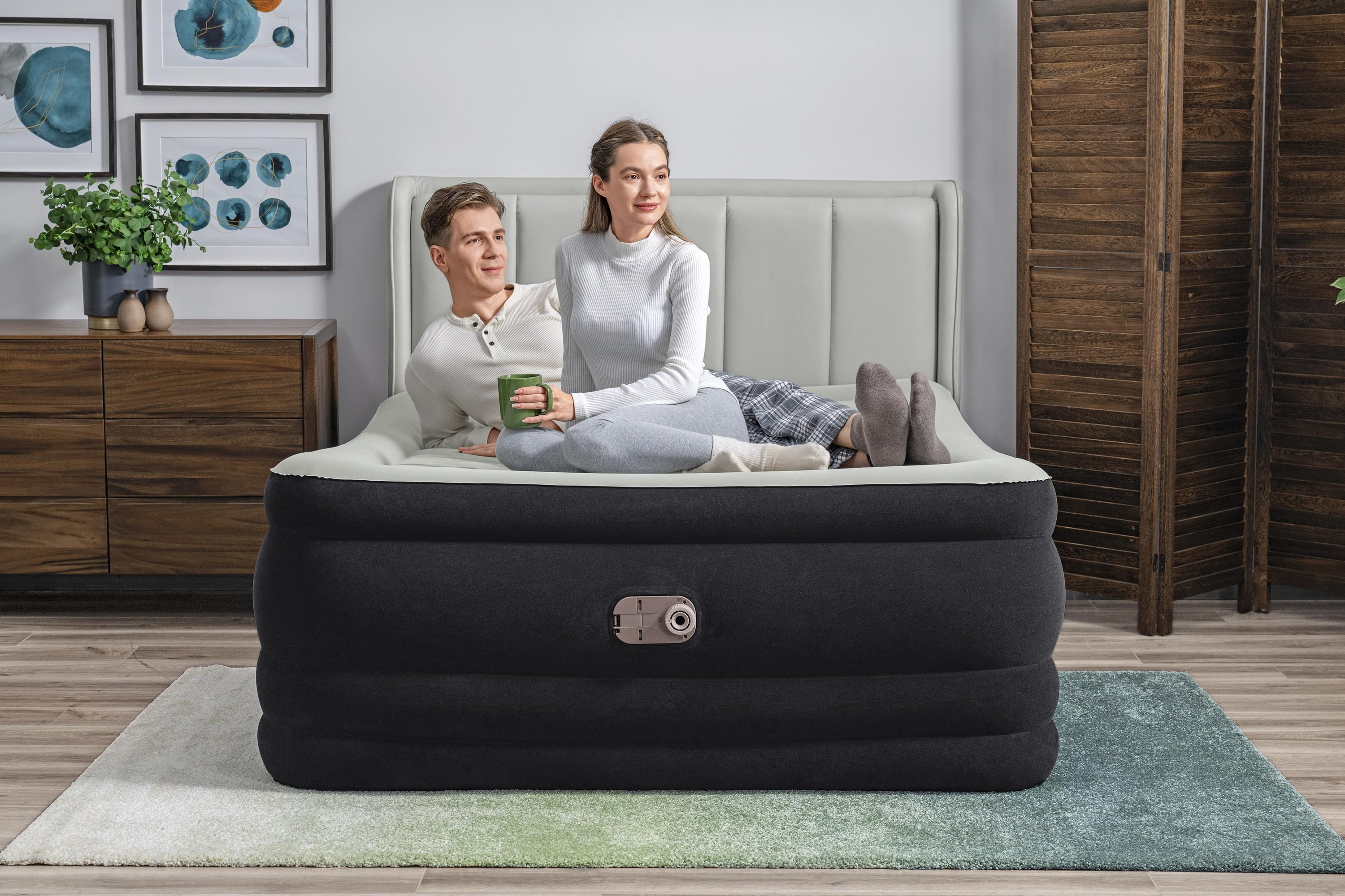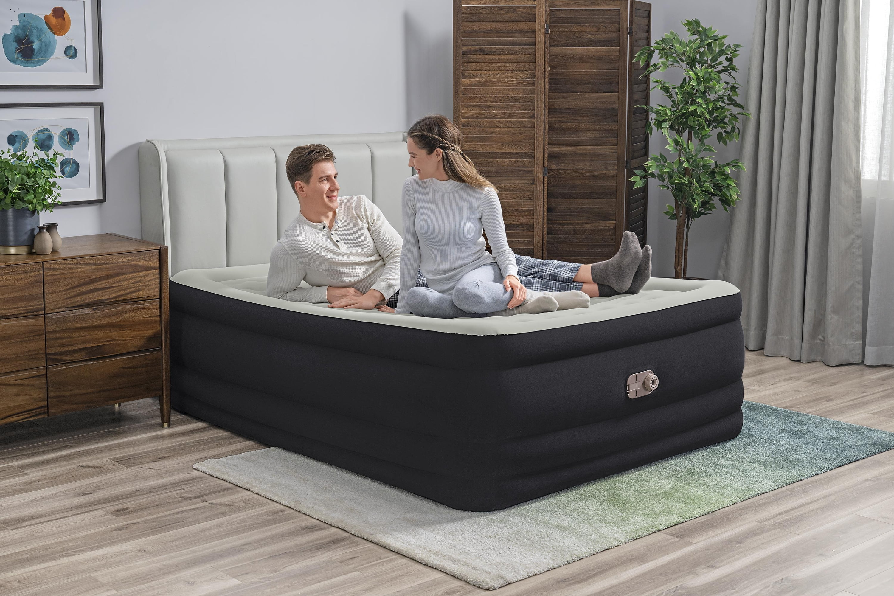 Size: 80 in. x 60 in. x 24 in. / 2.03 m x 1.52 m x 61 cm Queen Air Mattress – fits up to 2 adults Built-in 110-120V AC pump inflates the bed in 5-6 minutes Durable Tritech® air mattress construction can withstand the stress, weight and movement that come with a great night’s sleep Surrounding frame design prevents roll-off and increases comfort Comfortable flocked sleeping surface and sides Weight Capacity: 661 lbs (300 kg)