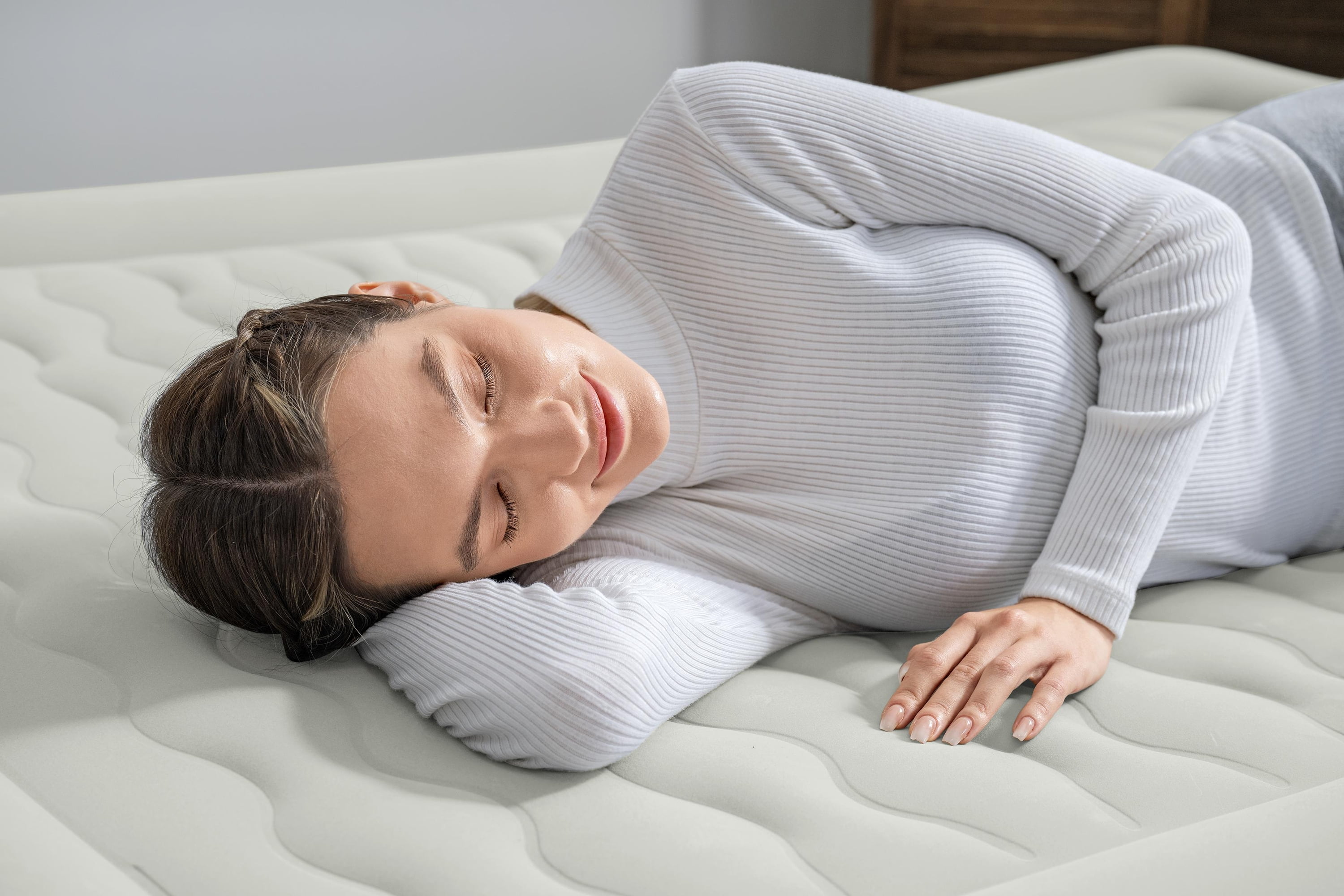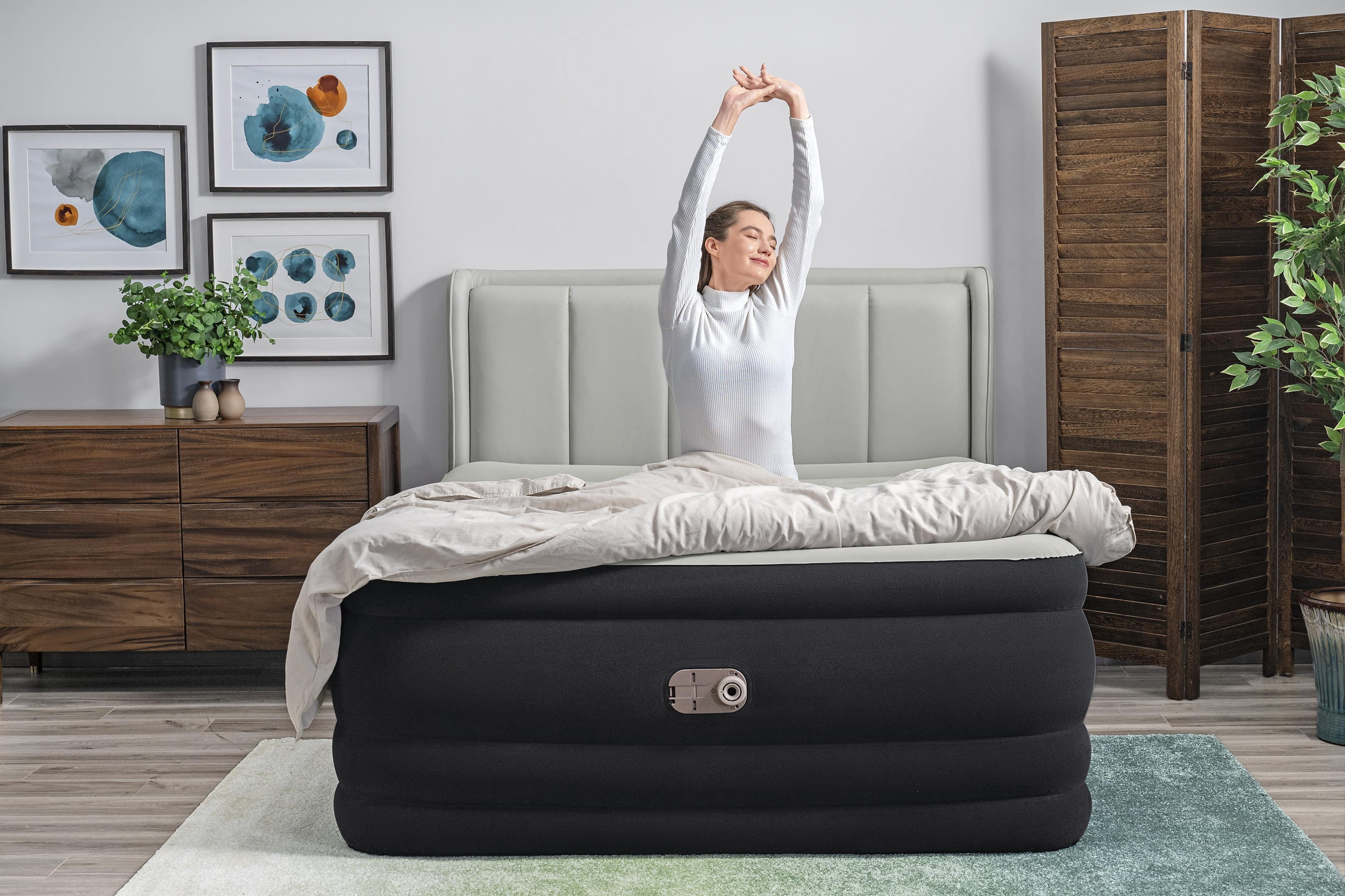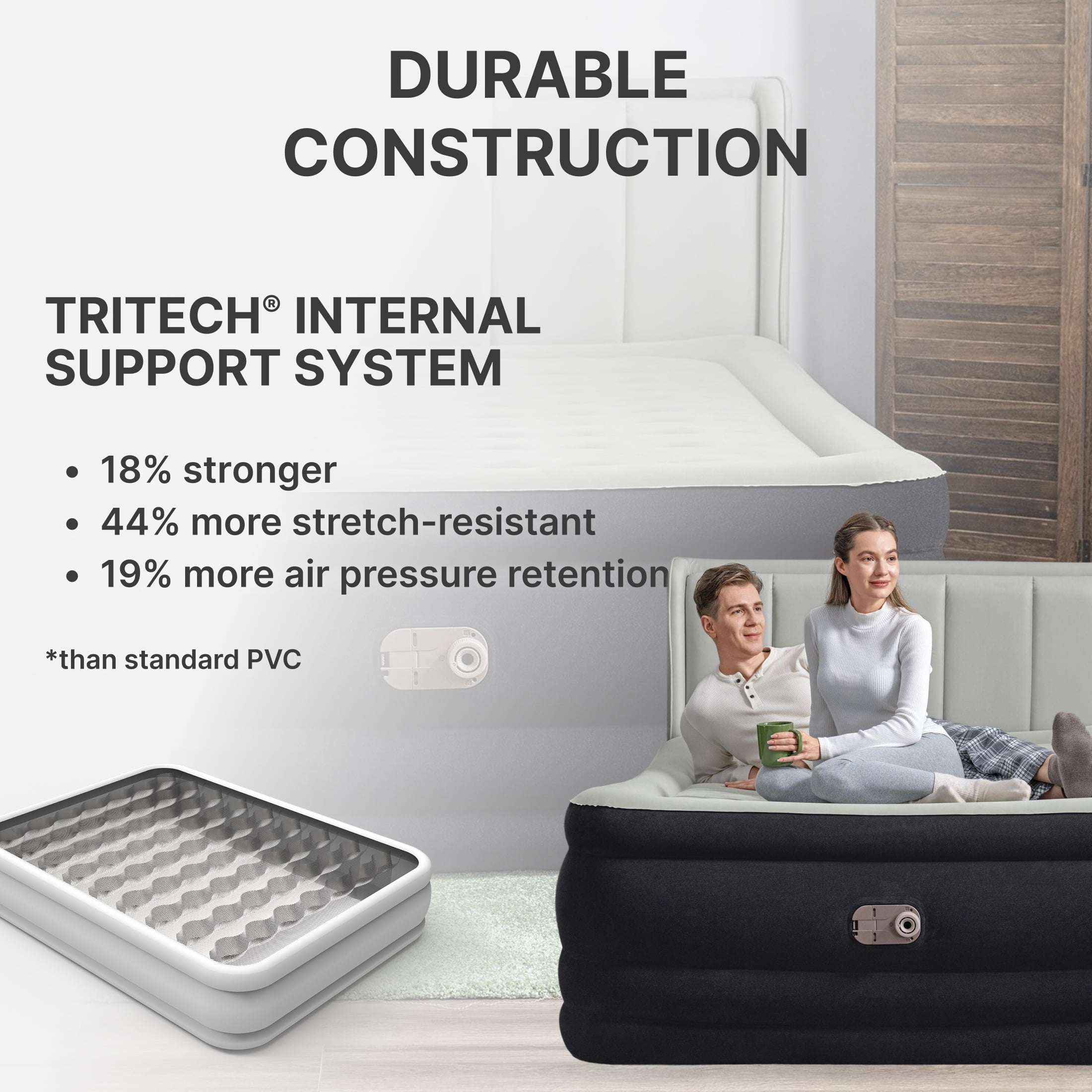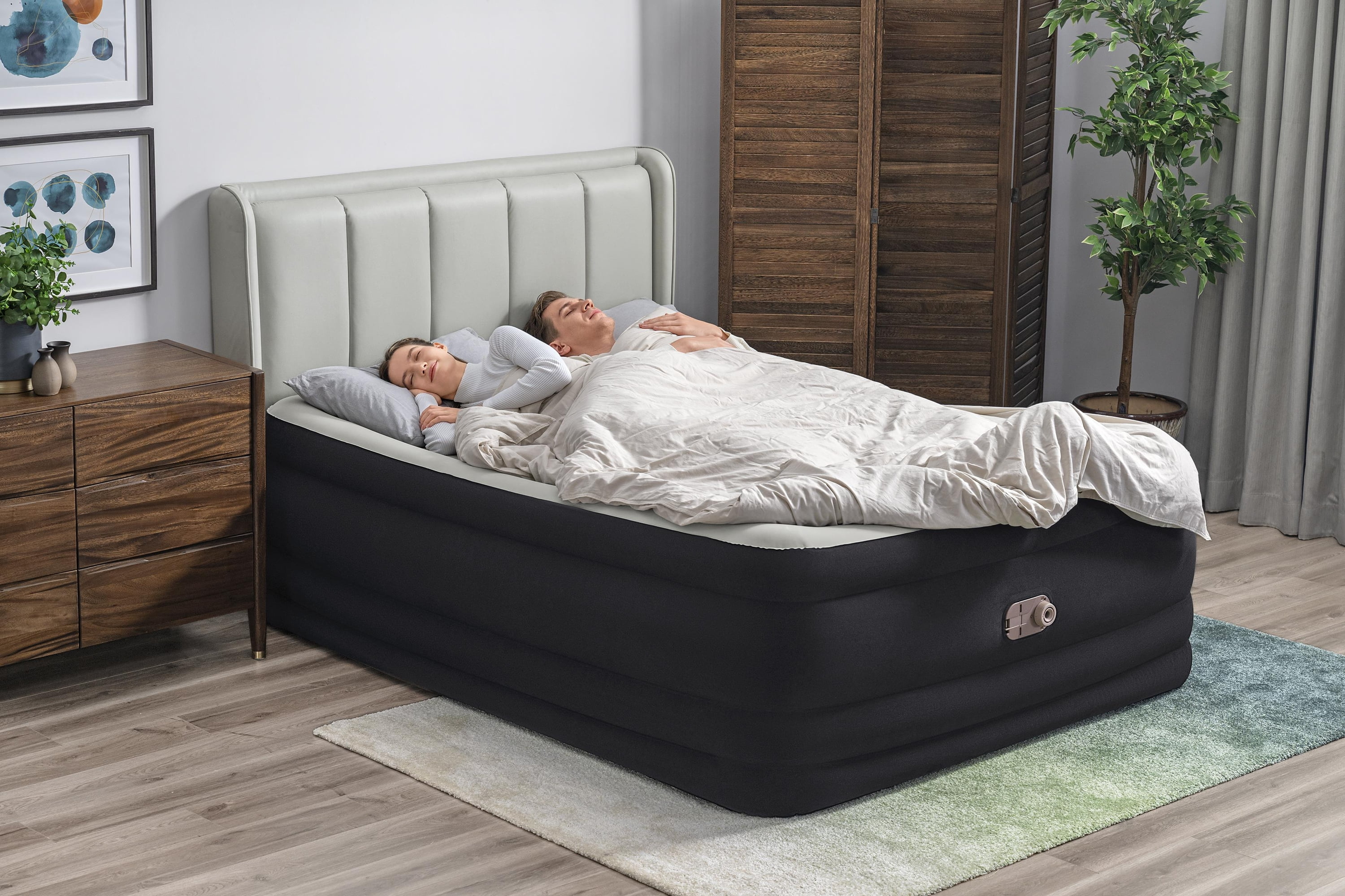 Wake up renewed and refreshed on the Bestway® Tritech® Air Mattress! This Queen-sized bed promises strength, durability and comfort all night long. Its compact size and built-in pump make it quick and convenient for use whenever you need it. Durable Construction: With a comfortable sleeping surface and sturdy construction, a great night’s sleep is right around the corner. The internal structure of this bed is made with Tritech material offering durability and strength, while also allowing the mattress to keep the same shape no matter how many times it’s inflated and deflated. Specifically engineered for firmness, this material minimizes air loss throughout the night. Tritech material increases internal stretch-resistance and provides contoured support for all night comfort. This durable, stress-tested material can withstand all of the weight and movement that comes with a great night’s sleep. Simple Setup: This air mattress inflates in 5-6 minutes so it is ready for bed when you are. The built-in pump allows for easy inflation, and the quick deflate screw valve allows for easy deflation after use. Simply place your flattened bed in the included carrying bag for easy transport and storage.
