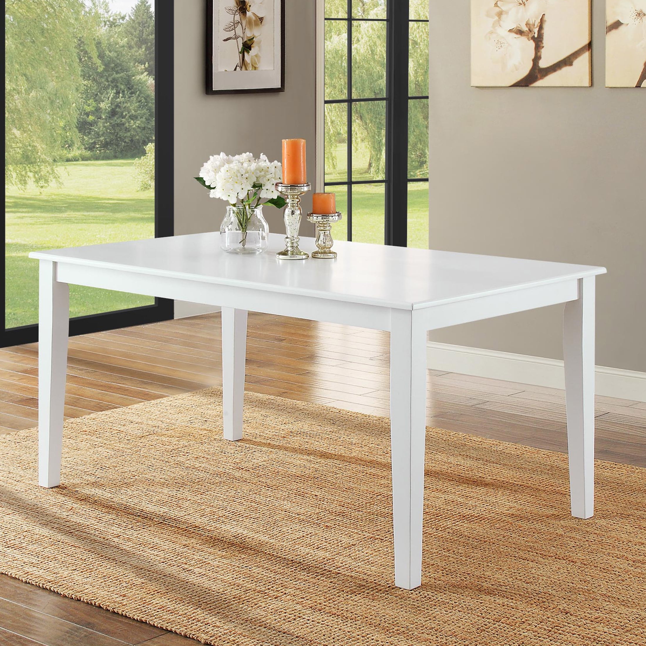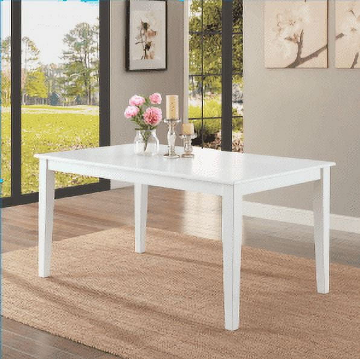 Seats up to 6 people Solid wood and veneer construction Clean white finish Contemporary design Easy to assemble Dimensions: 58.5″L x 35.5″W x 30″H (148.6 cm x 90.2 cm x 76.2 cm) Model# BH17-084-097-29