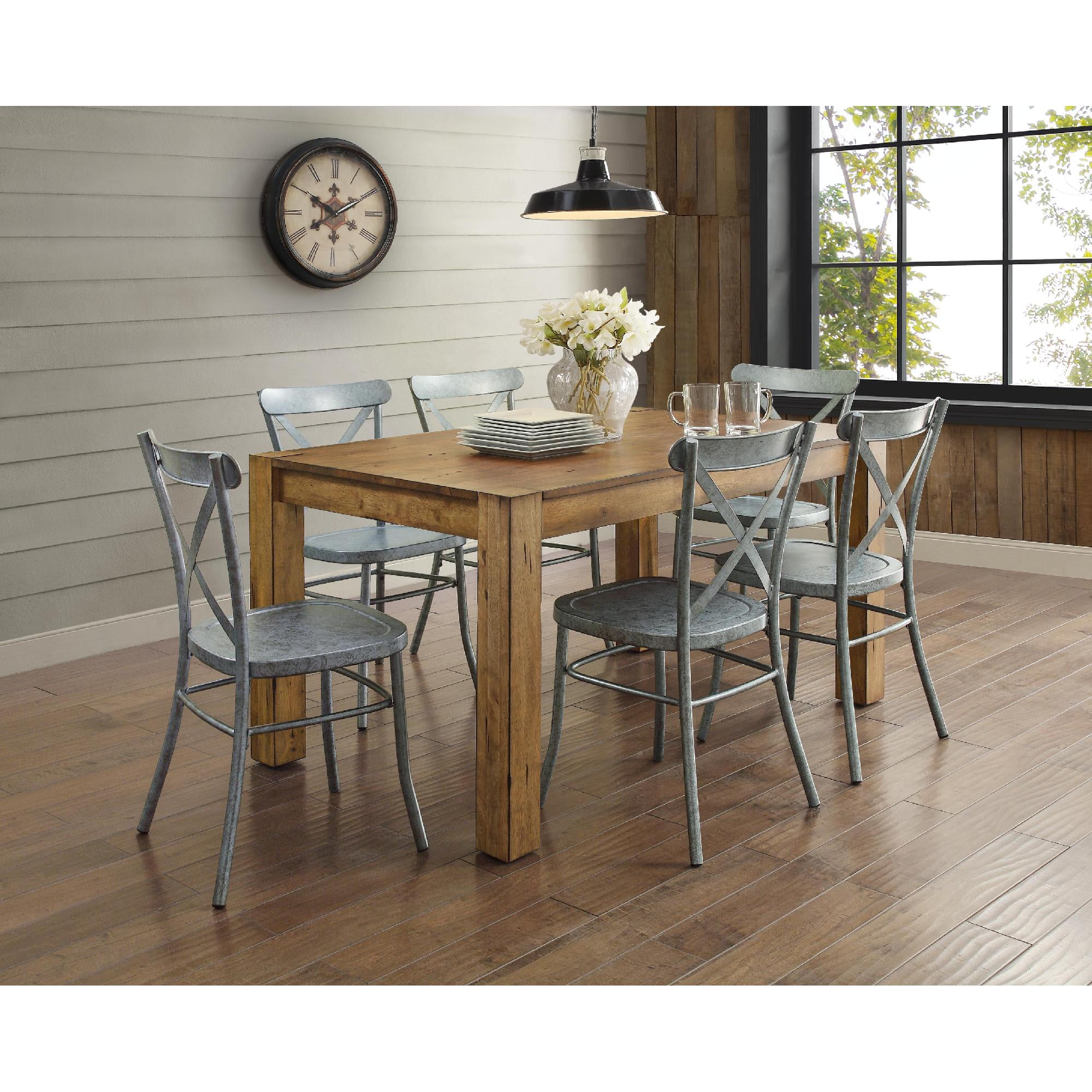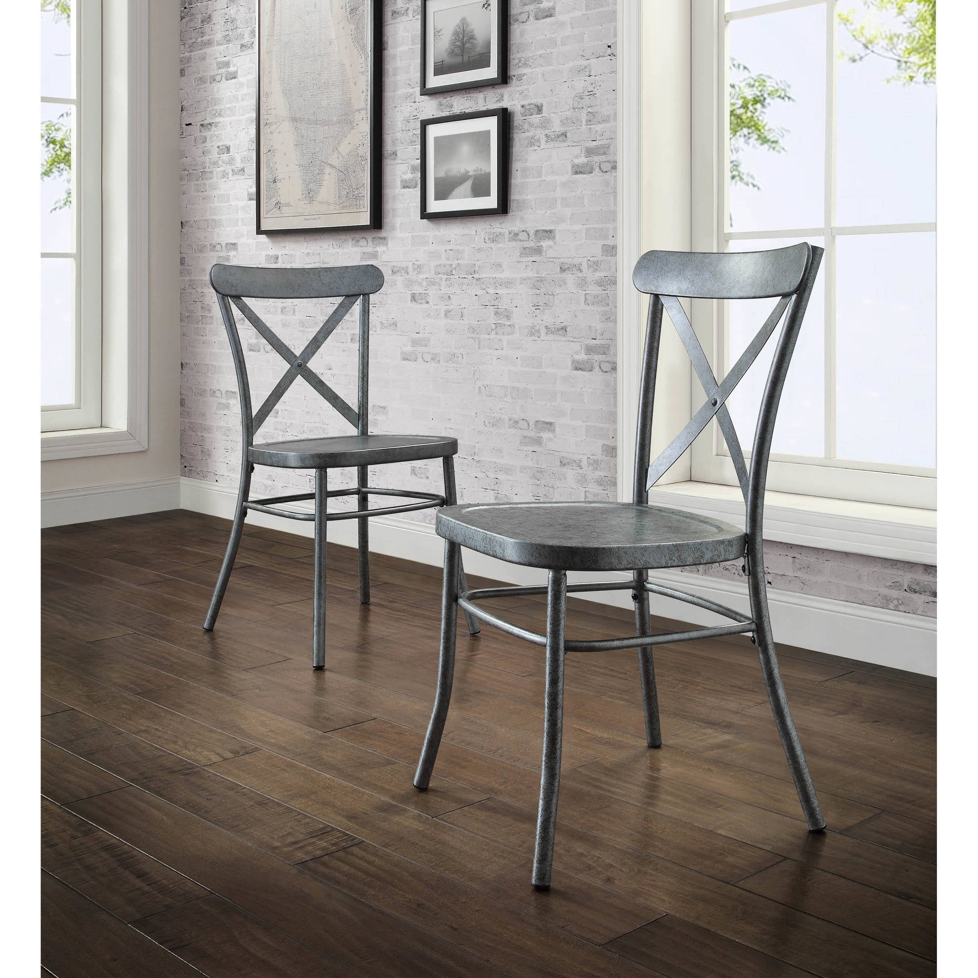 Better Homes and Gardens Collin Distressed Dining Chair, Set of 2, Silver Finish