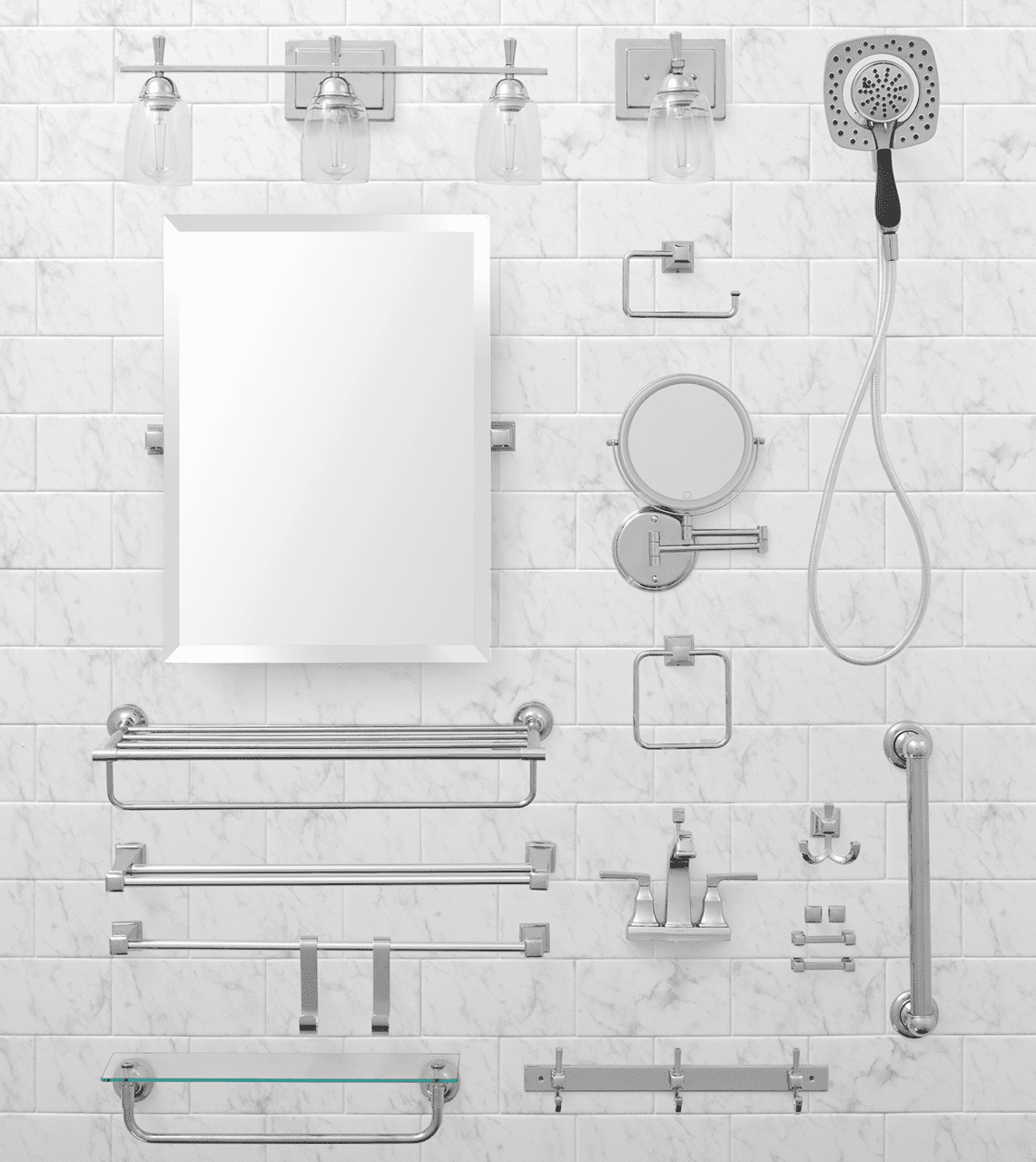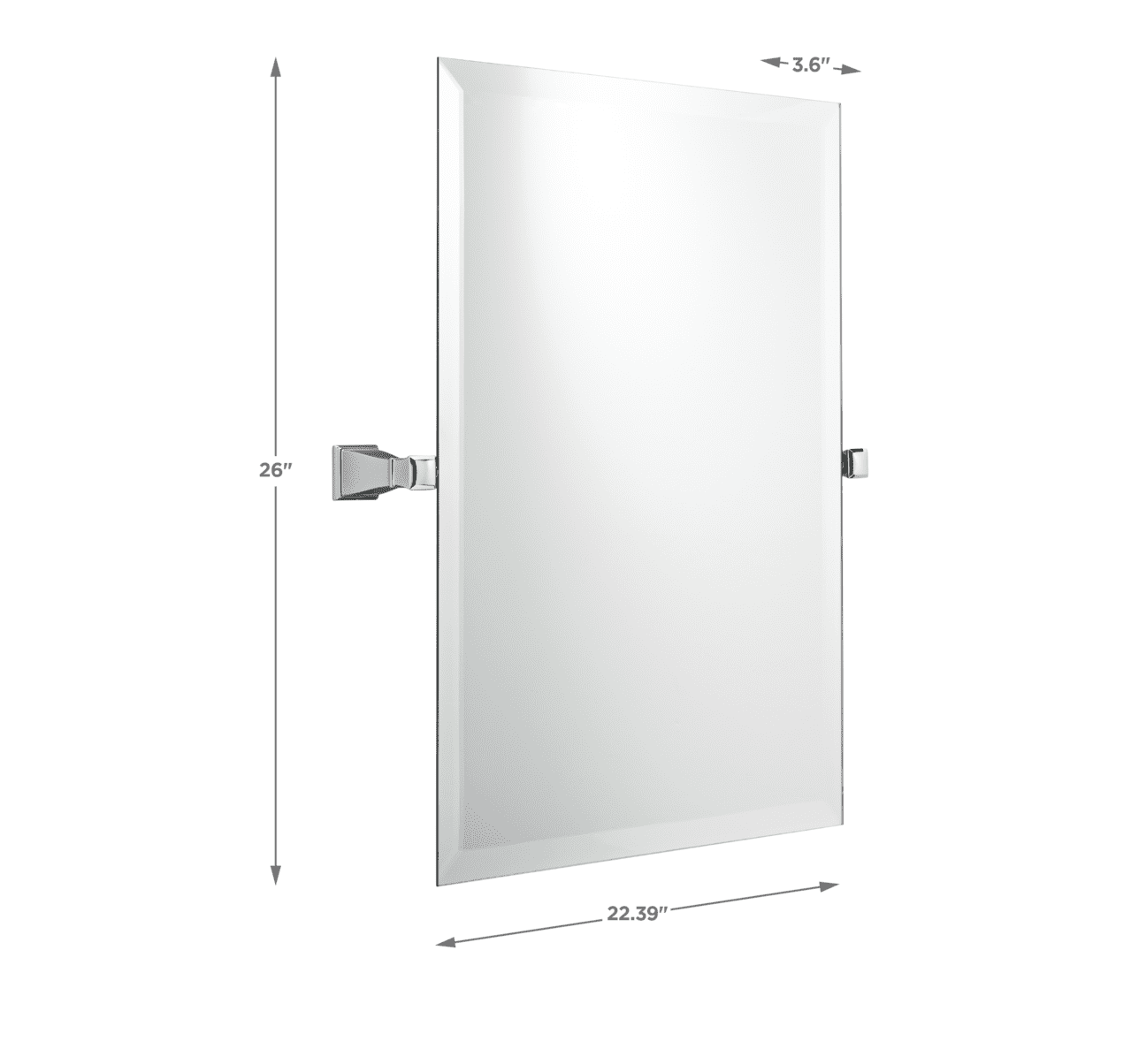 Features beveled edges and a tilt design for adjustability Long-lasting finish helps prevent corrosion, tarnish or discoloration Zinc die-cast construction provides exceptional reliability and durability Features durable mounting system for hassle-free installation Mounting hardware and hanging template included High quality, upscale square bathroom mirror design will give a beautiful update to any bathrooms