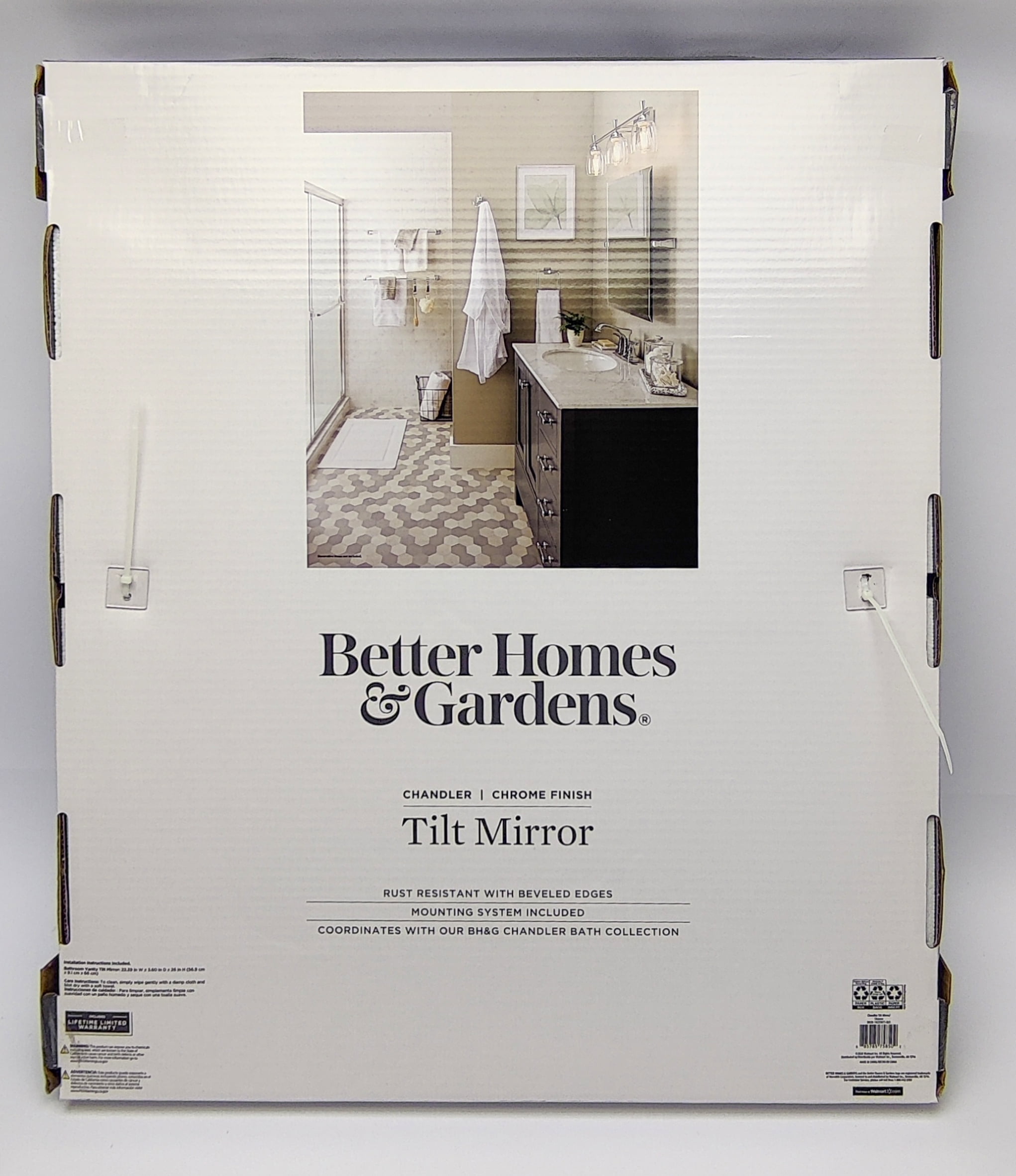 With a stylish and classic design, the Chandler Collection instantly upgrades any space. This tilt mirror is made of sturdy and durable materials so it can stand the test of time. Each package includes all items required to hang the unit on the wall. This tilt mirror easily coordinates with other items found in the Chandler Bath Accessories Collection. Complete your look today with the Chandler Collection by Better Homes & Gardens.