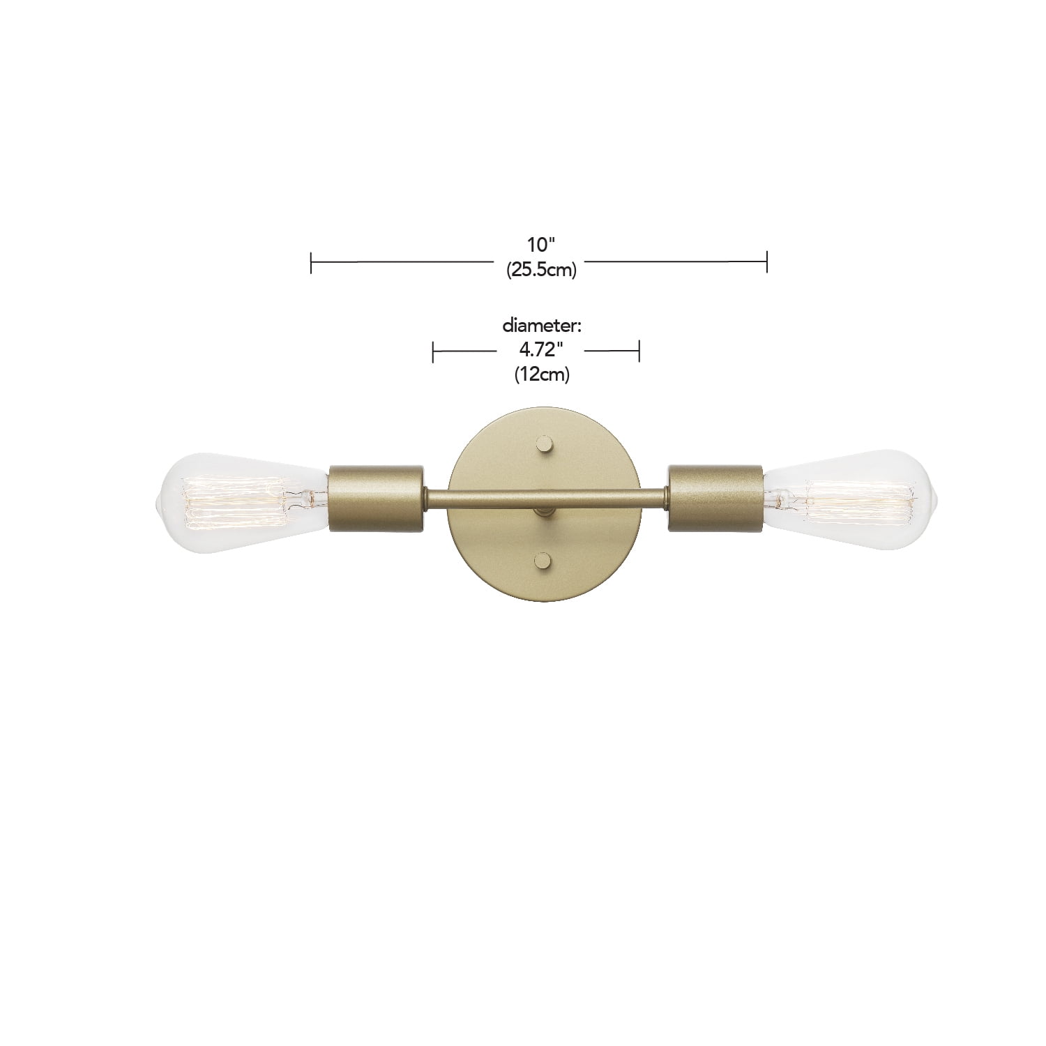 MINIMALIST DESIGN: the super trendy burnished brass finish of the Better Homes & Gardens 2-Light Vanity Light is paired with an open socket construction and clean silhouette to showcase the wonderful world of minimalist design VERSATILE PLACEMENT: with the ability to mount this fixture horizontally or vertically, this light is super versatile and can be used on top of a mirror, on either side of a mirror or even in a gorgeous modern kitchen – the choice is yours DIMMABLE: with compatible dimmer switch (sold separately)