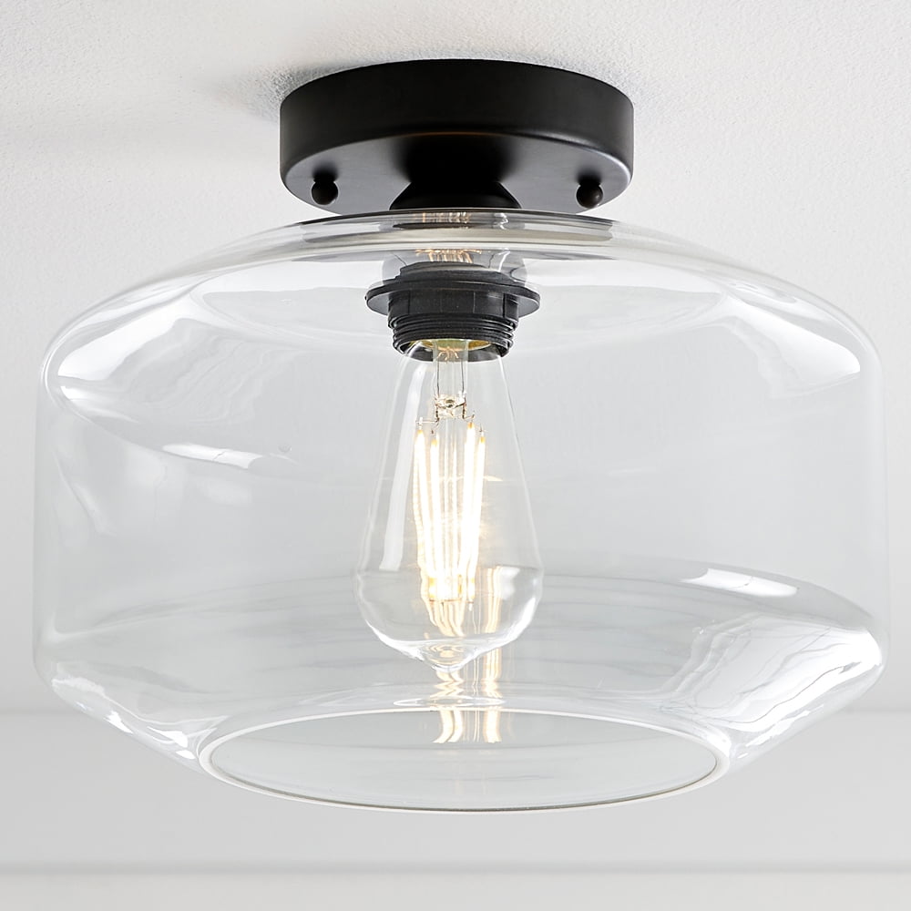 Better Homes & Gardens 12″ Architectural Semi Flush Ceiling Light, Black Finish Clear Glass Shade