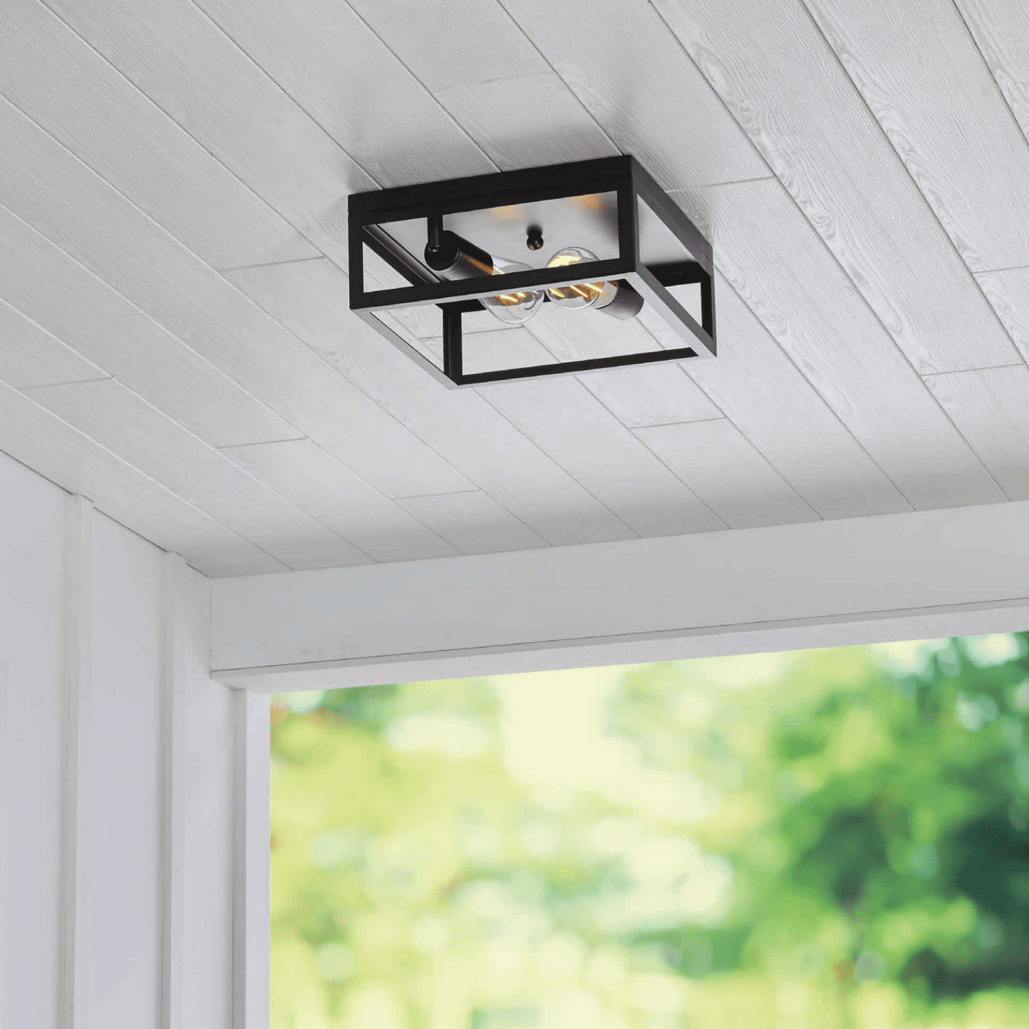 The Better Homes & Gardens Modern 2-Light Square Flush Mount Ceiling Light Black Finish fixture is well-designed for your home decoration. The ceiling light has a whole metal housing. It is most suitable to be installed in rooms with low ceilings. It should be the most suitable to be installed in places like the hallway, living room, and kitchen. This fixture is equipped with a dimmable 40W equivalence ST19 filament bulb. This decorative bulb is rated to last 13 years based on 3 hours per day use. This light bulb uses only 5 watts of energy to produce light, which is equal to light from a 40W incandescent that is a 90% savings over traditional lighting and that means savings on your energy bill every month and with the energy certification to prove it credibility.(BHS336179061023)