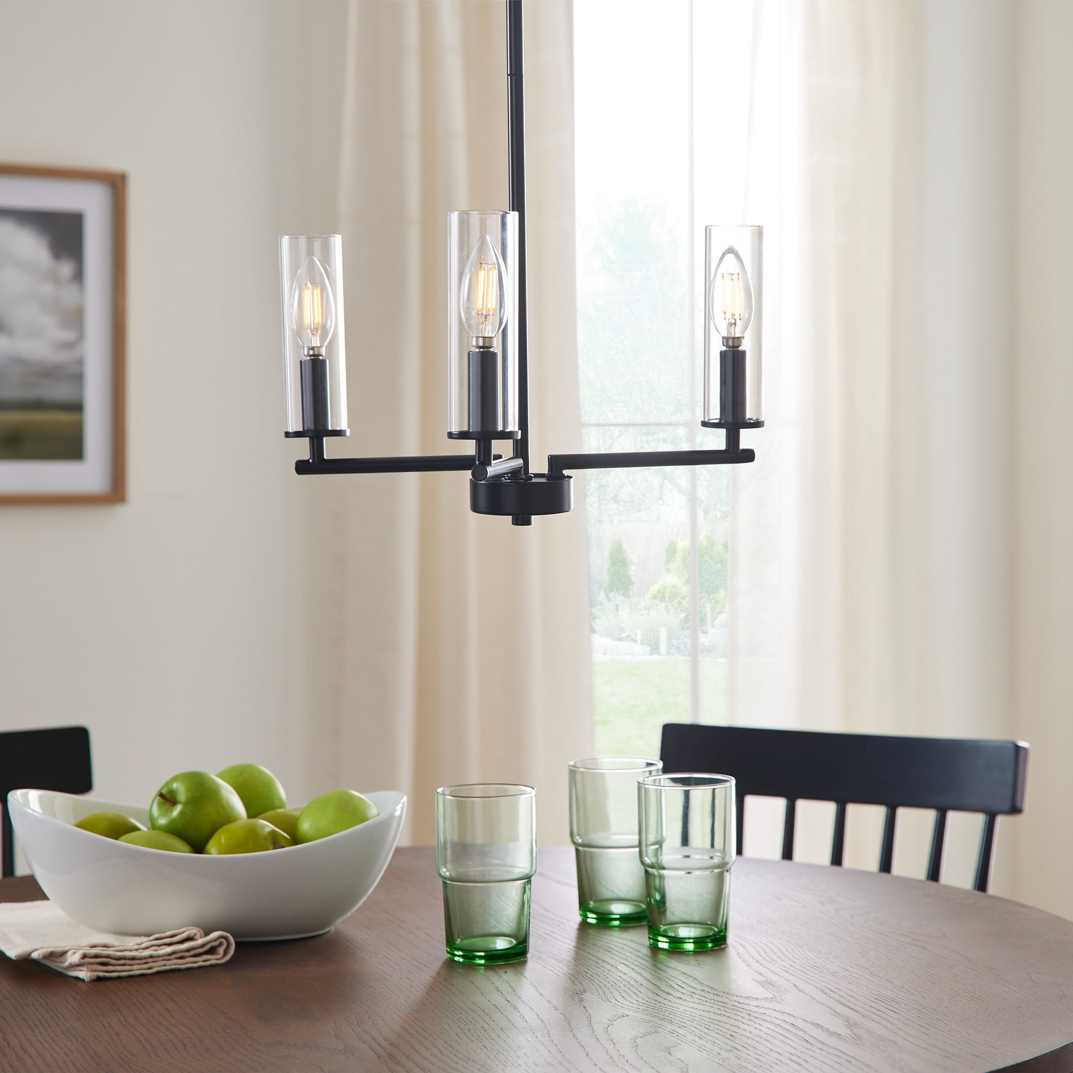 Better Homes & Gardens 16 in Matte Black 3 Light Chandelier with Clear Glass – Contemporary Style