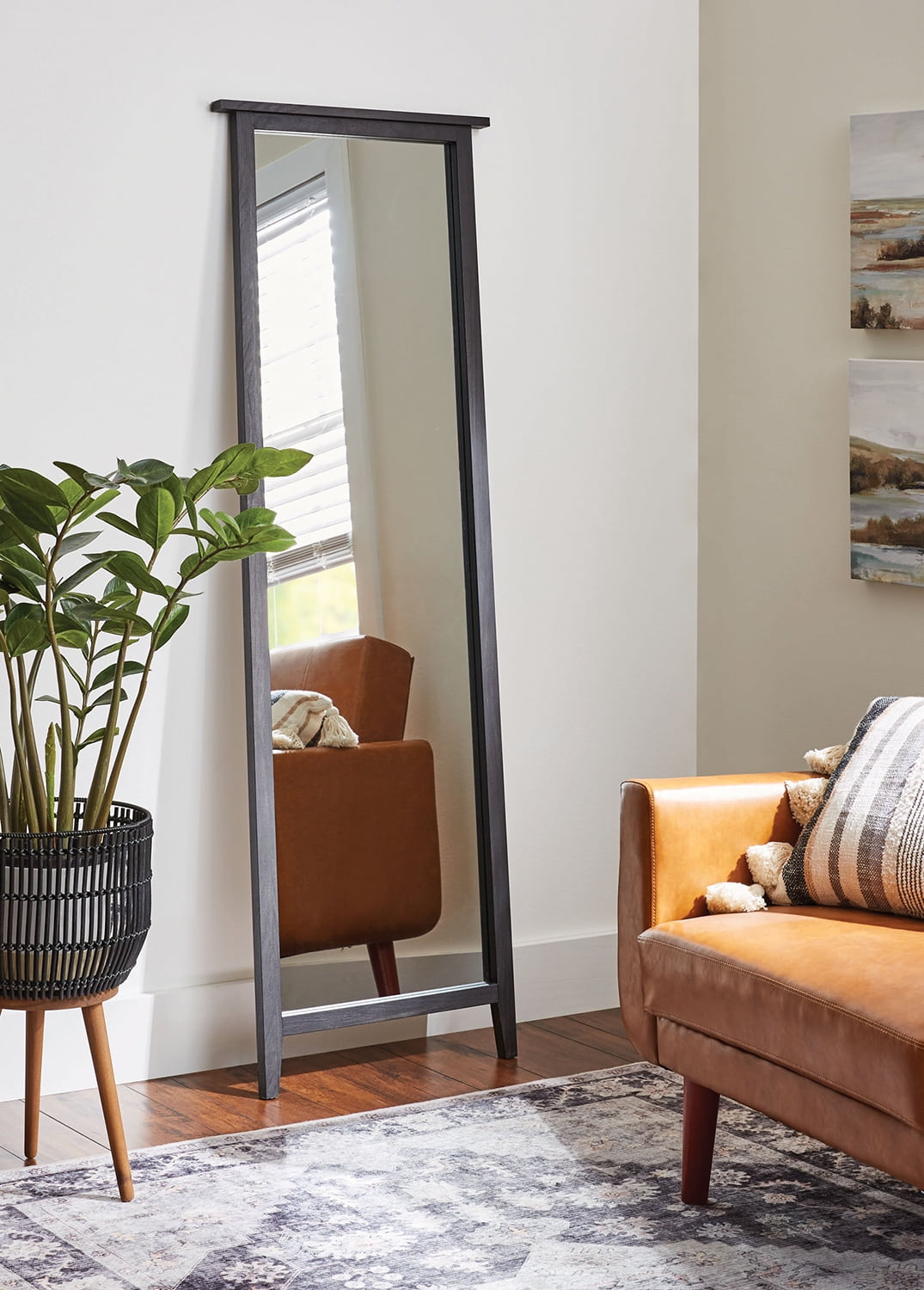 The Better Homes & Gardens Black Finish Footed Floor Mirror is a stylish and functional piece of home decor that will elevate the look of any room. This mirror features a sleek black finish and is designed to stand on the floor with two sturdy feet, making it perfect for placement in a bedroom, dressing room, or hallway. With a generous size of 24×68 inches, this mirror provides ample space to check your full outfit and ensure you’re looking your best before you head out the door. Its elegant design also makes it a statement piece that can enhance the aesthetic of any space, whether you have modern or traditional decor. Crafted with high-quality materials, this floor mirror is built to last and withstand daily use. It’s easy to clean and maintain, and its timeless design means it will never go out of style. Overall, the Better Homes & Gardens Black Finish Footed Floor Mirror is a must-have item for anyone looking to add both style and functionality to their home decor.