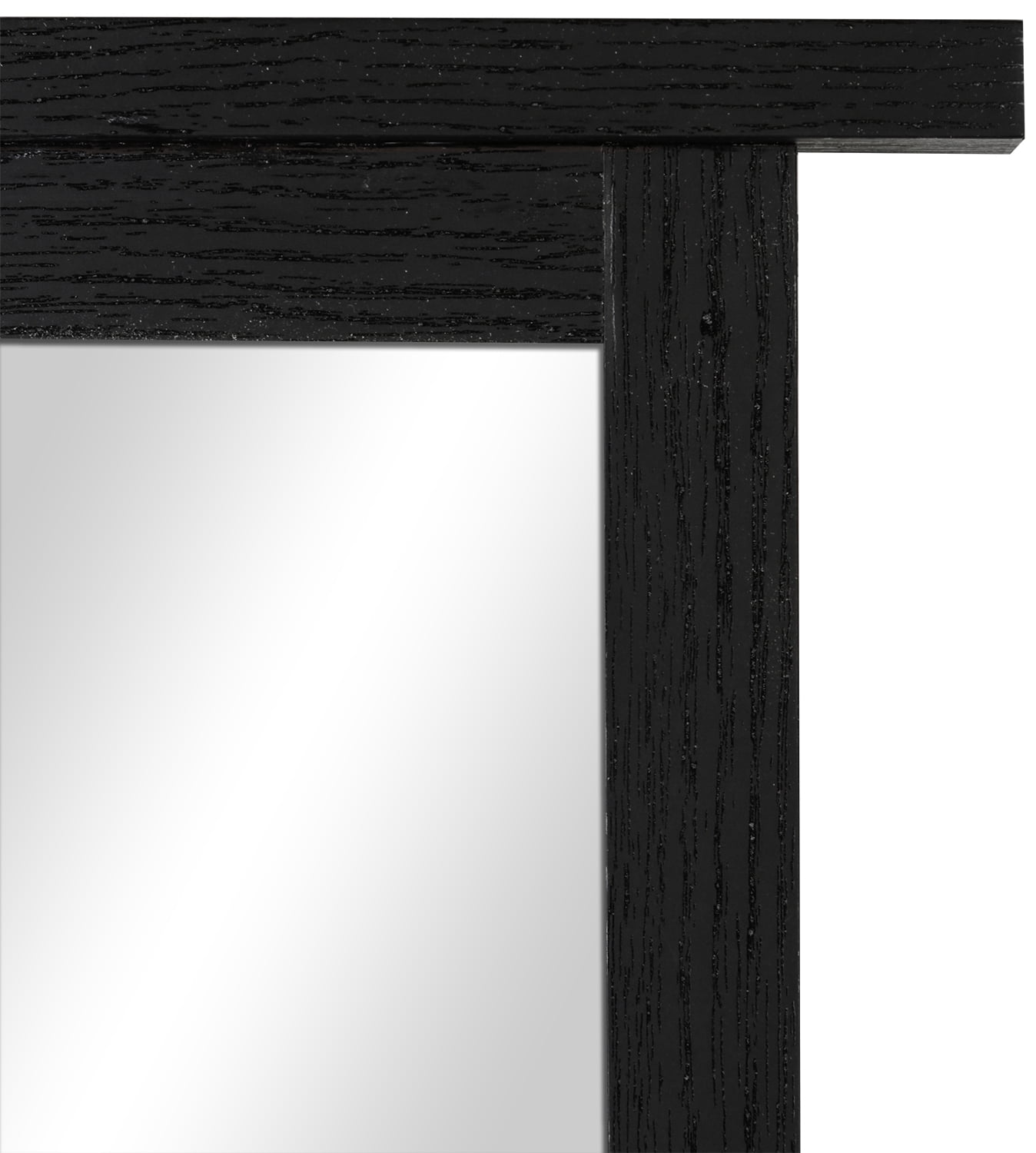 Hangs vertically with attached D-Rings Sturdy construction with woodgrain modern design and black finish Leans securely against the wall with included anti-tip/anti-slip hardware kit