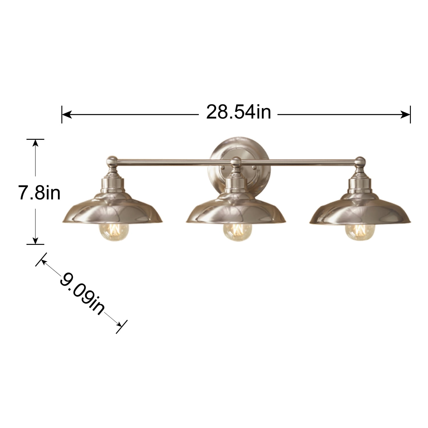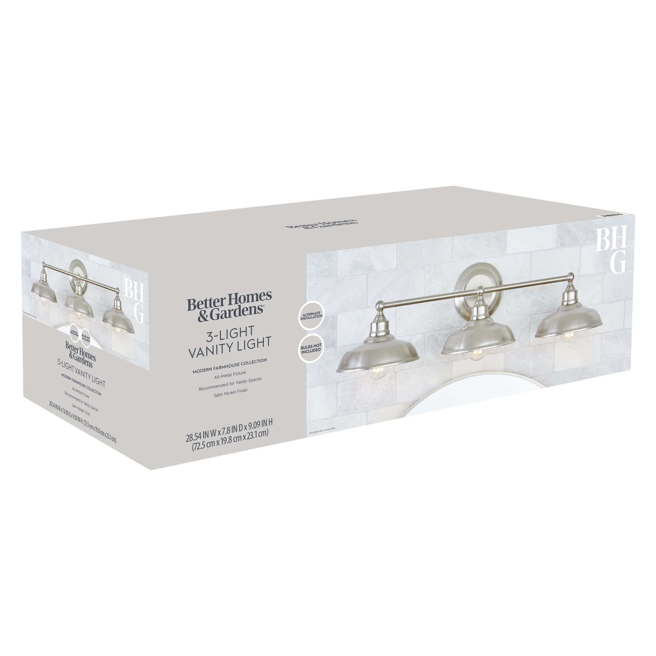 Better Homes & Gardens 28.5″ Farmhouse-Style 3-Head Vanity Light , Satin Nickel Finish, E26 Socketed