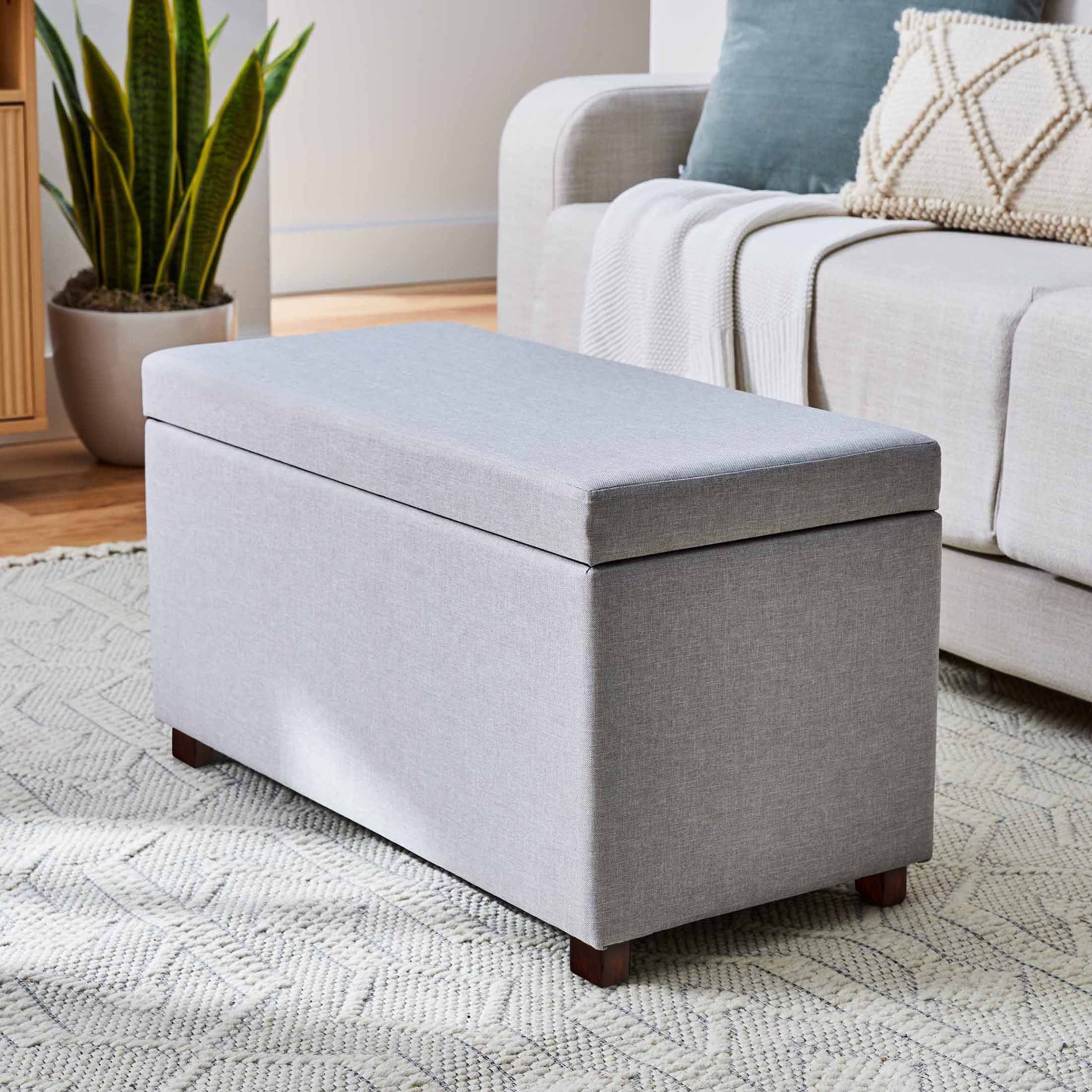 Better Homes & Gardens 30 inch in Length Storage Ottoman with Padded Top Gray Faux Linen
