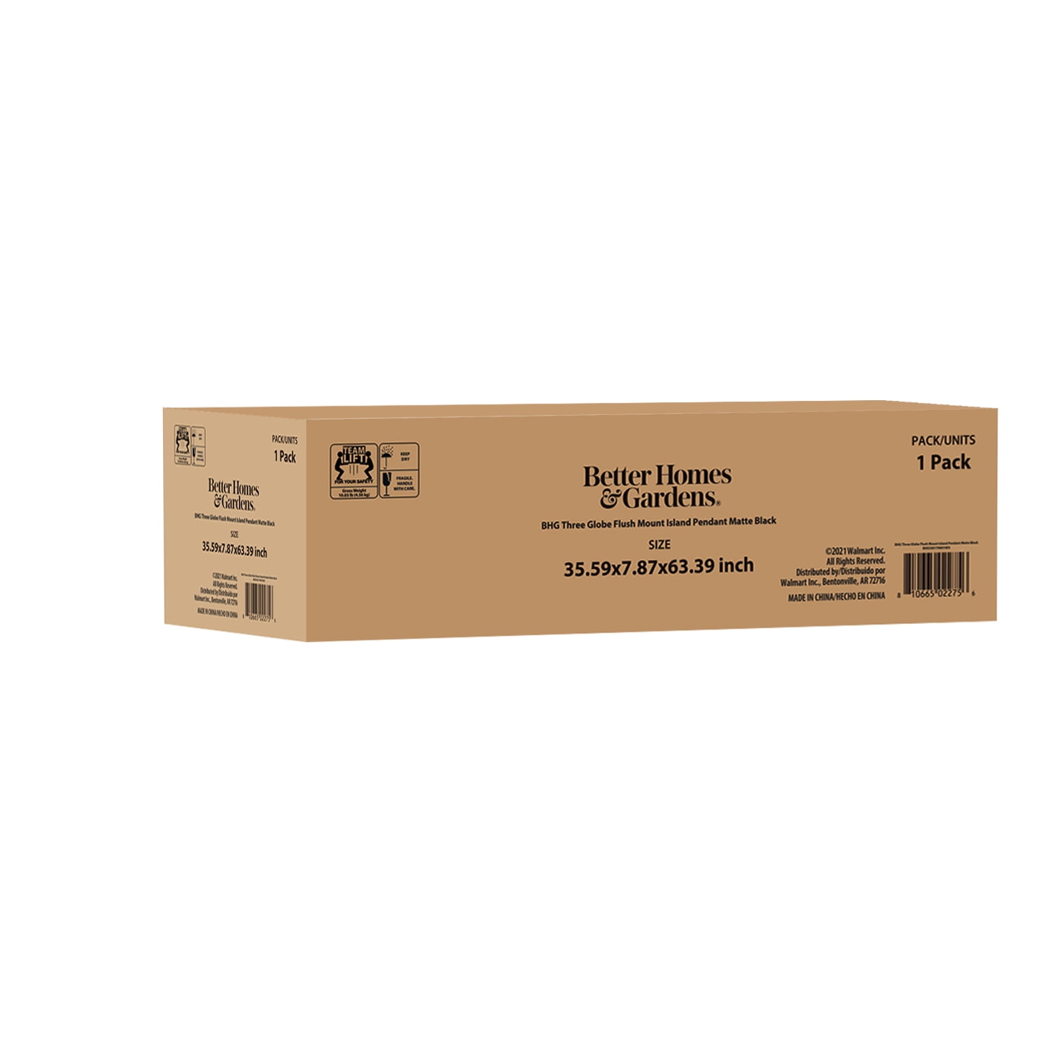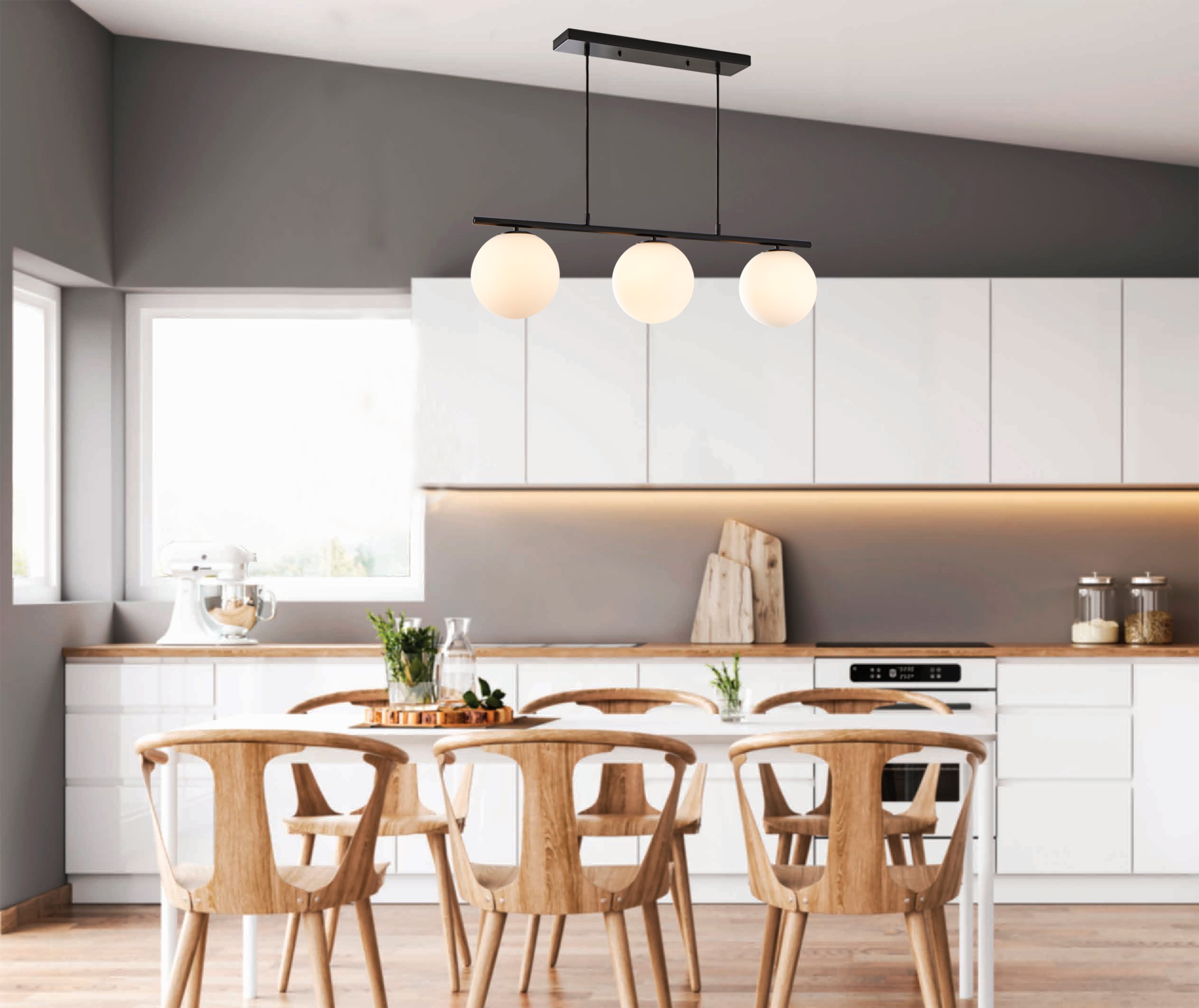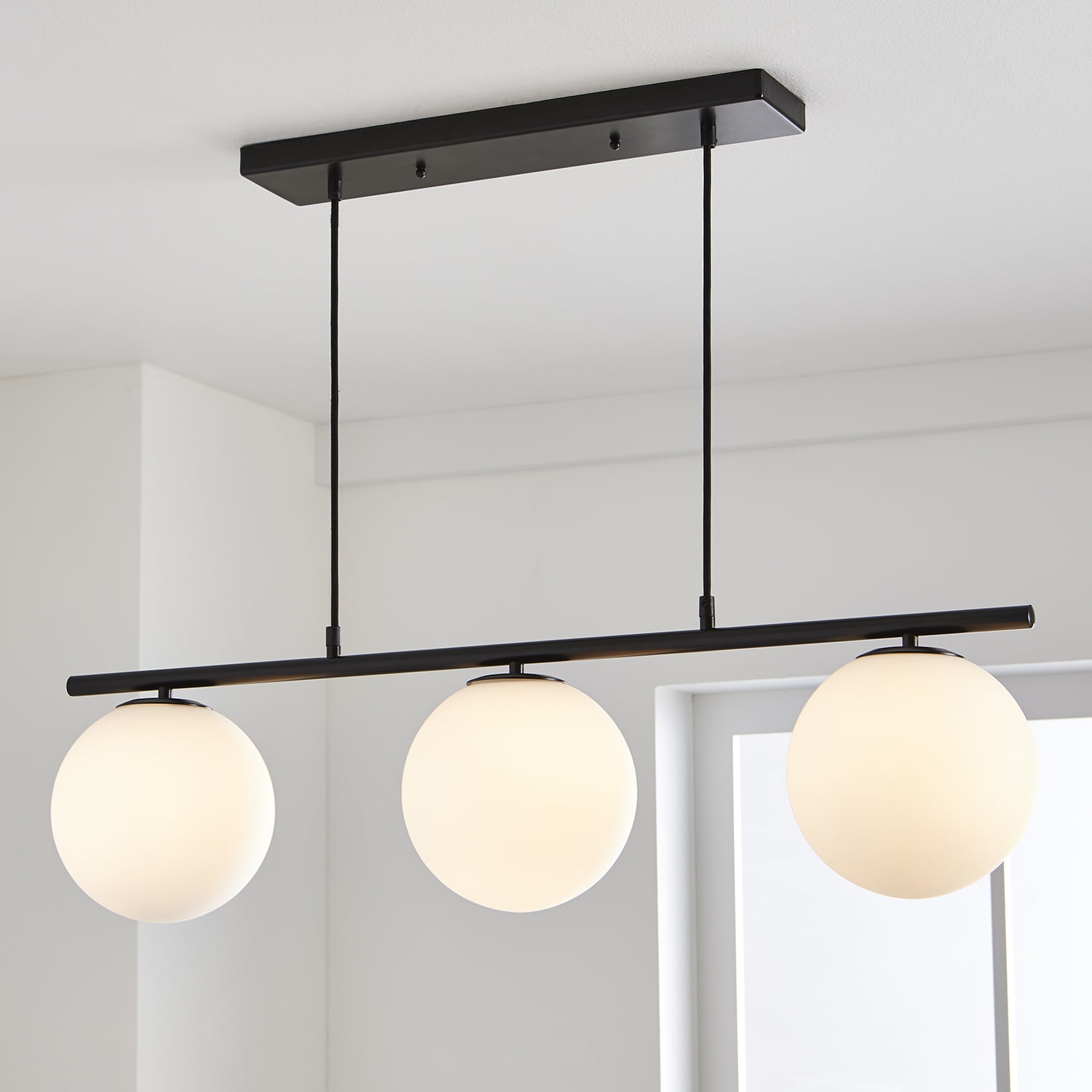 Better Homes & Gardens 36″ Architectural 3-Light Island Pendant Light, Black Finish Frosted Glass Shades