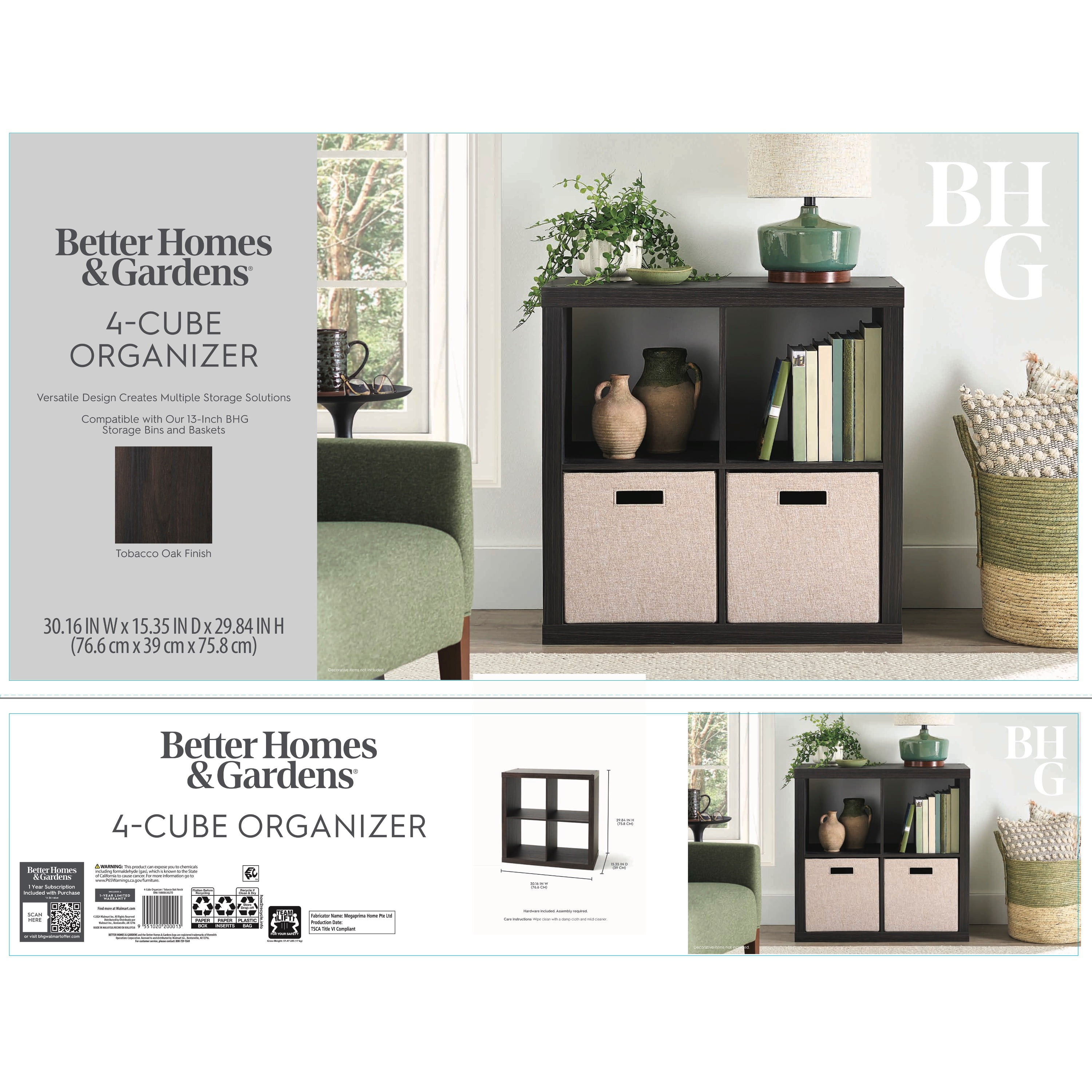 Better Homes & Gardens 4 Cube Storage Organizer, Tobacco Oak