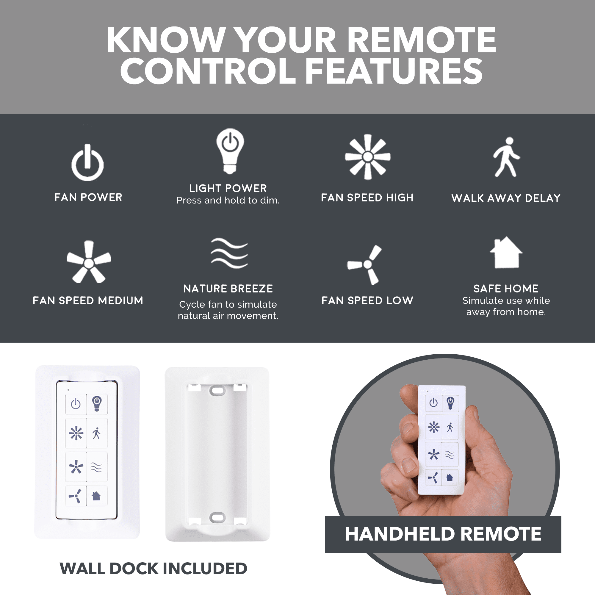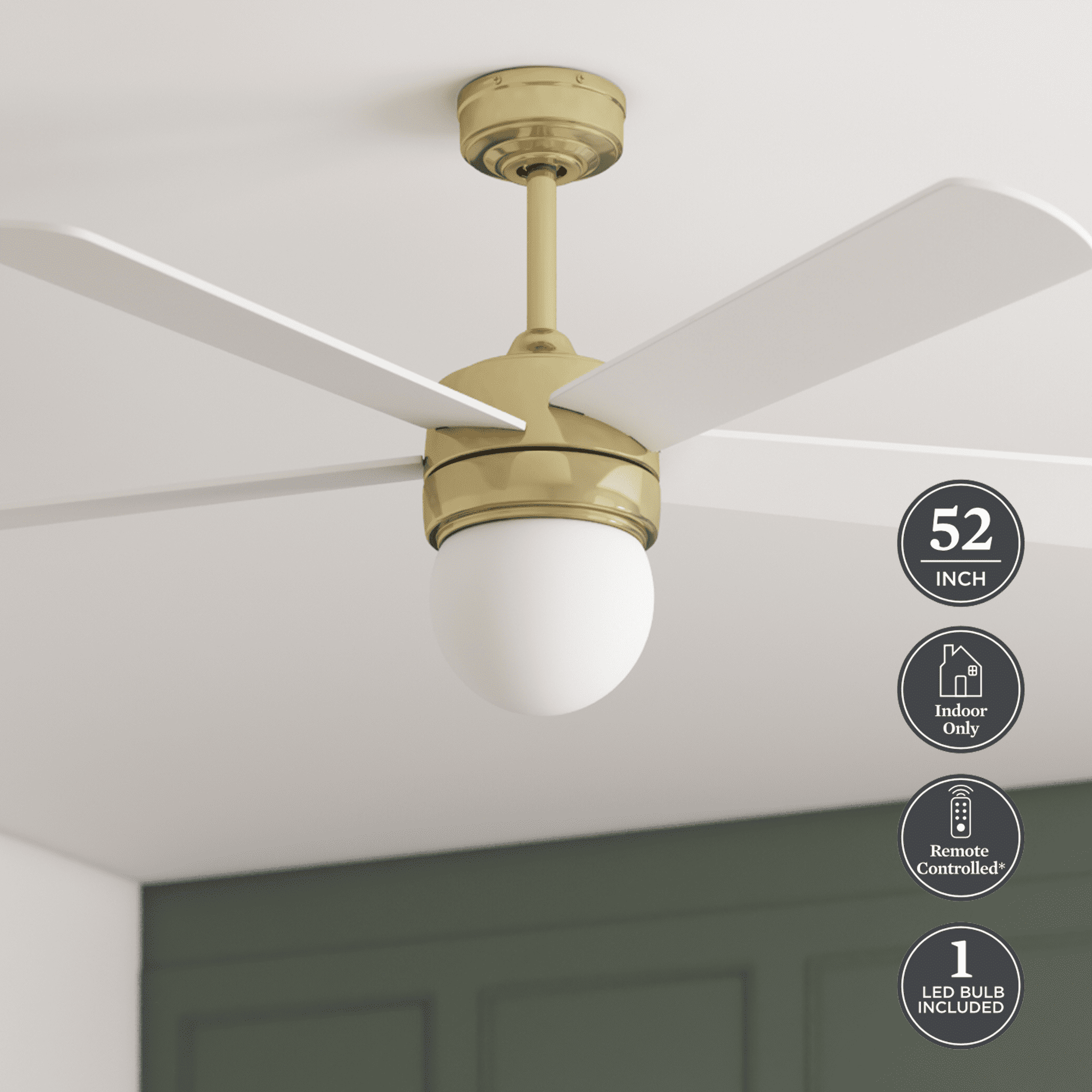 Keep Cool With The Correct Ceiling Fan Size: For ultimate performance, choose the best ceiling fan size for your room; This 52 inch ceiling fan is ideal for medium to large rooms up to 400 sq. ft. such as bedrooms, dens, dining rooms, and more Reversible Fan For All Seasons: Improves air circulation in winter and summer; During summer, this ceiling fan optimizes airflow to enhance comfort; During winter, change the direction to evenly distribute warm air on low speed Dual-Mount: 2 hanging options- from standard ceilings using the 4-in downrod (included) or from angled/vaulted ceilings with a longer downrod (sold separately) Ceiling Fan With Light: Frosted glass shade houses A19, E26 LED bulb (included) that’s energy-efficient and longer lasting; Dimmable from 20% to 100% Reversible Blades: Choose between white and hickory for the finish that best fits your space Indoor Ceiling Fan: Perfect for your living room, bedroom or home office Remote Control Included: Adjust fan speed and light (batteries included); comes with wall mount for easy access Crafted With High-Quality Material: The high-capacity motor delivers powerful airflow and quiet performance for years to come; This durable and modern ceiling fan is designed for long lasting comfort; ETL listed