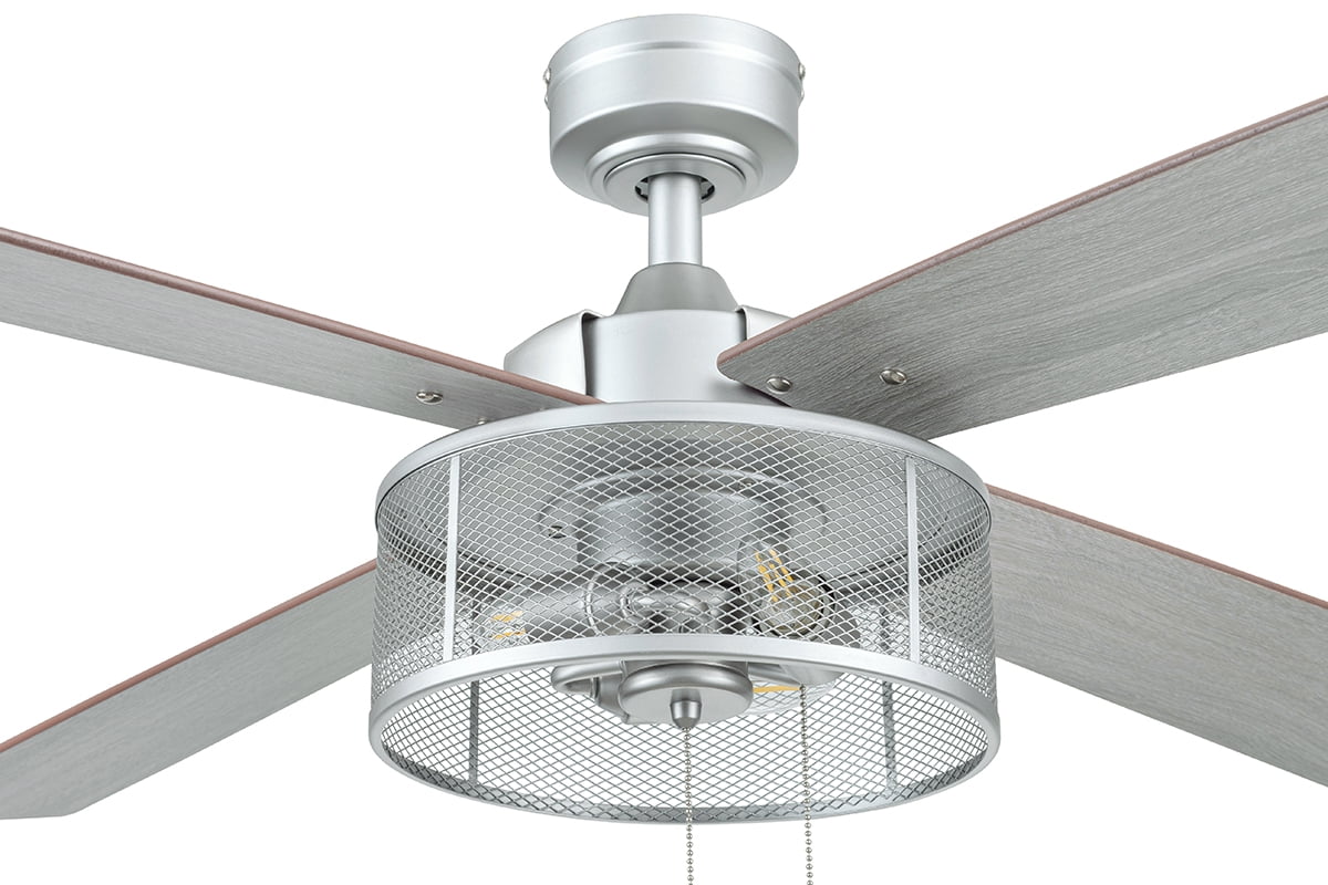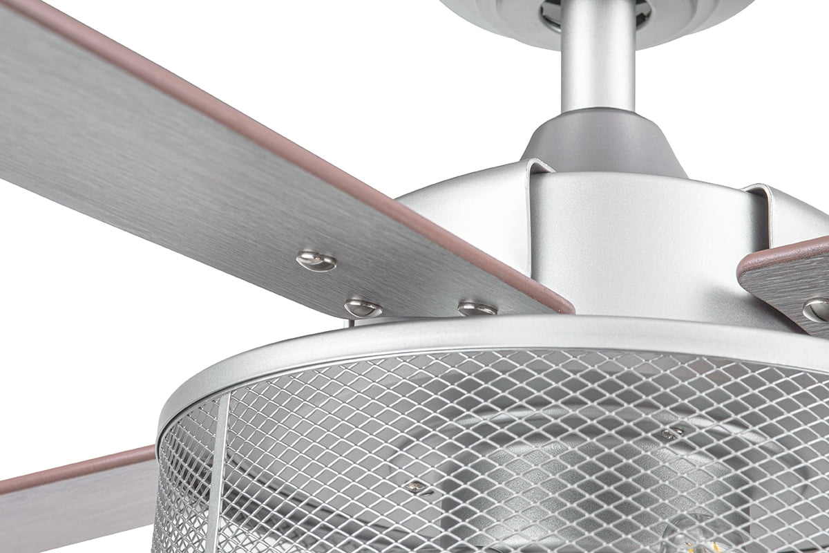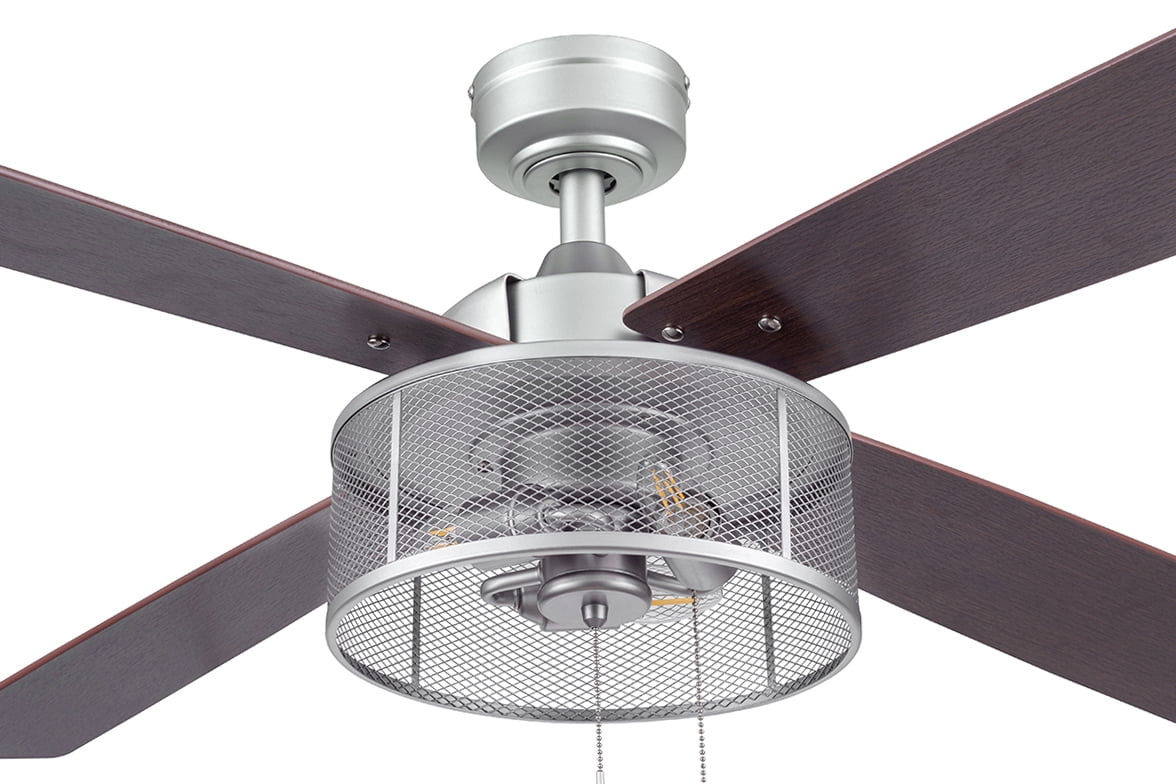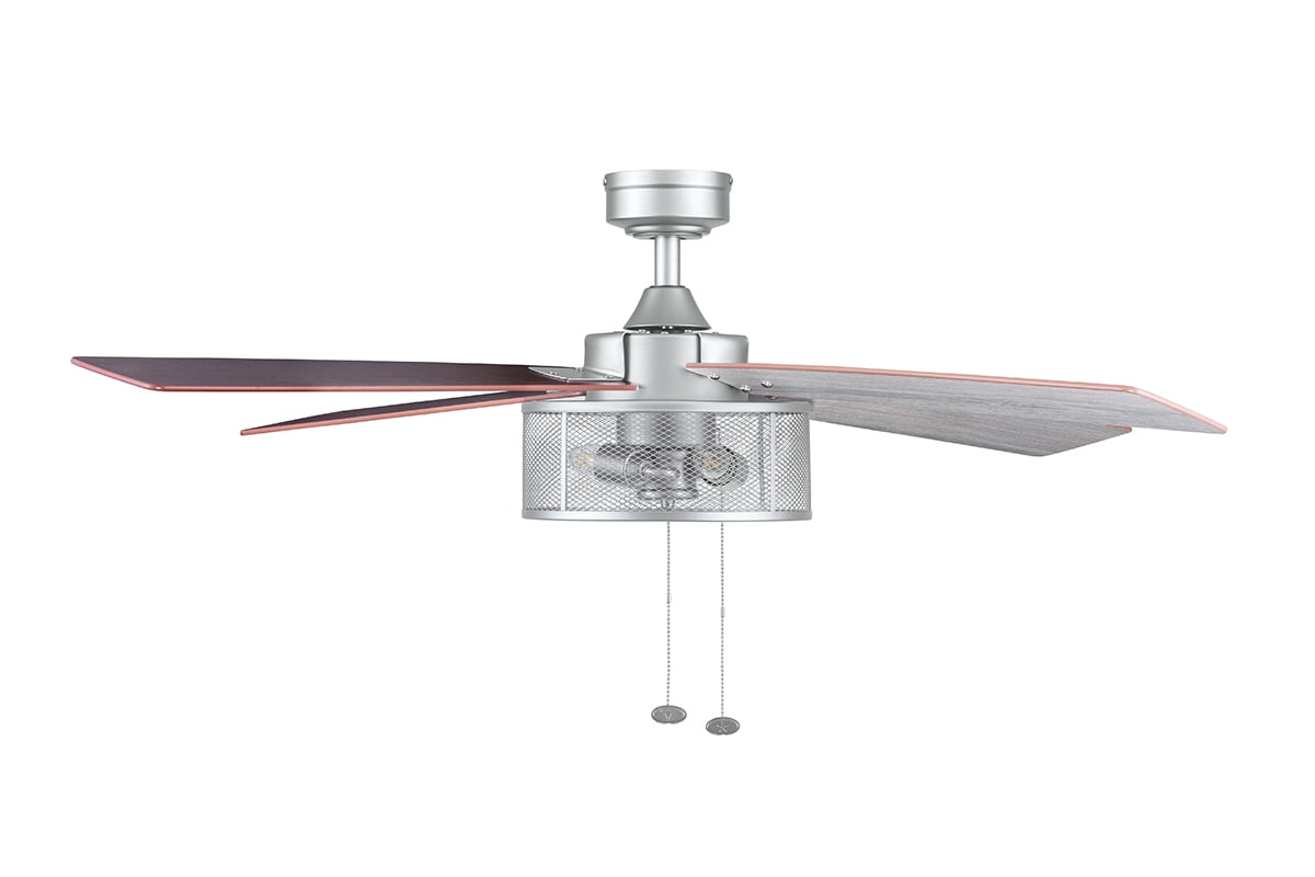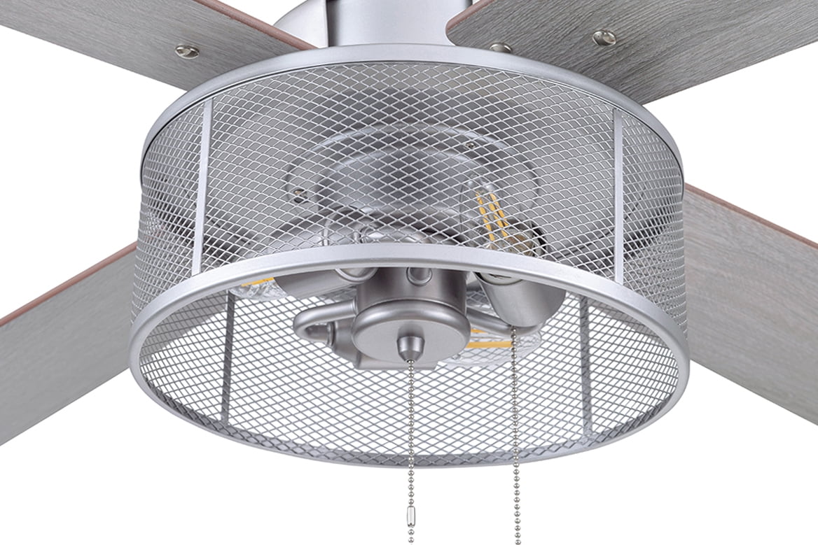 The Better Homes & Gardens 52″ 4 Blade Cage Ceiling Fan in Pewter is the perfect addition to your space, serving up both adequate air flow and a rustic, industrial edge. With three pull-chain adjustable speed settings, this fan is sure to deliver a high quality, quiet performance while saving energy both in the summer and winter months. It is very easy to install and can be conveniently mounted from both standard and angled ceilings. It includes three E26, B11 Edison style LED bulbs, sure to timelessly enhance your space. Each of the four blades is reversible, offering a choice between trendy Gray Oak and classic Light Oak, both equally complementing the Pewter housing finish. This fan’s size makes it a perfect match for any large to medium size living space- living rooms, bedrooms, entertainment rooms, etc.