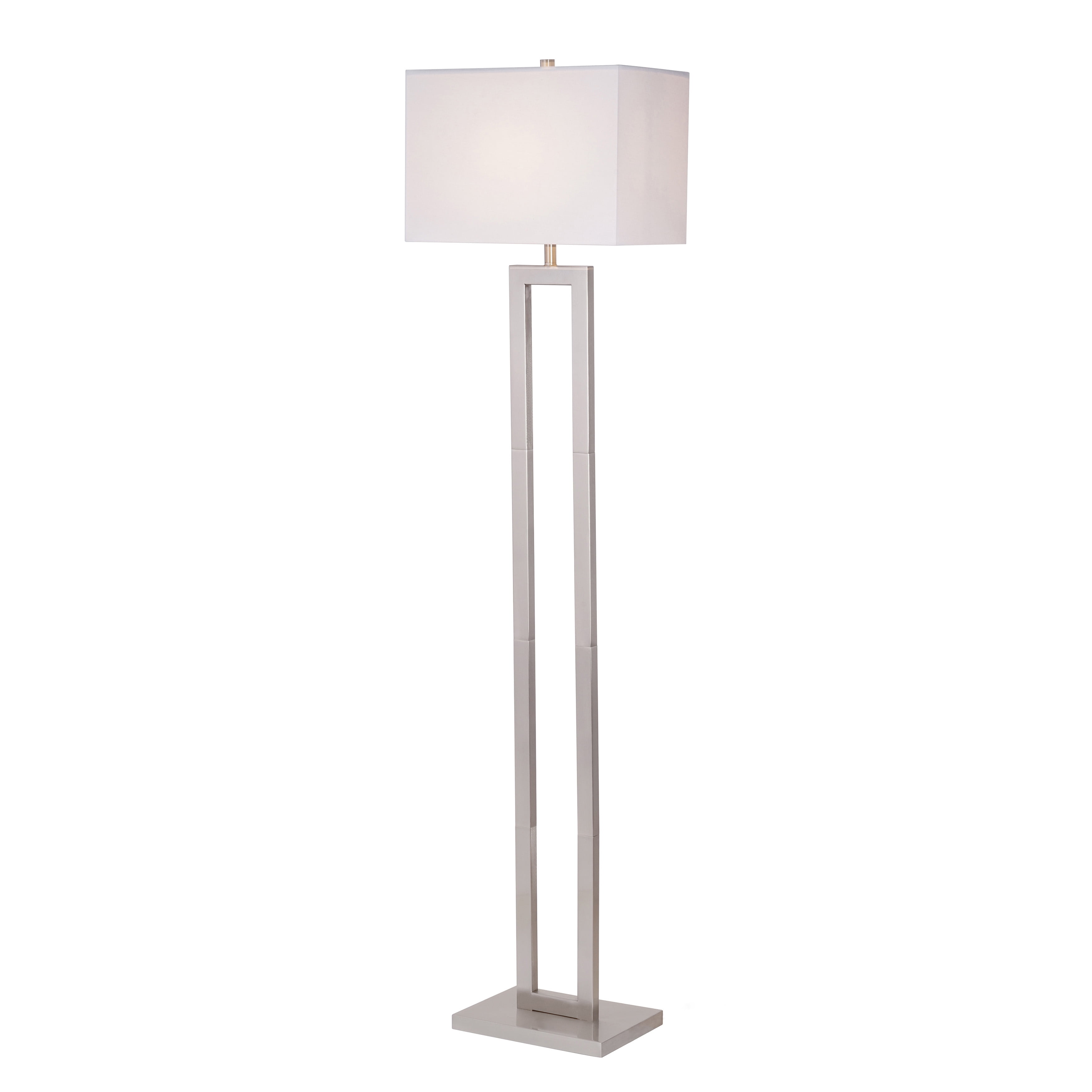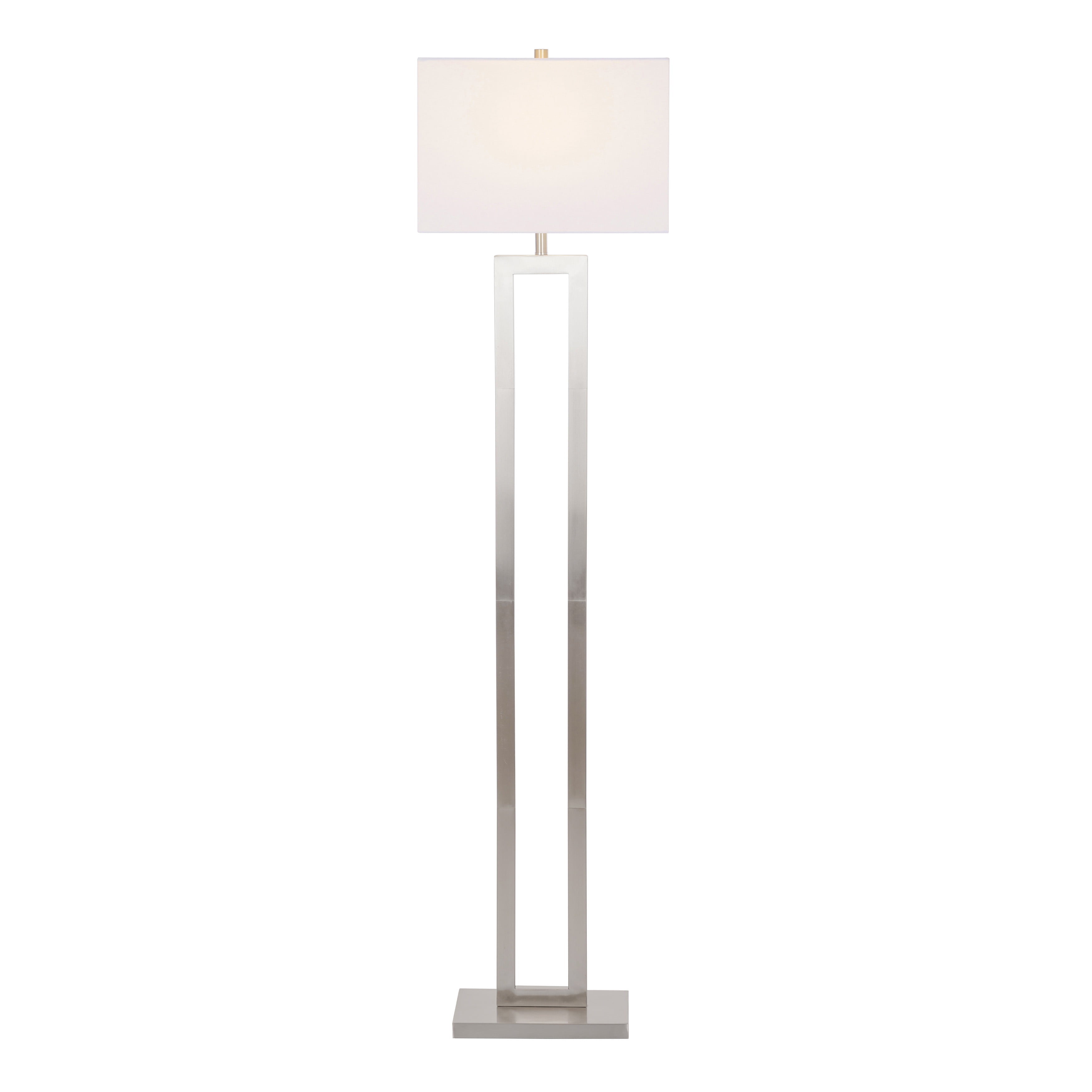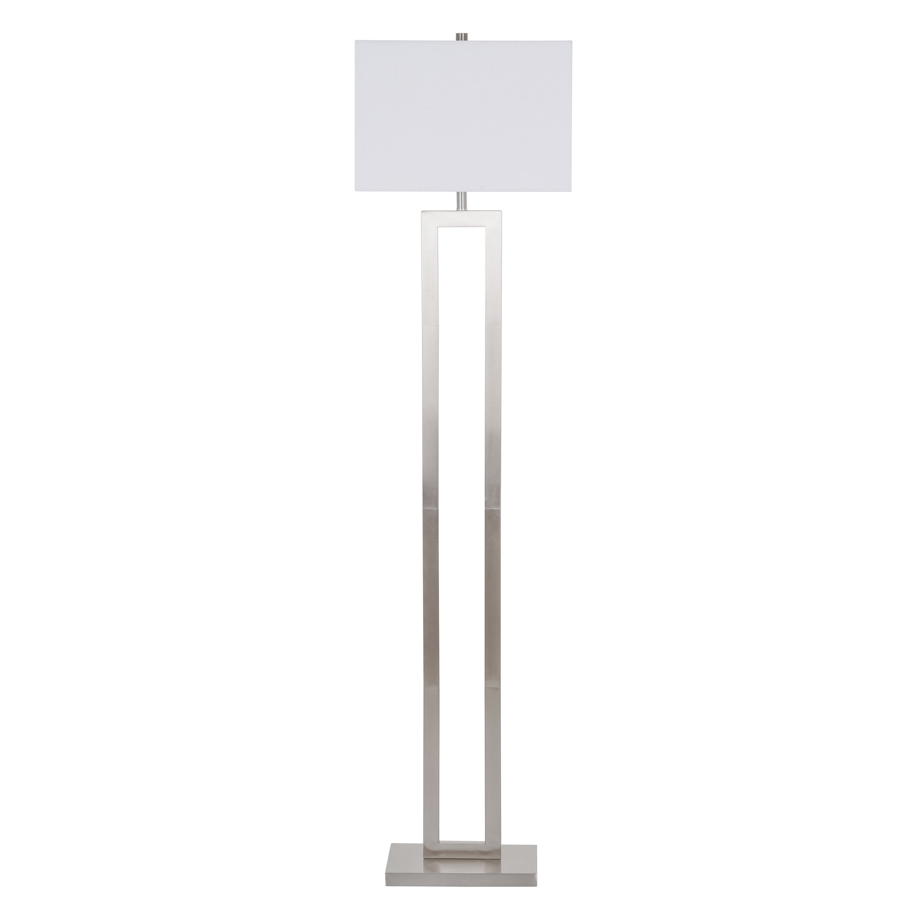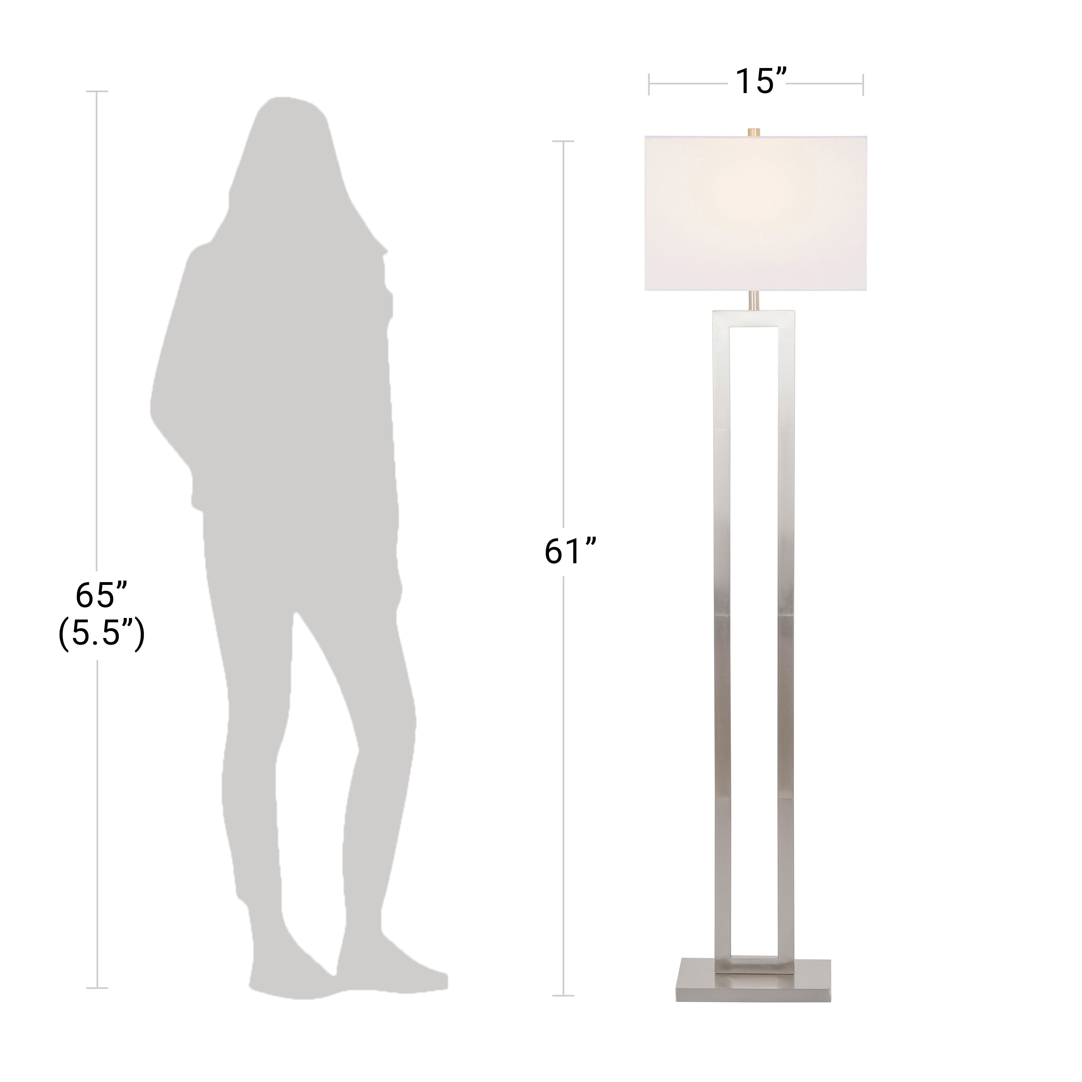 Better Homes & Gardens 61″H Metal Windowpane Floor Lamp, Silver Brushed Nickel Finish: 61″ tall floor lamp Timeless silver brushed nickel finish Real wood base Elegant, versatile windowpane design Sleek rectangular fabric shade Uses one (1) 150-watt incandescent bulb or LED equivalent (not included) 1-year limited warranty included Intended for indoor use only Wipe clean with a damp cloth