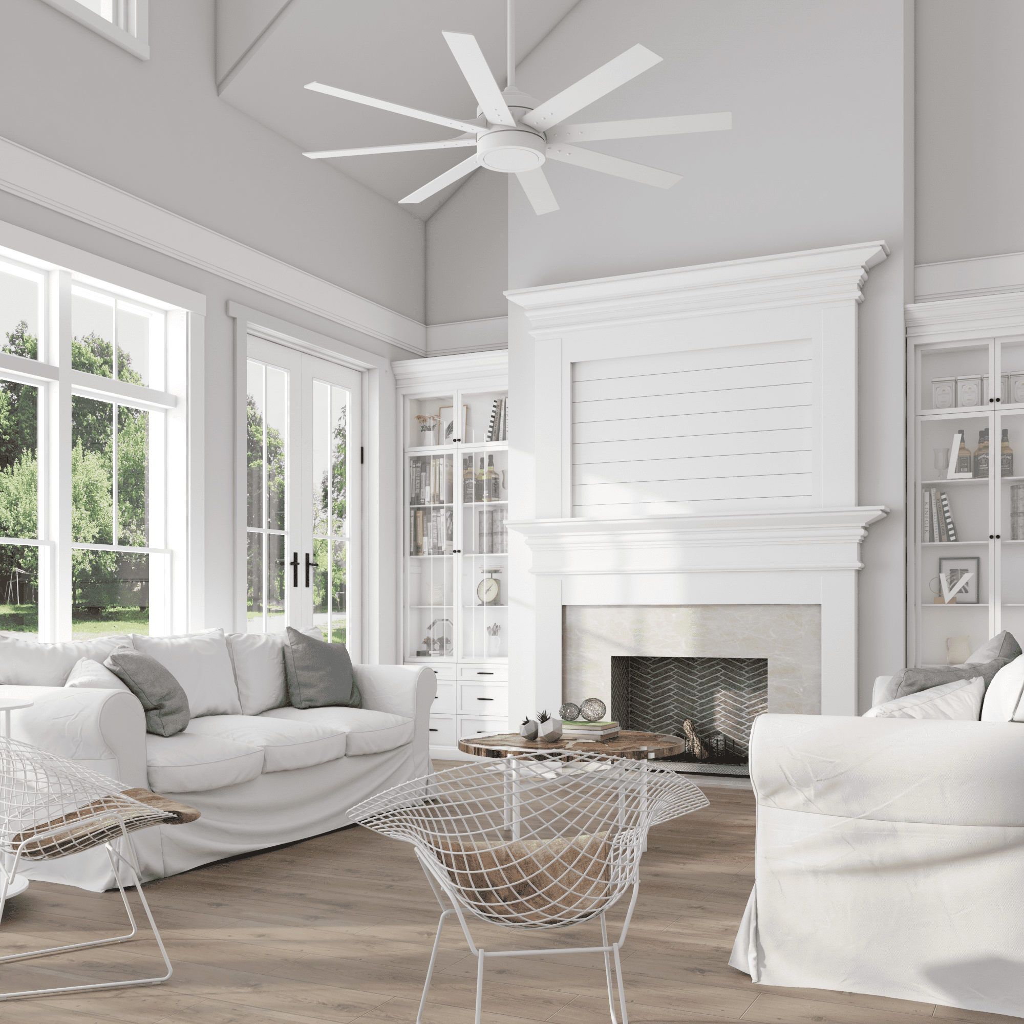 Better Homes & Gardens 62″ Dual Blades Motor Finish Integrated Light Kit Ceiling Fan with Remote Control This 62 inch indoor ceiling fan is ideal for larger indoor areas over 400 sq. Ft. Such living rooms and great rooms Standard option includes a 4 inch downrod; Angled mount option allows for hanging on vaulted ceilings with a longer downrod (sold separately) Control the 3 speed settings and light output and additional customizable settings (Walk Away Light Delay, SmartSync & Nature Breeze) with handheld remote with wall cradle Integrated LED light kit features 5 color temperatures: Cool Daylight (6500K), Daylight (5000K), Cool White(4000K), Warm White (3000K) or Soft White (2700K) Choose between White and Barley; Pick the finish that best fits your space