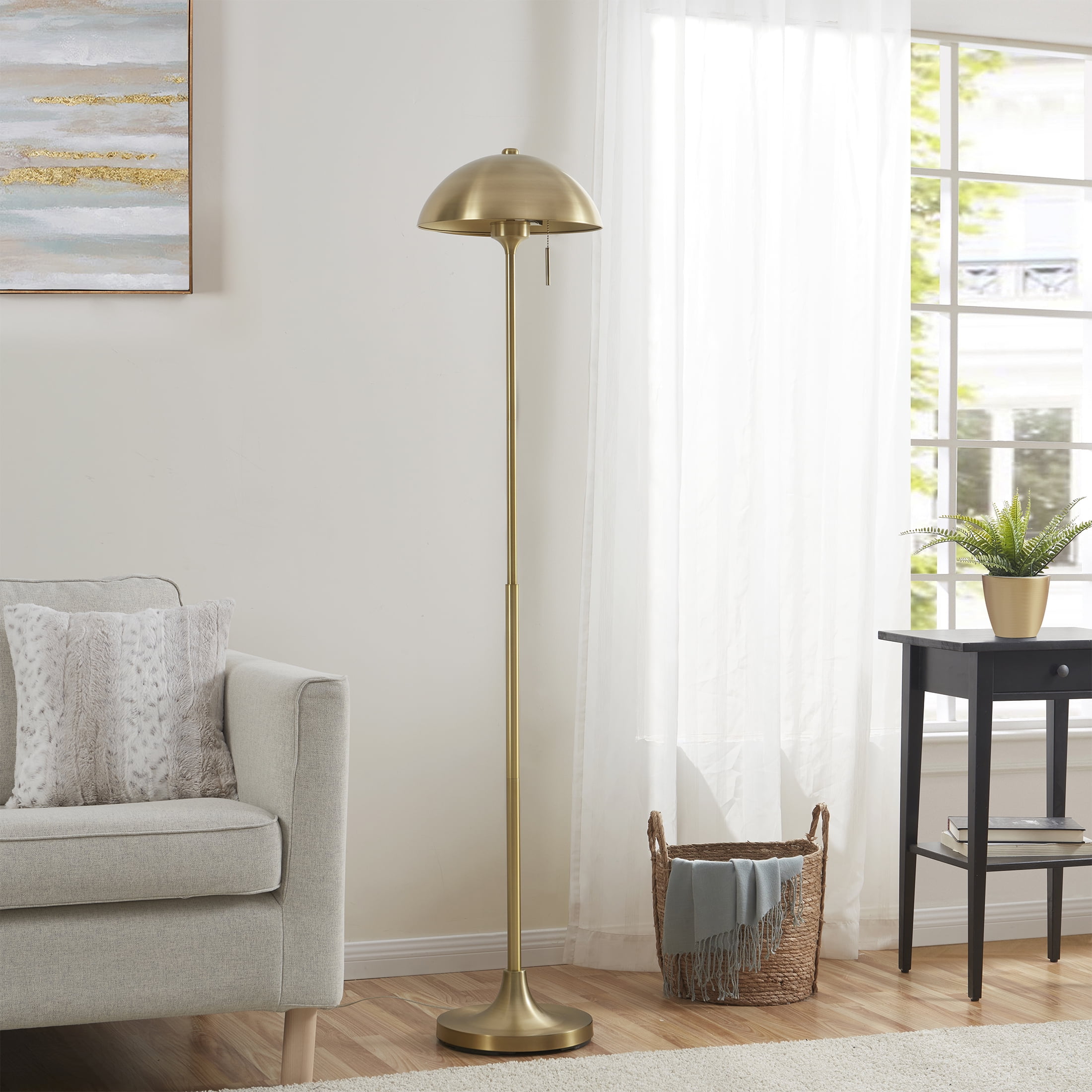 Better Homes & Gardens 62″ Modern Pull-chain Brass Floor Lamp with Brass Dome Shade