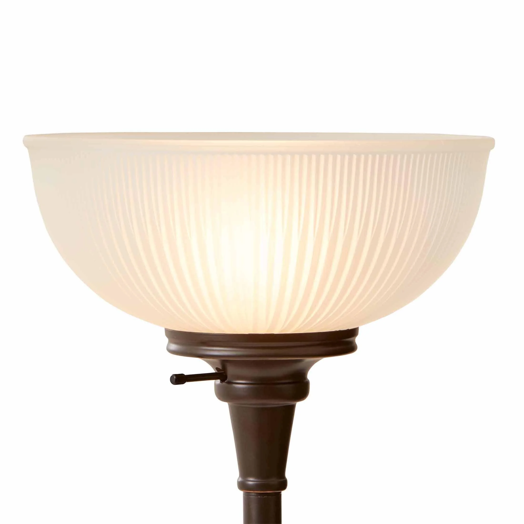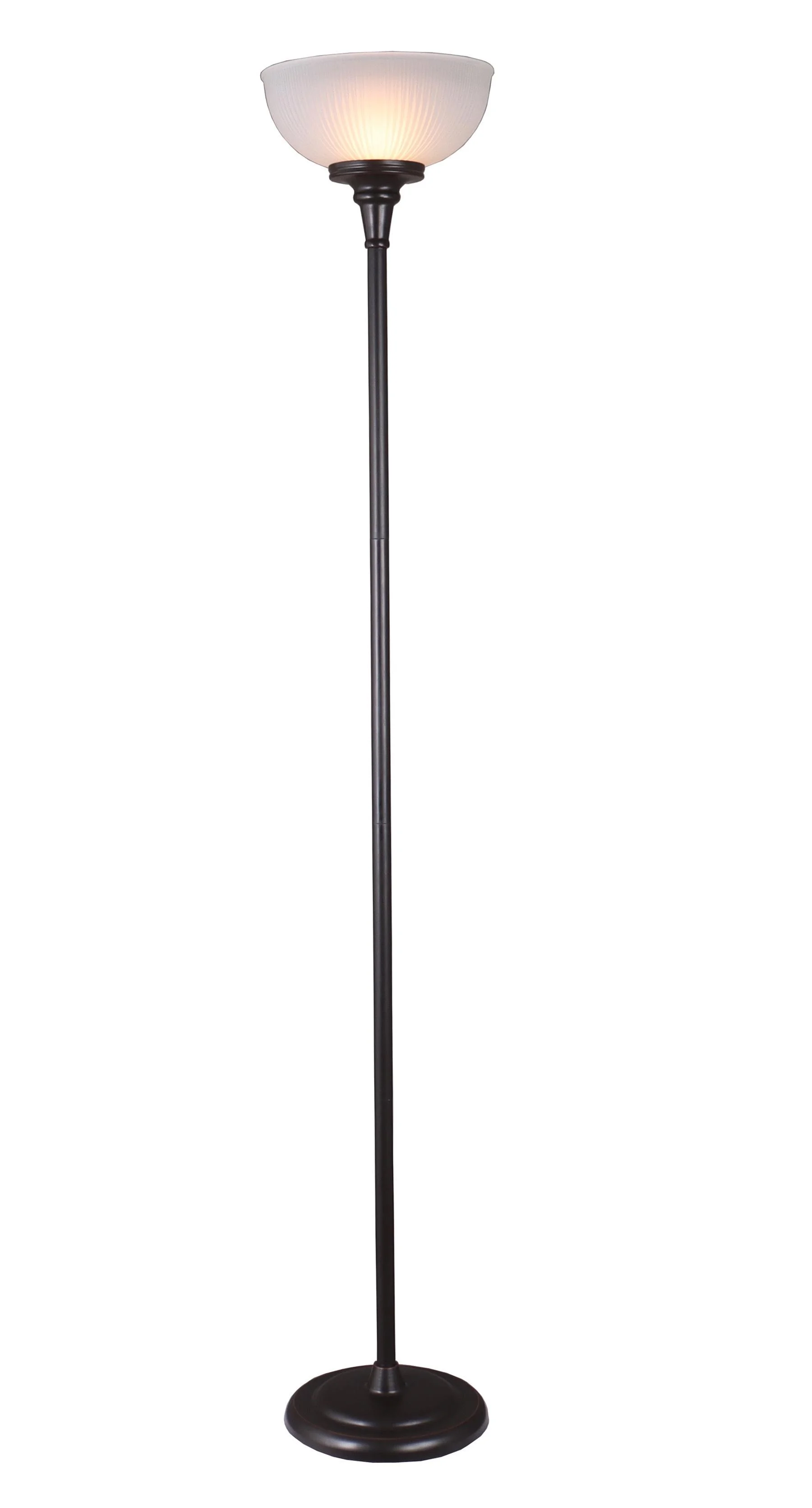 Overall height 71″, frosted ribbed glass shade 12″ diameter Oil rubbed bronze base finish, sturdy metal base Adult use ,Model: BH6526057317084 New