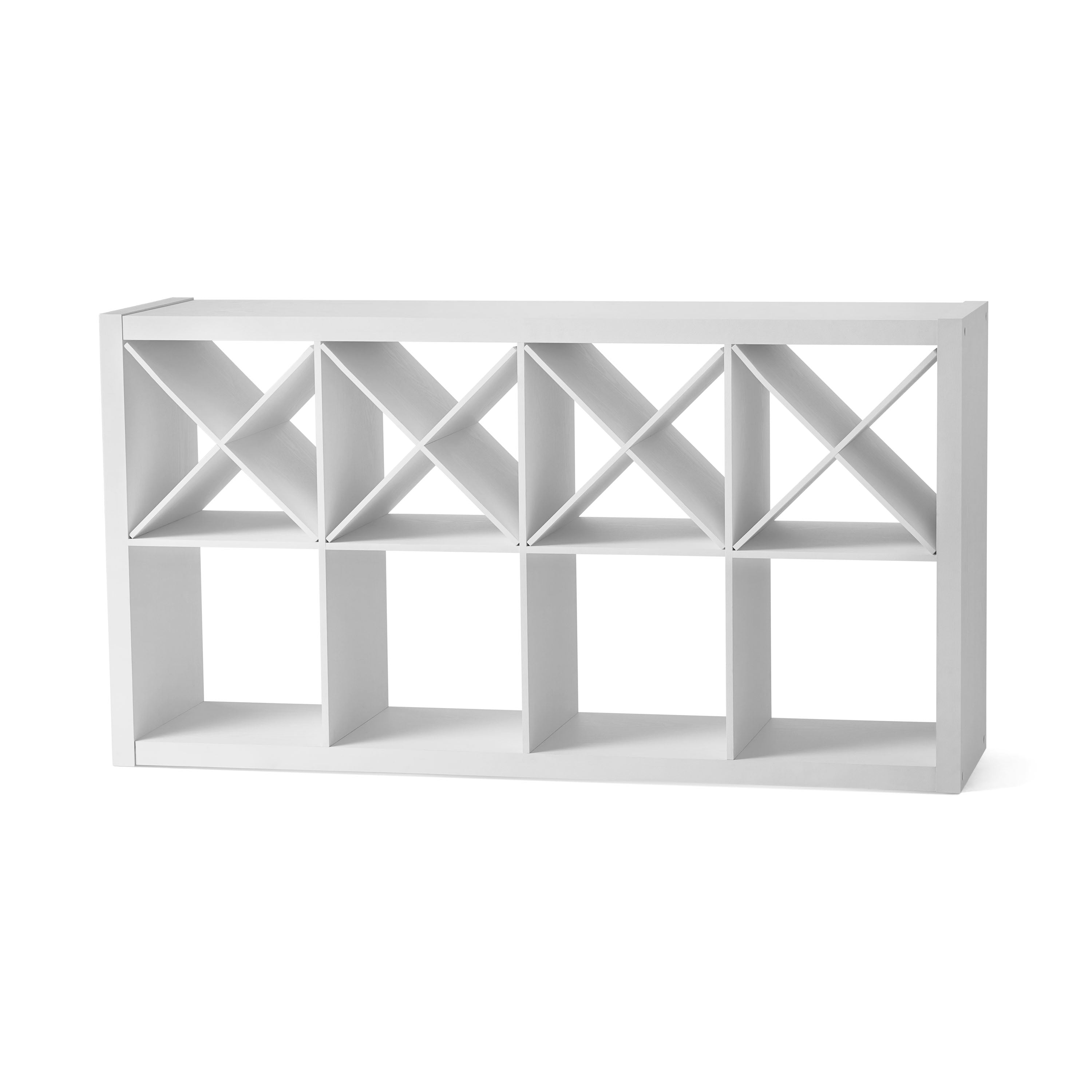 Unlock the full potential of cube storage with the Better Homes & Gardens 8-Cube Organizer with 4 X-Shelf Inserts. This package deal includes one Better Homes & Gardens 8-Cube Storage Organizer, in your choice of Tobacco Oak or Textured White wood grain finish, and four X shaped shelf dividers. The X-Shelf cube accessories can be placed in any of the cube organizer shelves and moved around as needed. By dividing a cube compartment into four separate sections the X inserts add versality and visual interest. The Better Homes & Gardens 8-Cube Organizer with 4 X-Shelf Inserts is the perfect solution for your storage and organization needs.