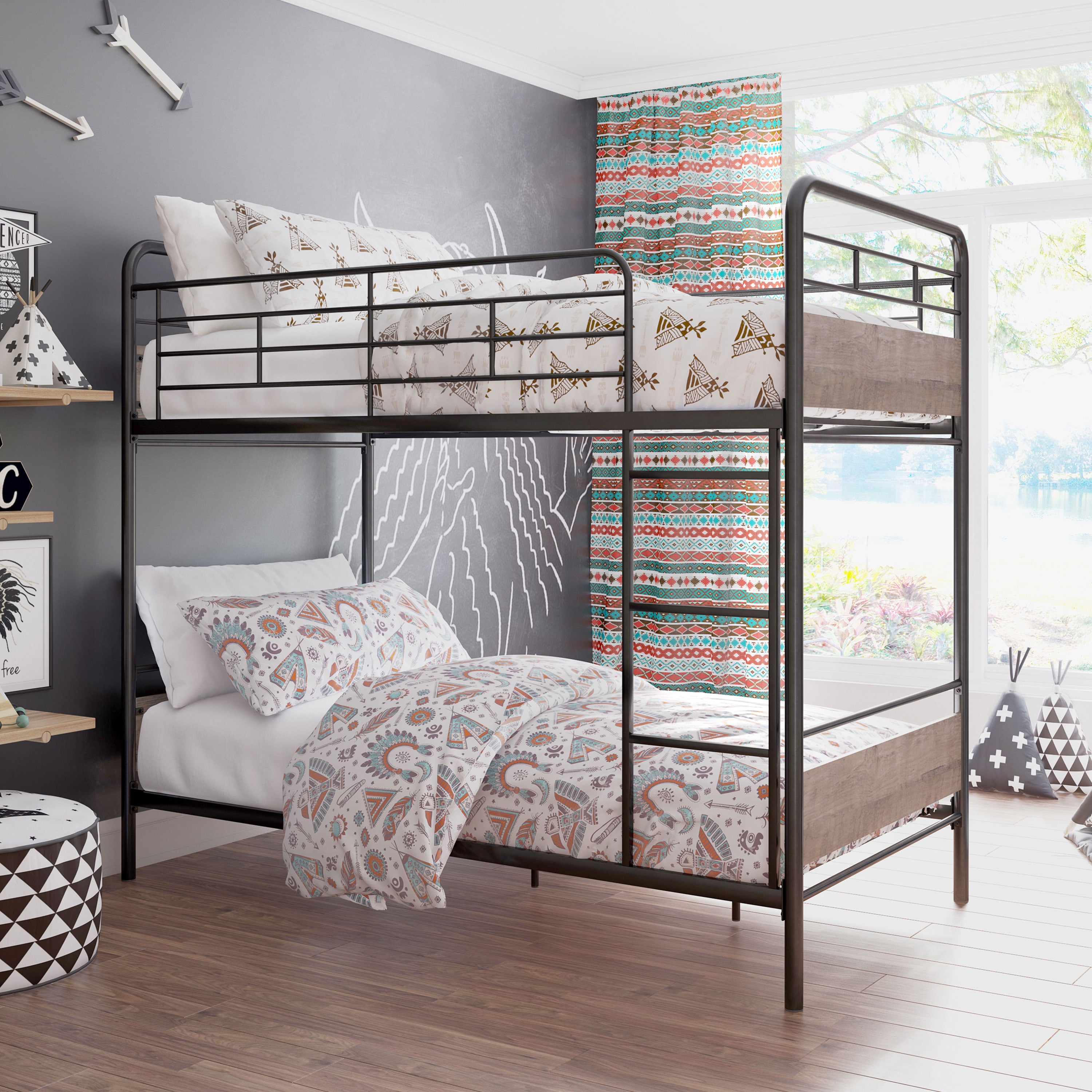 Better Homes & Gardens Anniston Twin Over Twin Bunk Bed, Metal Frame and Rustic Gray Accents