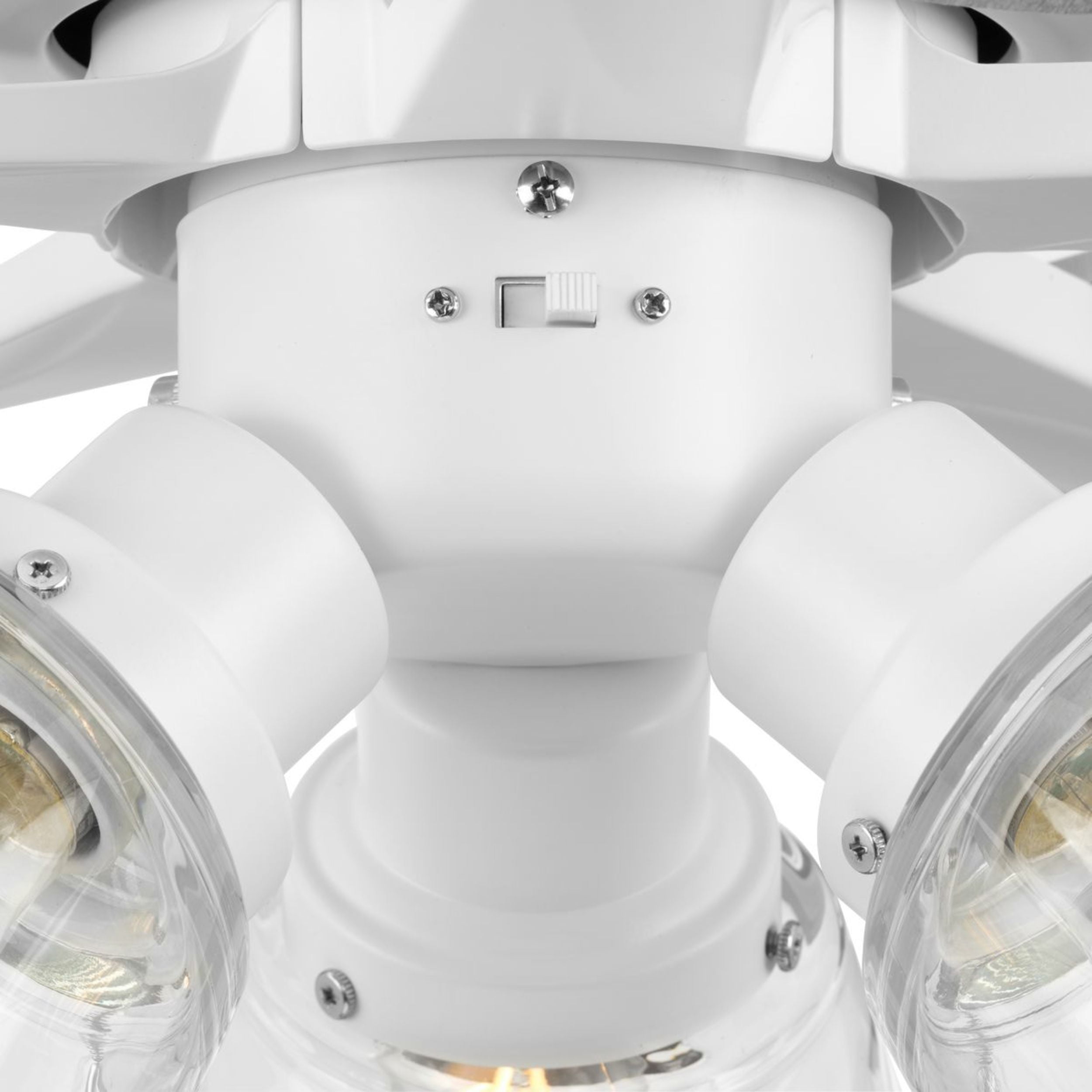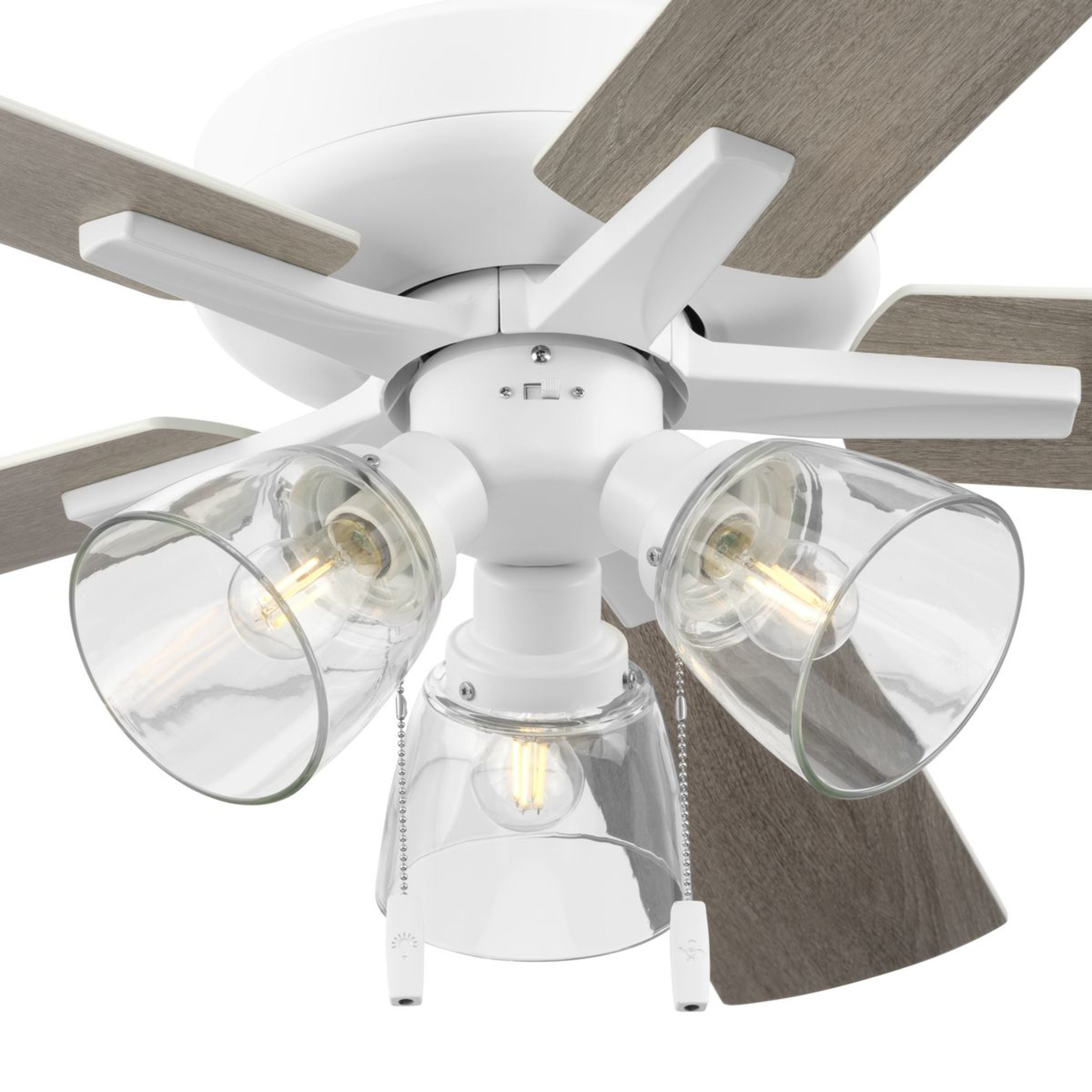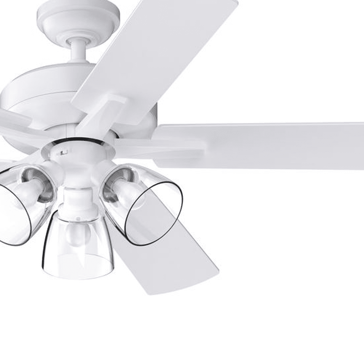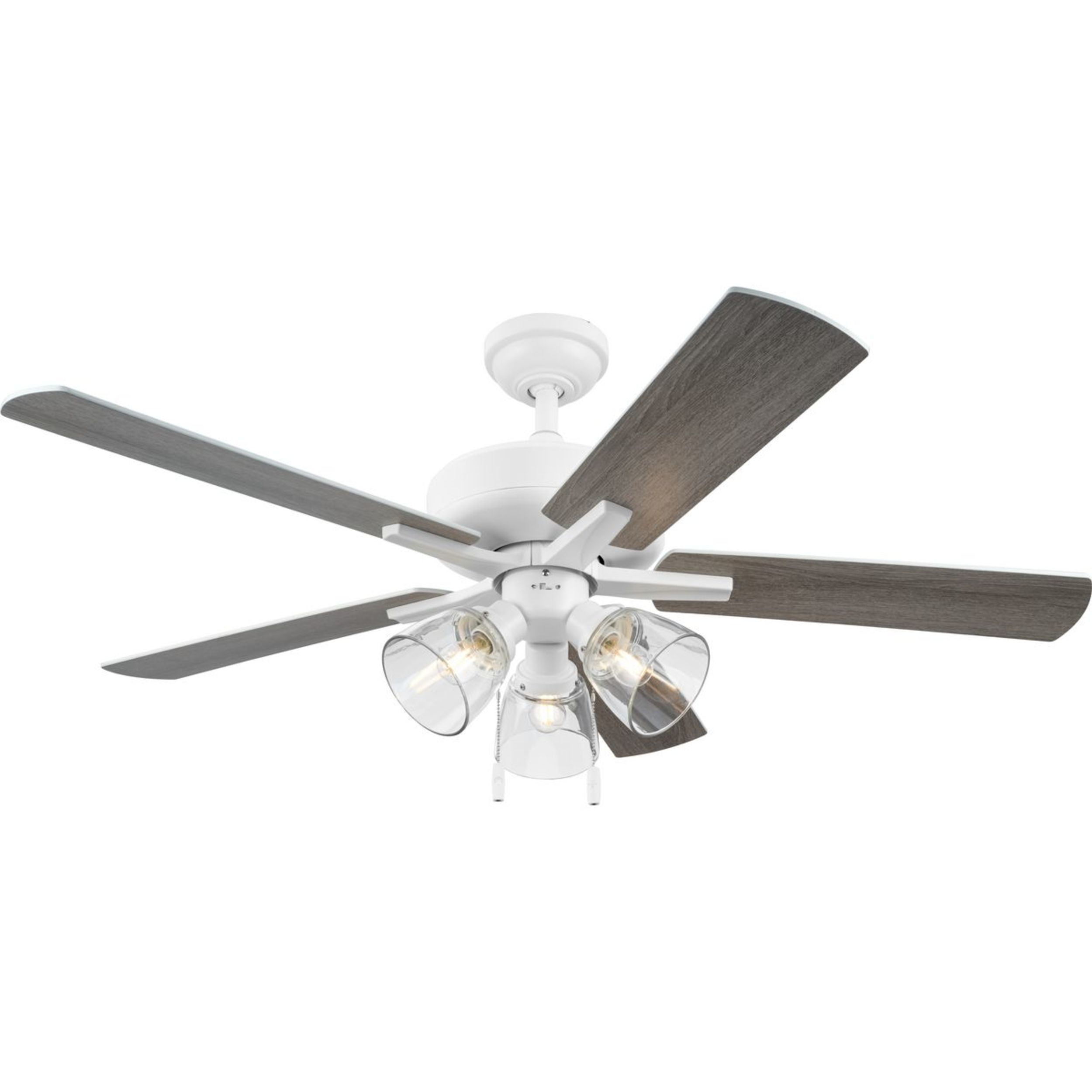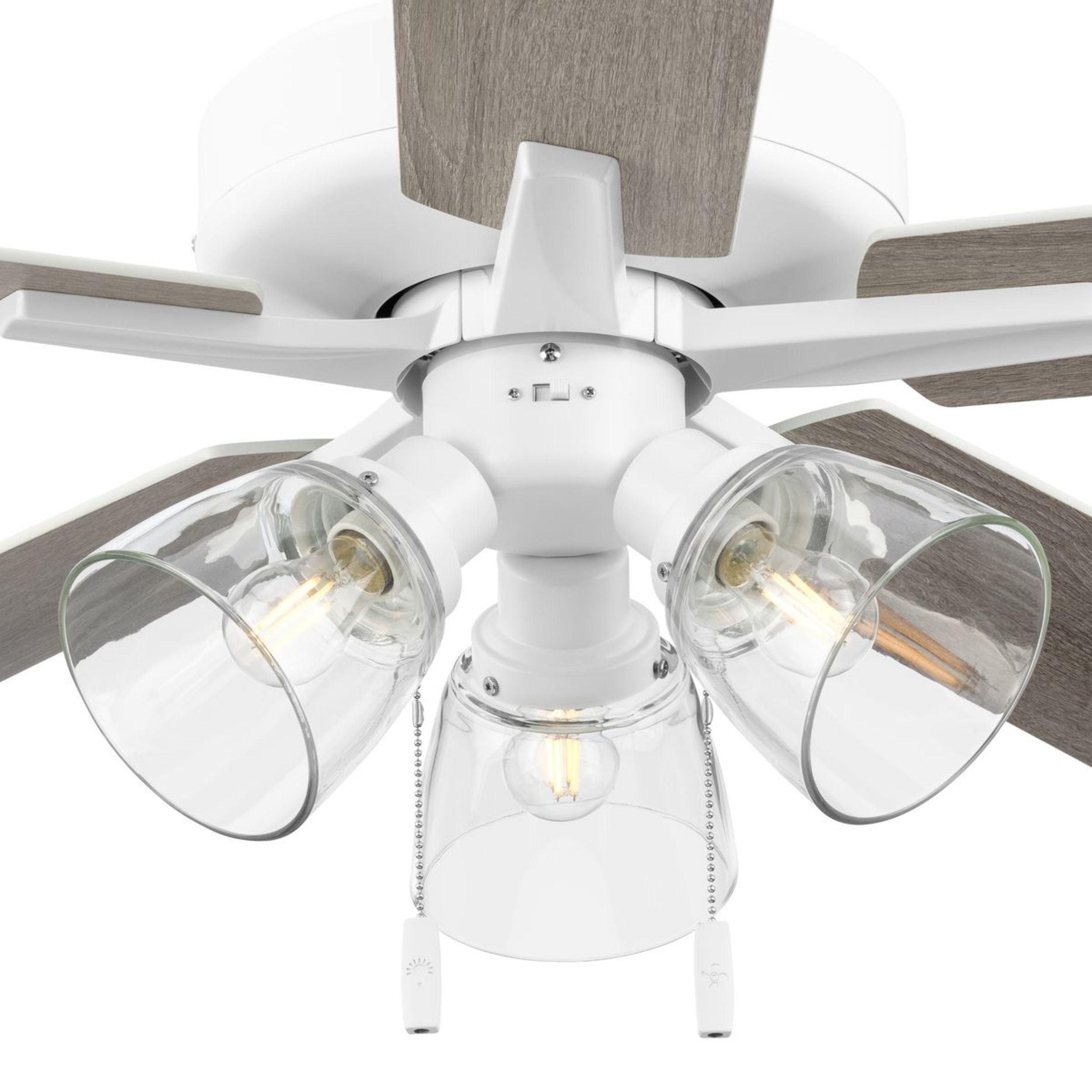 Better Homes & Gardens Bennett 52” White Traditional LED Downrod 3 Light Ceiling Fan 5 reversible blades with a choice of Driftwood and Classic Walnut finishes Transitional style that complements various decor Three pull-chain adjustable speed settings for customized airflow; Includes three dimmable LED bulbs for bright illumination Clear, bell-shaped shades enhance the fan’s aesthetic; Easy to install and can be mounted on a sloped ceiling Ideal for large to medium-sized living spaces such as great rooms and bedrooms