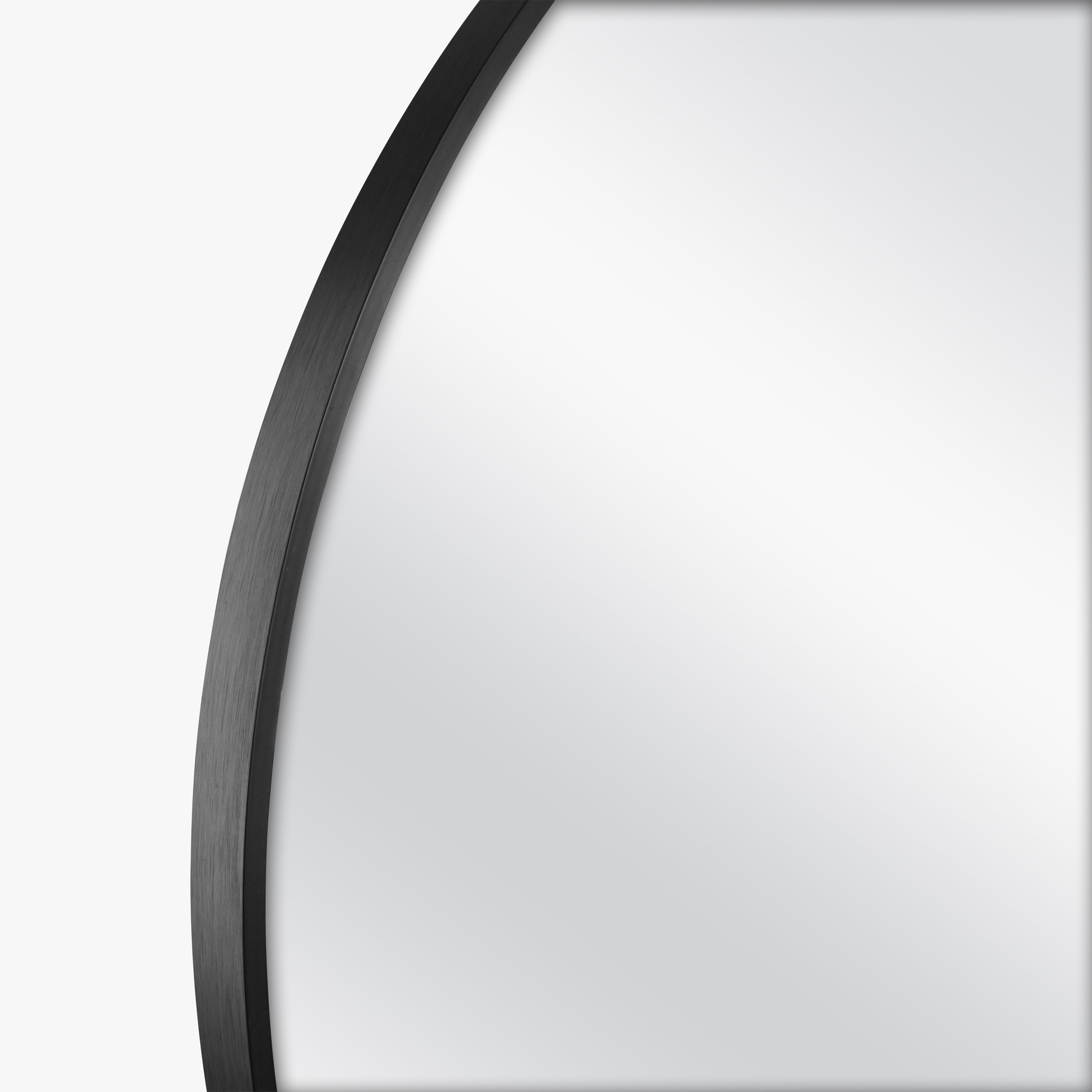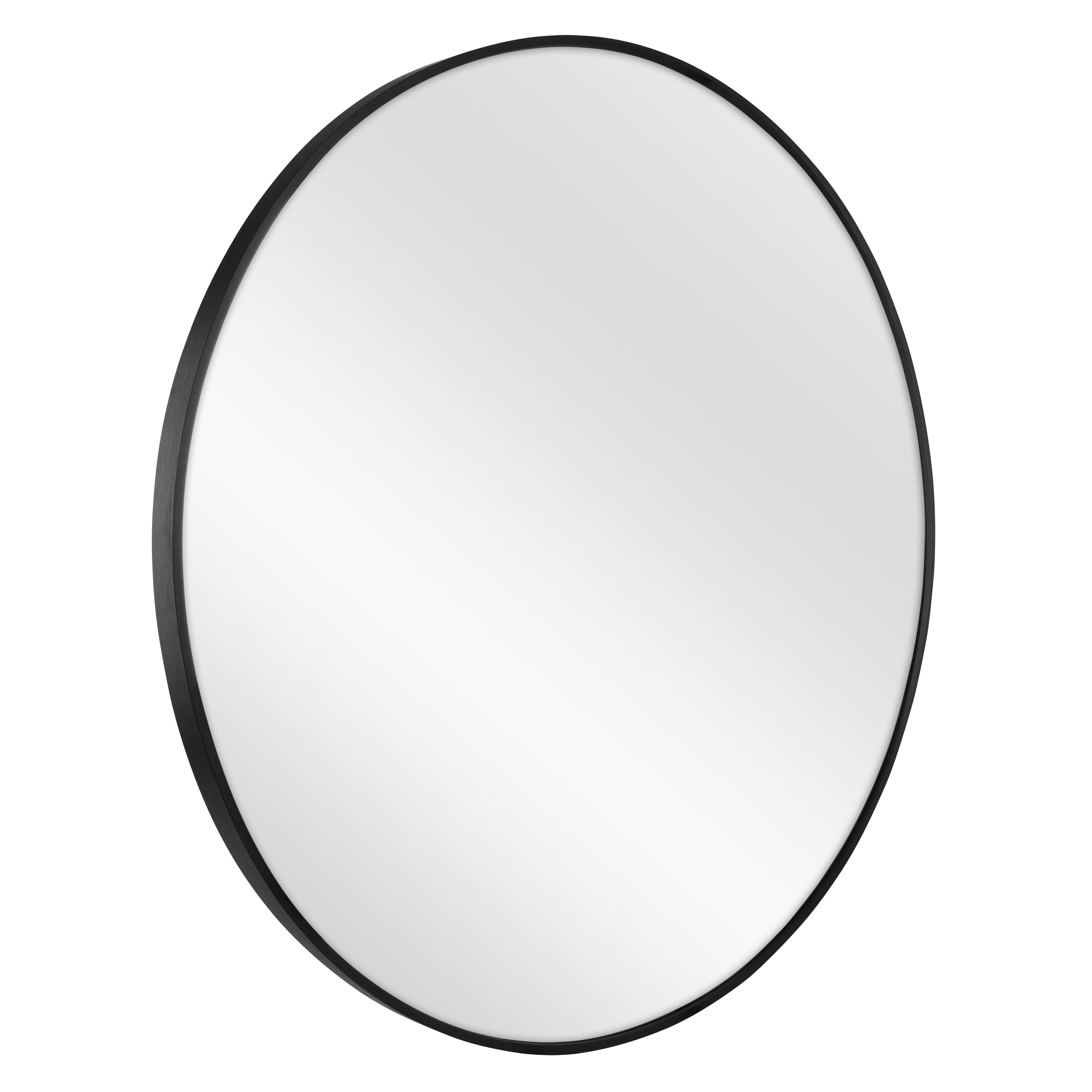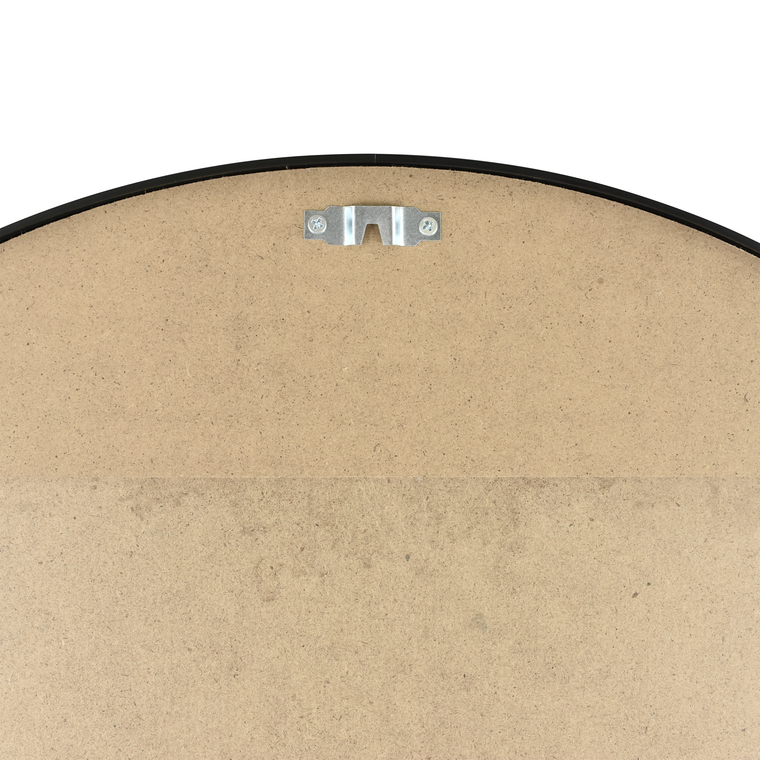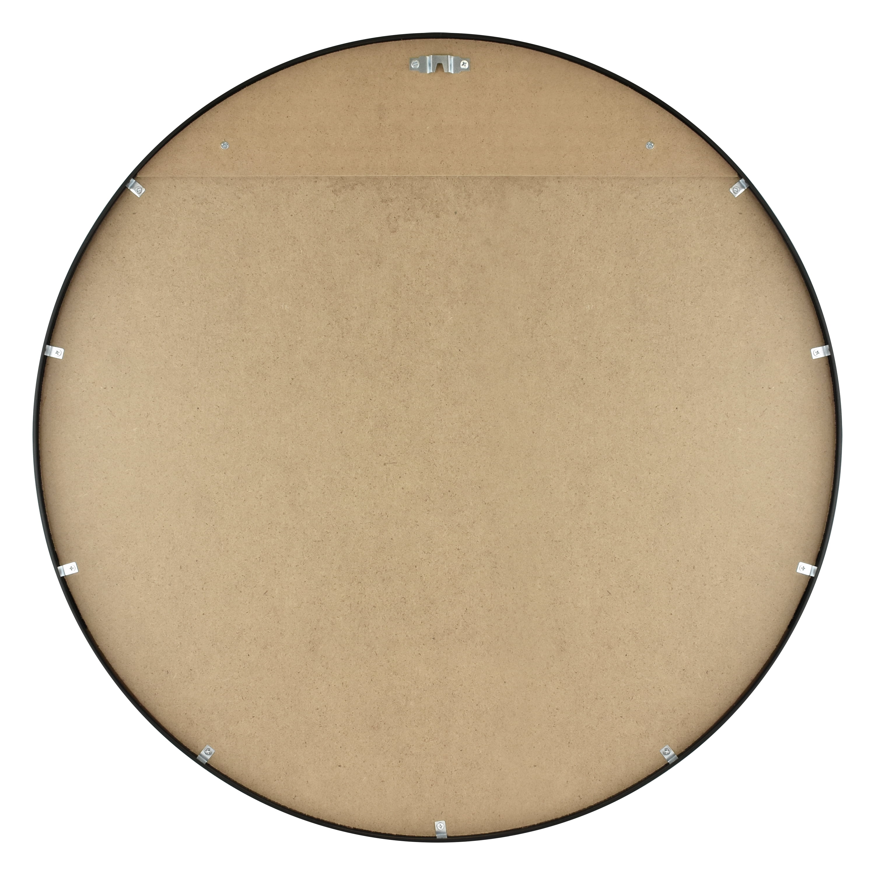 Better Homes & Gardens 28 Inch Round Black Metal Wall Mirror: Matte Black Finish Dimensions: 28″ in diameter Constructed of thin metal frame with glass front Features metal keyhole hanger at the back for easy hanging Ideal for living room, entry way, bathroom, bedroom or hallway