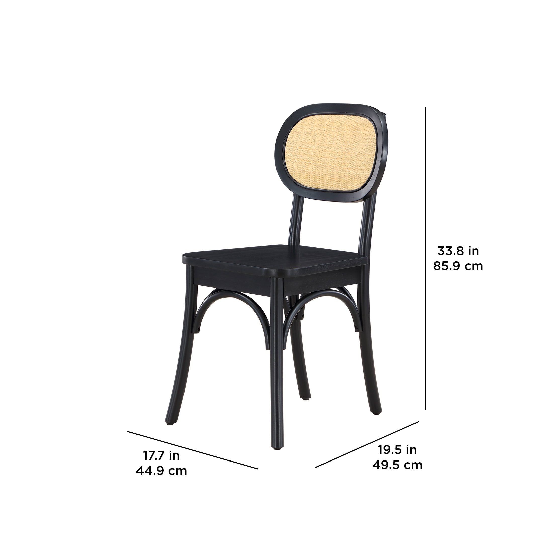 Better Homes & Gardens Camden Dining Chairs, Black Wood finish, by Dave & Jenny Marrs Easy to assemble Ratchet tool is included Curved legs Sturdy chairs made of solid rubber wood and rattan Coordinate with other furniture from the Better Homes & Gardens by Dave & Jenny Marrs collection Includes a set of 2 dining chairs With an eye-catching rattan design Dimensions: 17.7″ L x 19.5″ W x 33.38″ H Clean lines and a timeless design will revitalize your dining room Weight: 28.7 lbs