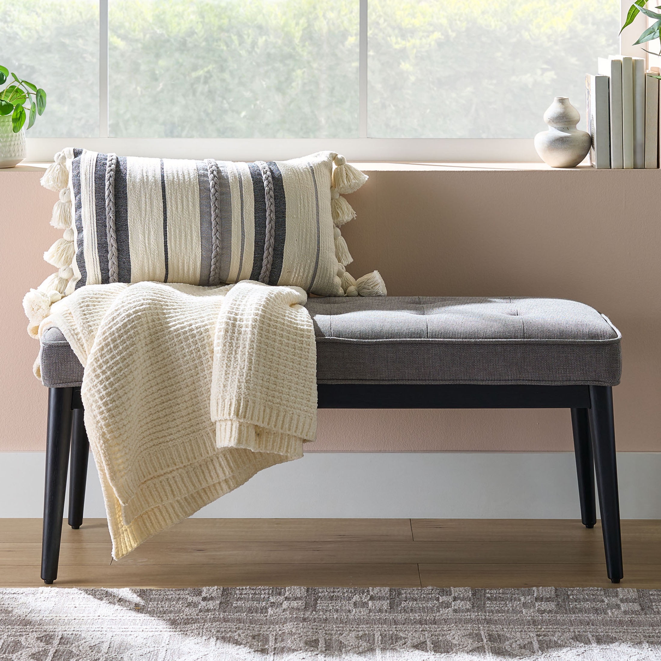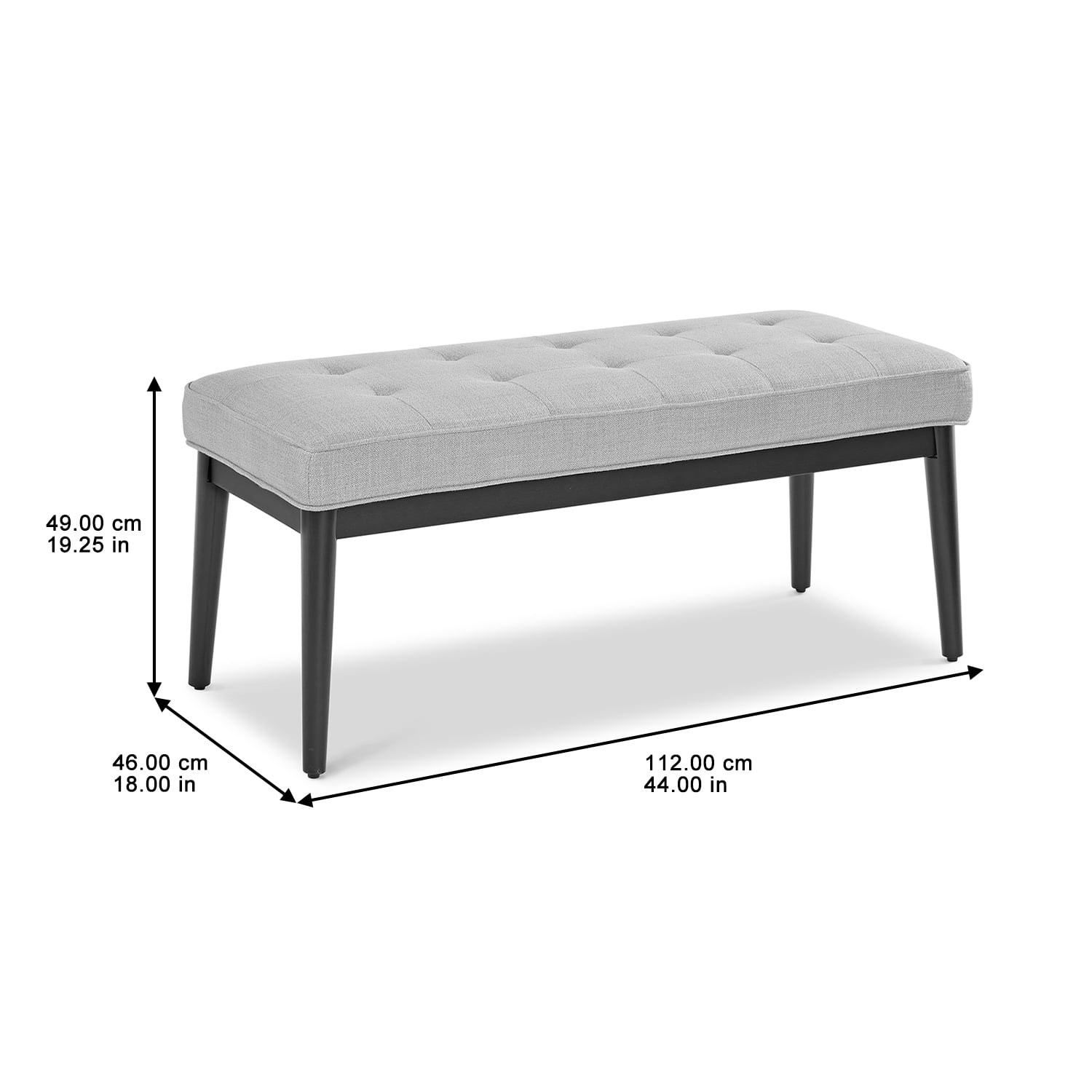 Better Homes & Gardens Colton Upholstered Accent Bench Fresh modern style, legendary comfort indoor furniture Beautifully upholstered in high-quality fabric Every piece is designed with your complete comfort in mind Assembled size: 18″ (D) x 19.25″ (H) x 44″ (W)