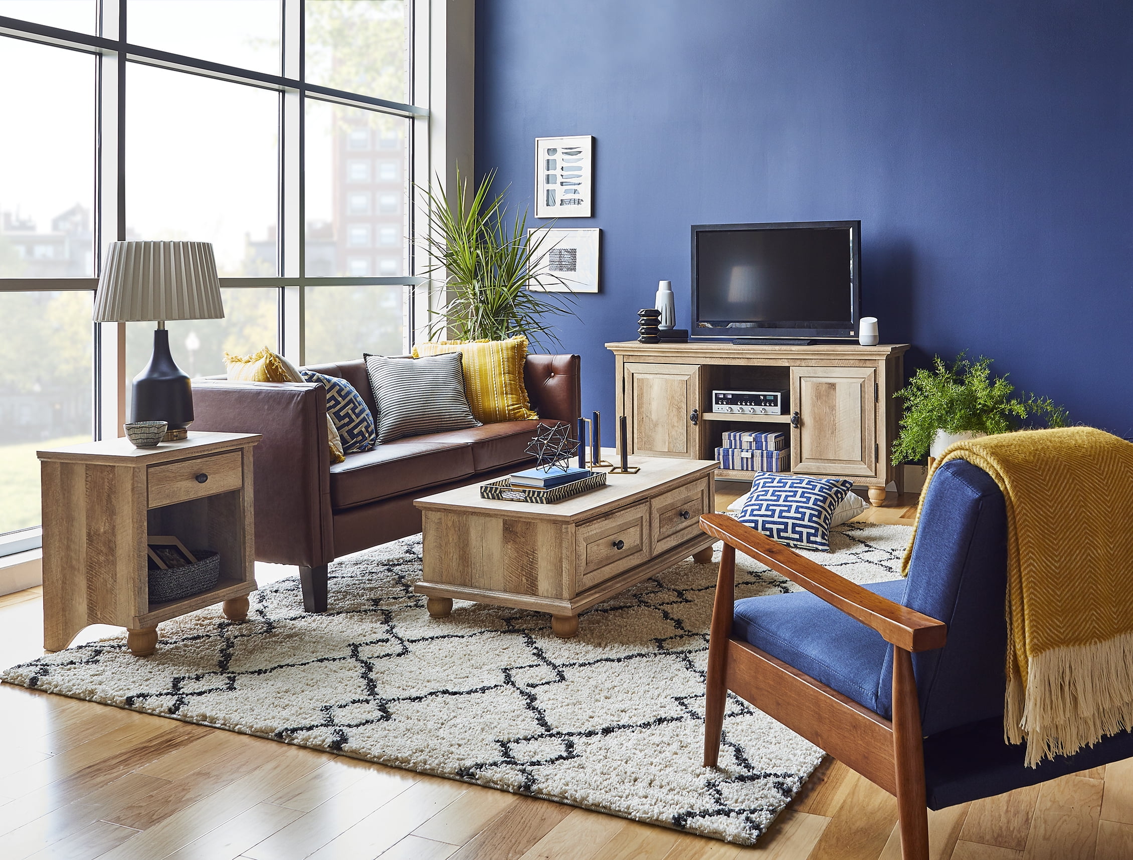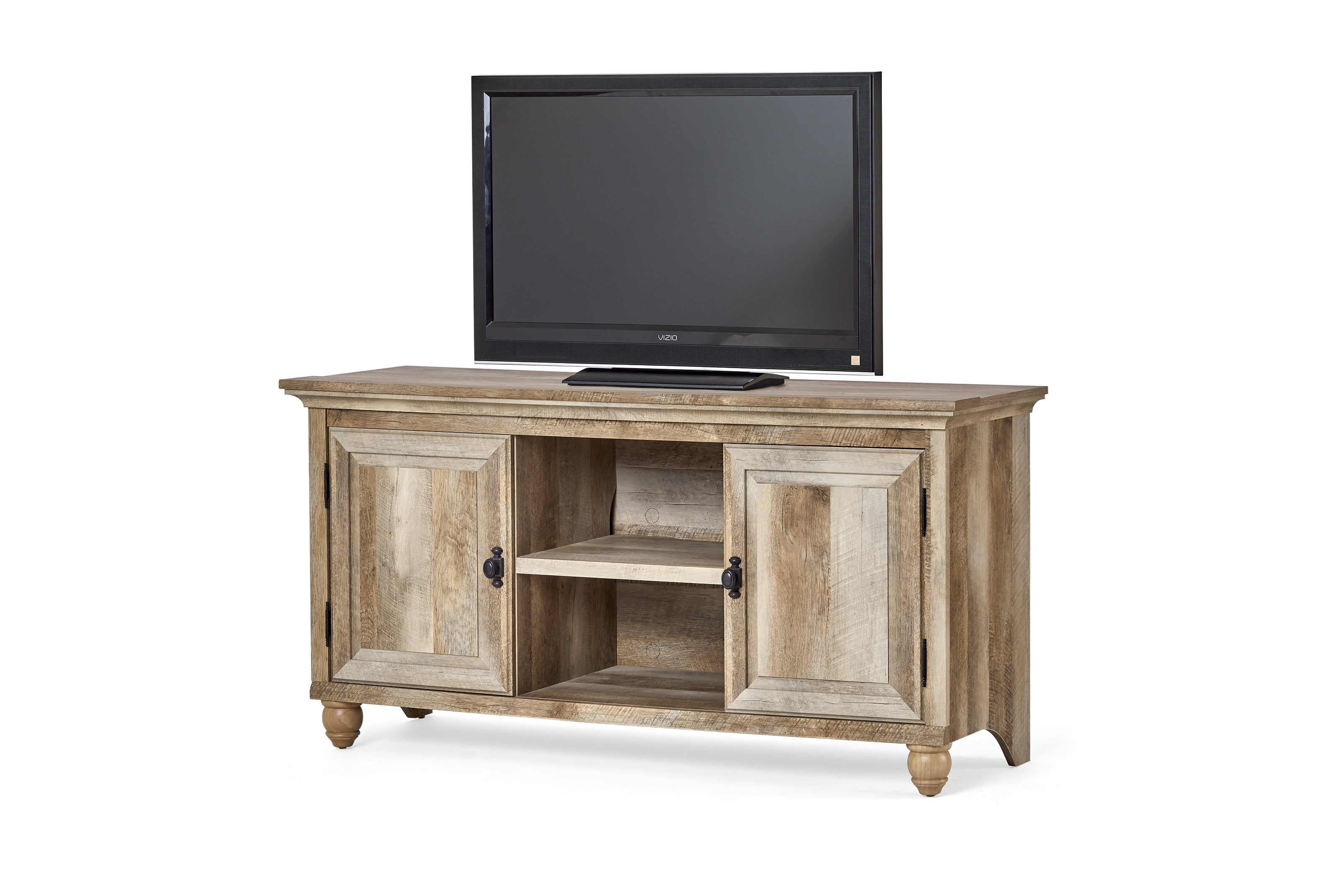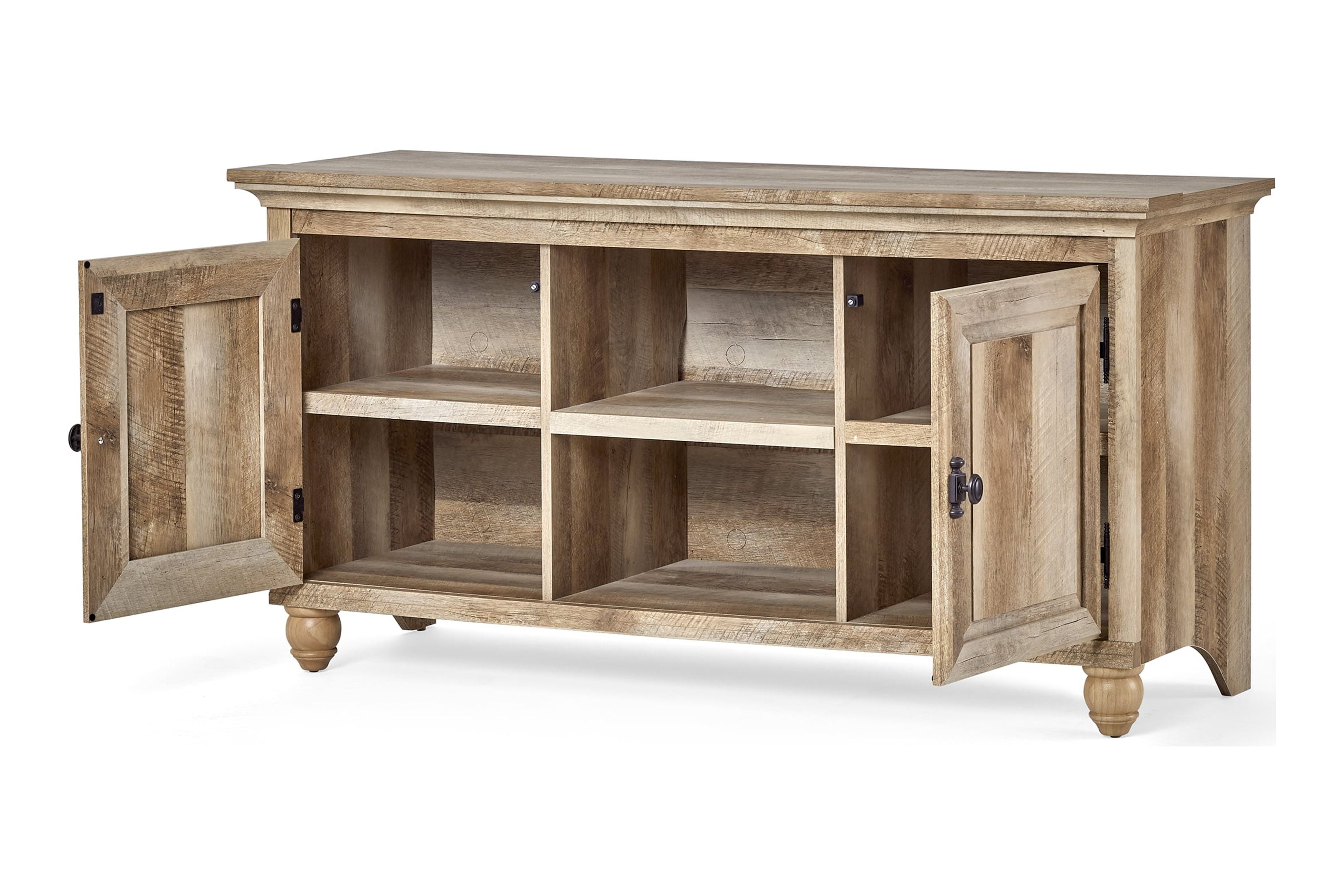 So you bought a new TV and you’re super excited. Then it dawns on you, you have no place to set it and you’d rather not watch tonight’s episode on the floor. Nobody wants that. But don’t worry – we’ve got you covered. The sleek design and rustic charm of this TV stand/console cabinet from the Better Homes & Gardens Crossmill collection will make the perfect home for your new purchase. It accommodates most 37″ to 65″ flat-panel TVs, making it the ideal spot to cozy up around to binge-watch your favorite shows, have all-day movie marathons or play endless hours of video games with your friends. Or switch it up its versatile design allows it to be used as a stylish buffet or a handy storage cabinet. Its spacious top surface provides you with ample room to display home decor items like an accent lamp, decorative plants, and pictures of your family and friends. It features an adjustable center shelf that can be moved to different heights to accommodate items like video and gaming components, your collection of movies, and knick-knacks too. Behind the two raised panel doors are hidden storage areas that include an adjustable shelf for convenient storage of around home items that you prefer to be hidden. With a Weathered Finish, this versatile TV stand/console cabinet is everything your home needs and more.
