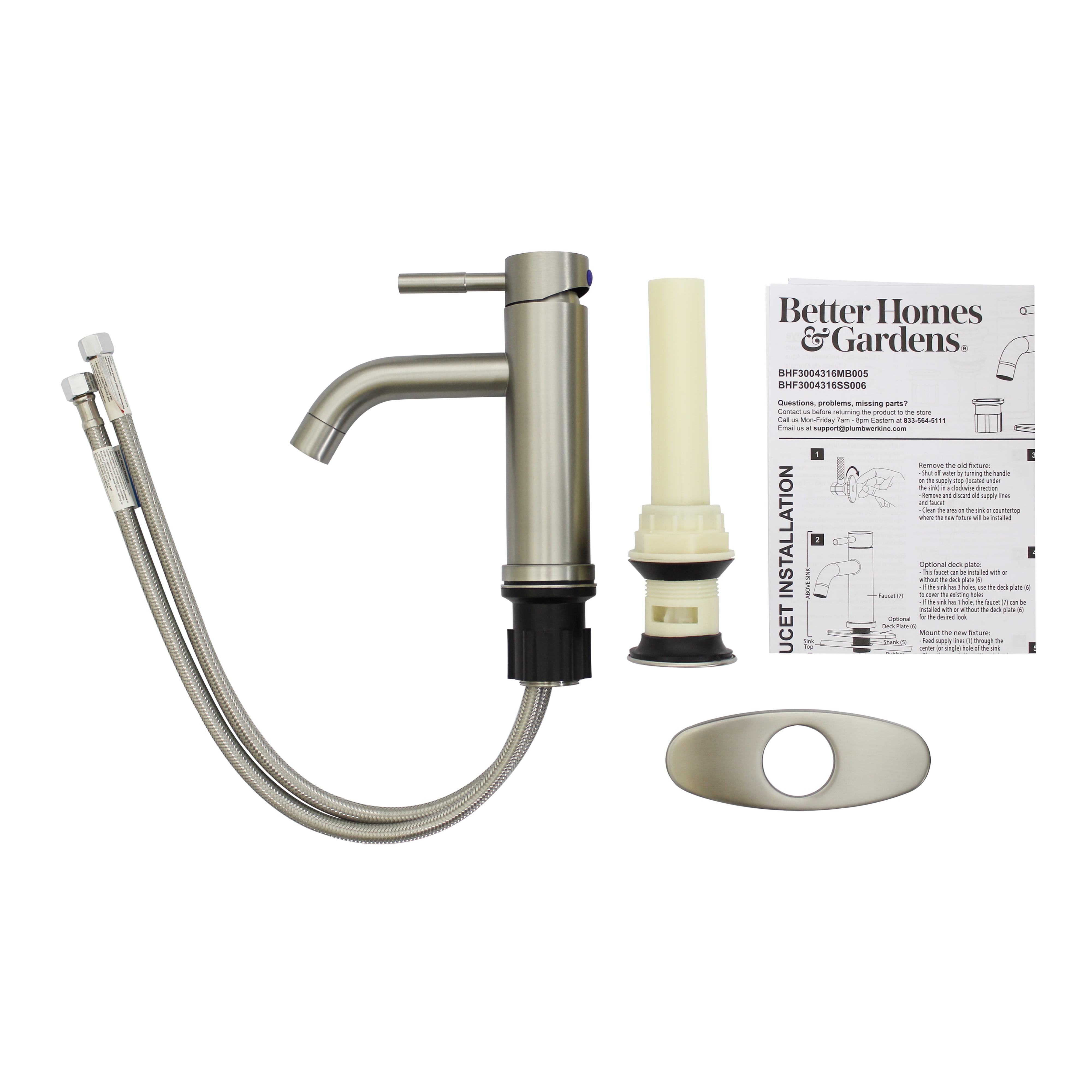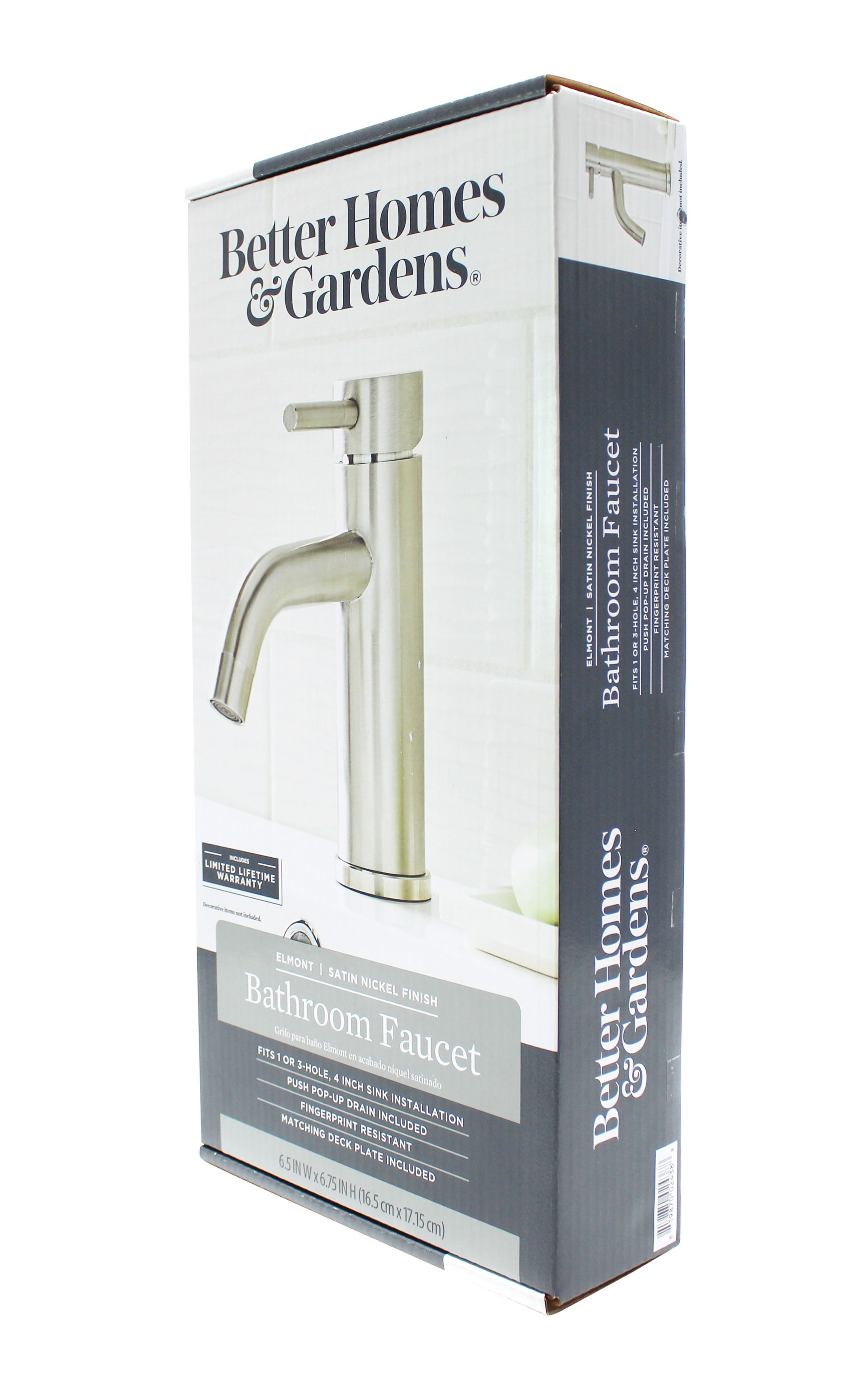 Better Homes & Gardens Elmont Single Handle Bathroom Faucet, Satin Nickel, Includes Push Pop-Up Drain