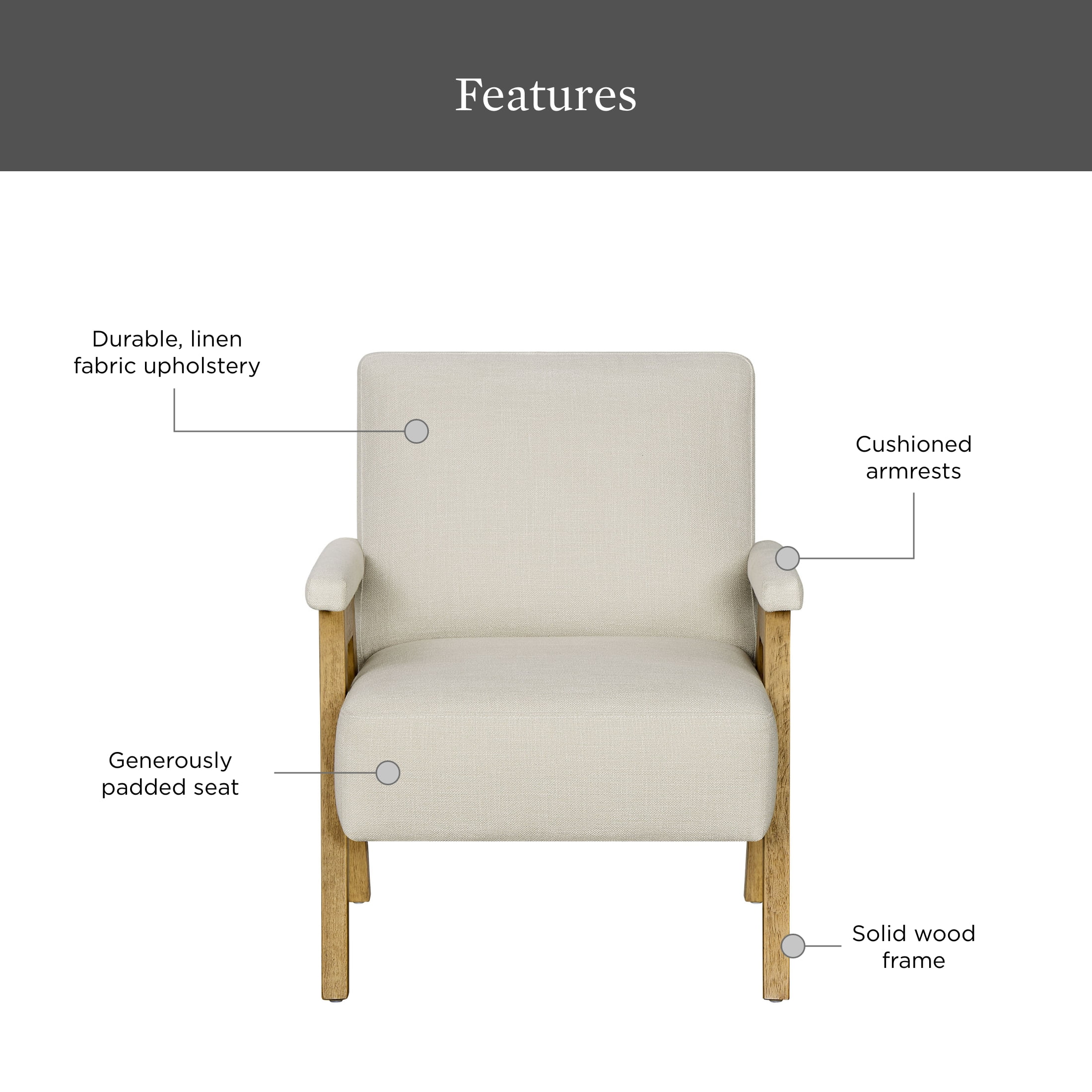 Add comfort and style to your space with the Better Homes & Gardens Ezra Accent Chair. Great for relaxing or hosting friends, this living room chair is made with a solid wood frame for long-lasting use and soft fabric for a cozy feel. Choose from two colors — Olive Green or Cream Linen — that work well in any room. With cushioned armrests and a padded seat and back, this upholstered chair built for comfort. The Better Homes and Gardens Ezra Accent Chair combines a modern look with everyday function, making it a perfect choice for any home.