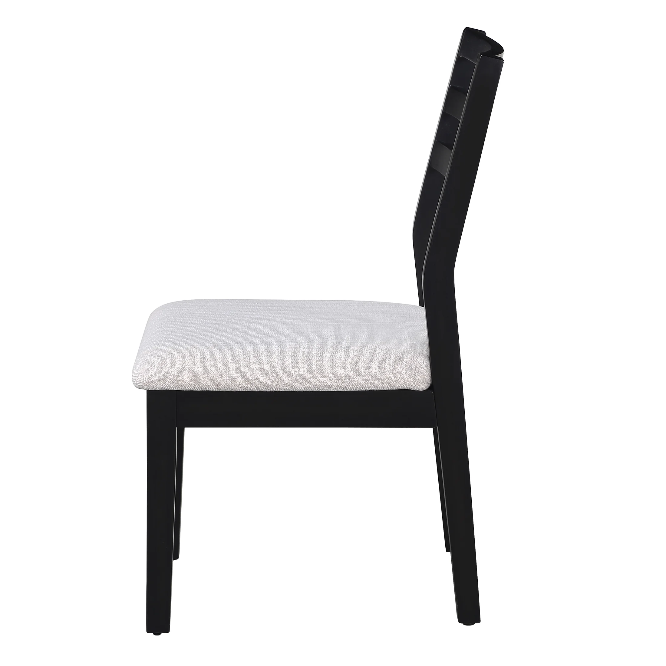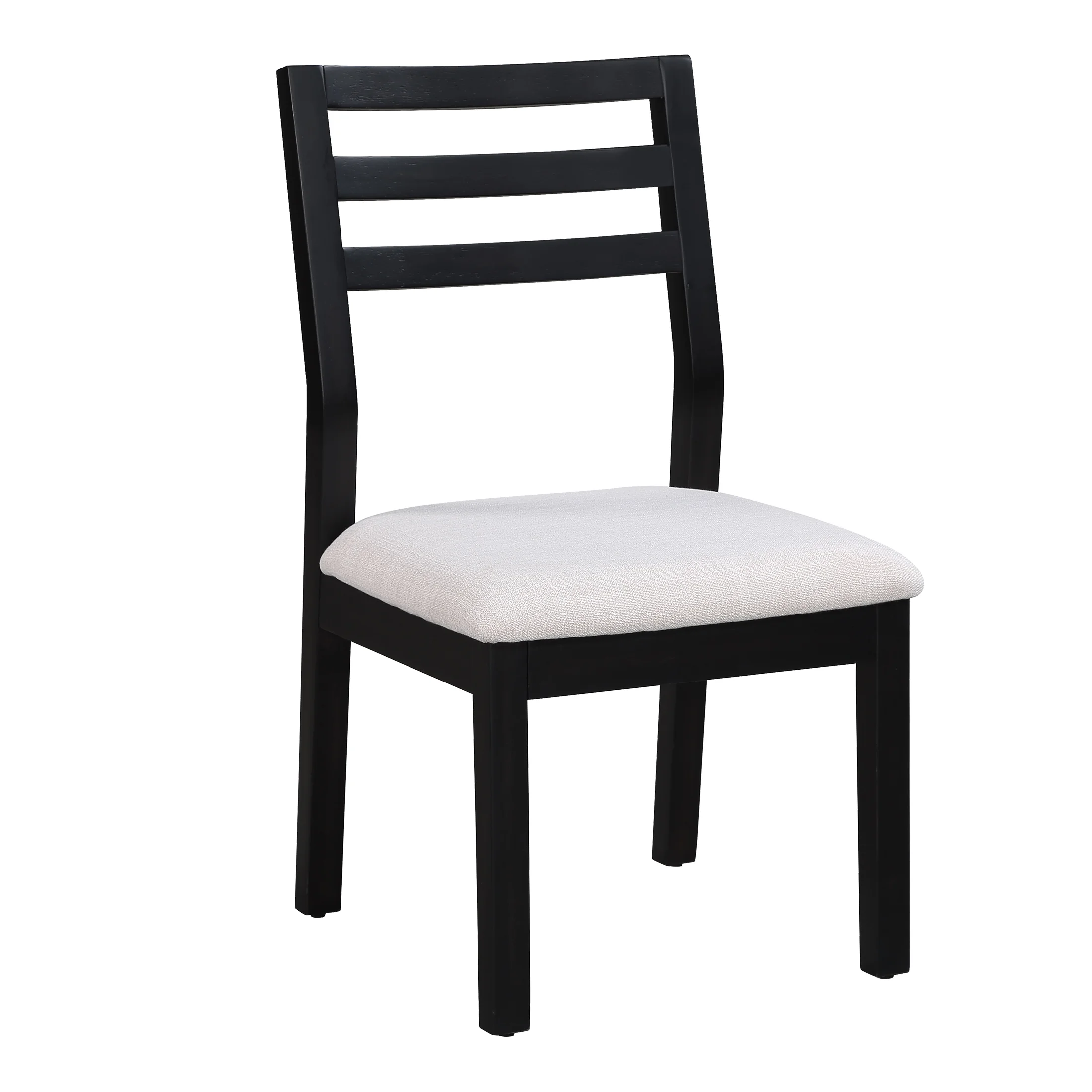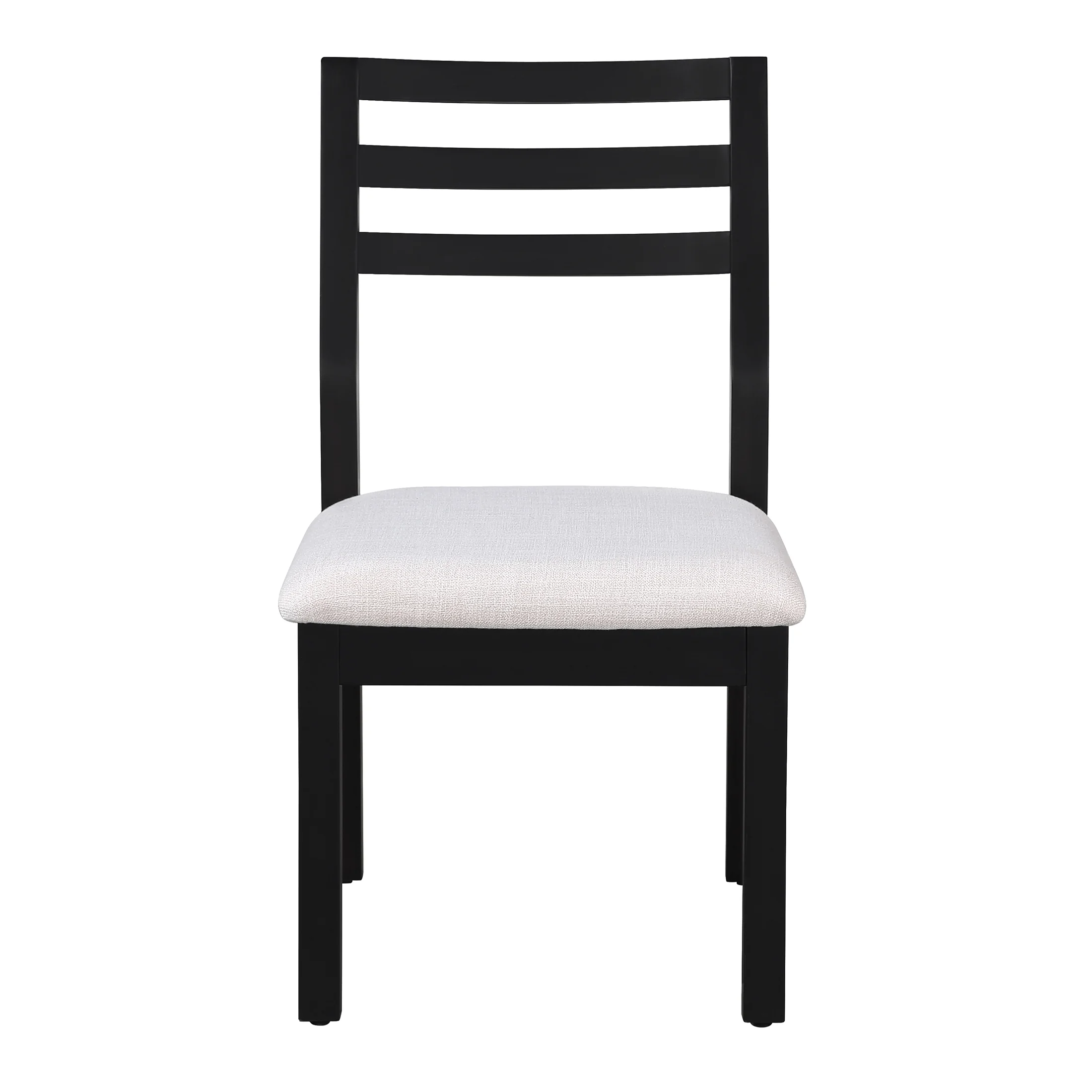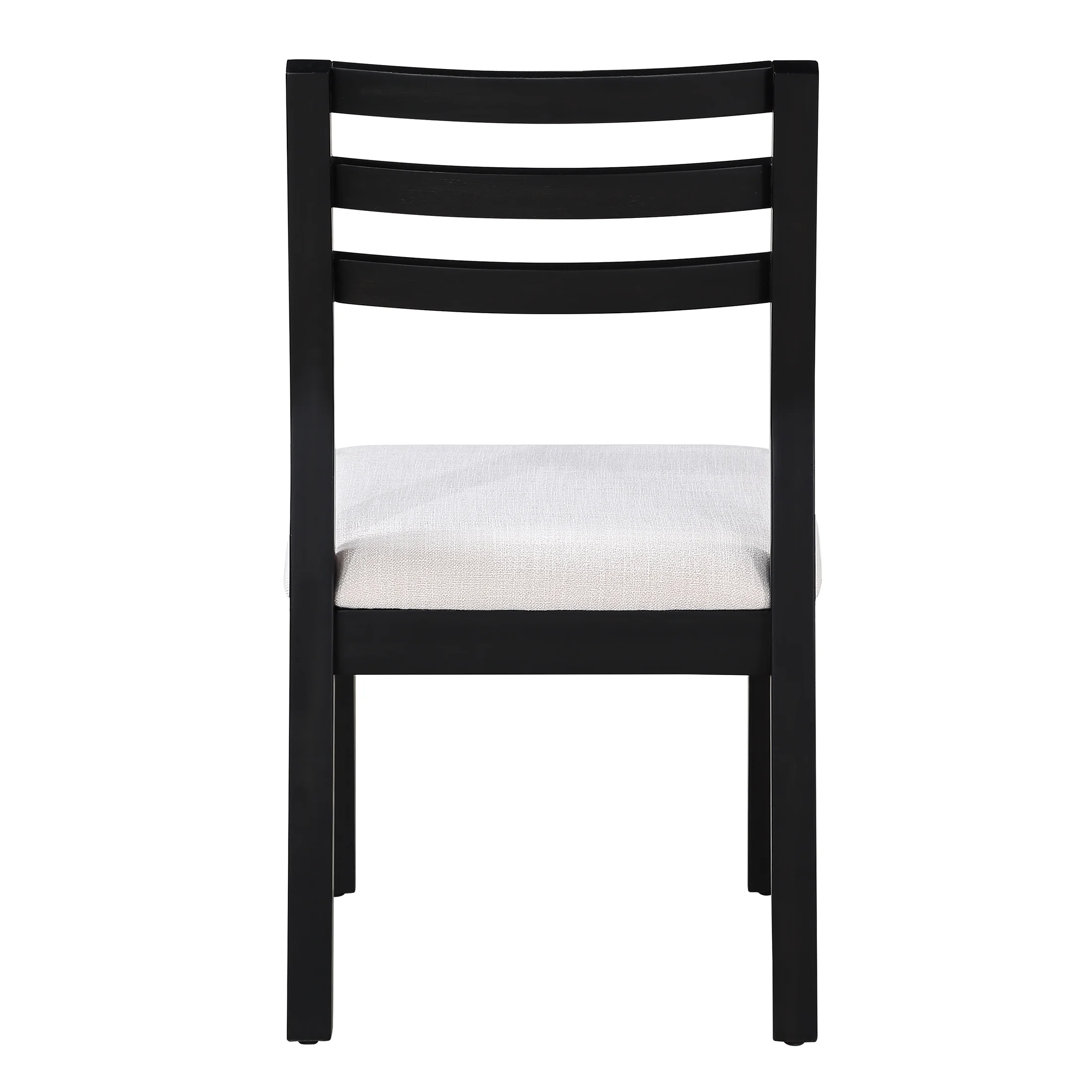 Add contemporary accents to your dining room with the Better Homes & Gardens Ezra Dining Chairs in Black and Off-White. These two-pack dining chairs are designed to blend seamlessly with nearly every interior style. The spacious chair seats are upholstered with white fabric and cushioned for comfortable seating, while the sturdy solid wood frame is built for long-lasting use and durability. Its sleek black ladder frame offers plenty of back support for enjoying dinners, game nights, homework time, and more. Style these chairs in your dining room with a matching contemporary table from the Better Homes & Gardens Ezra Collection, or use them as extra seating in the kitchen or study.