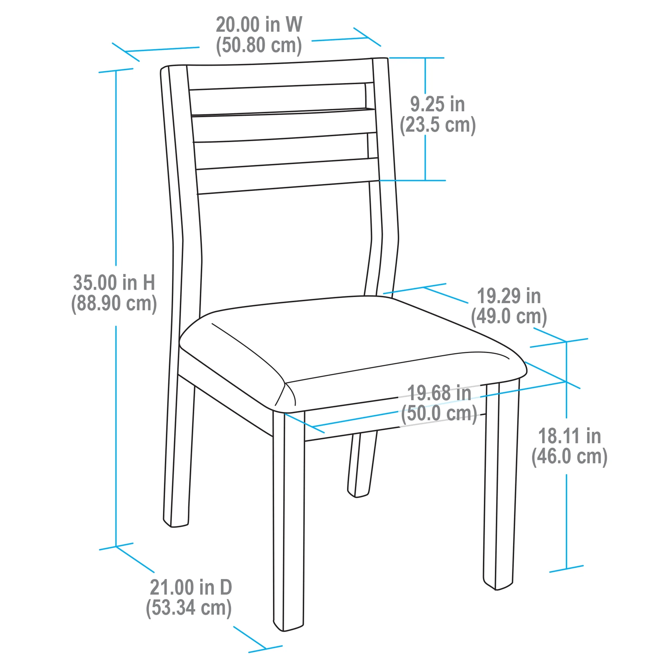 Assembled Dimensions: 20” W x 21” D x 35” H Product Weight: 35 lb Color: Black, Off-White Package Dimensions: 37.4” W x 21.3” D x 13” H (95cm W x 54cm D x 33cm H) Package Weight: 41.8 lb (19 kg) Contemporary style Better Homes & Gardens ‘Ezra’ Collection Cushioned foam seat Set of 2 chairs Seat Height: 17” Seat Width: 19.5” Seat Depth: 19” Assembly required Model #BH2402125171017