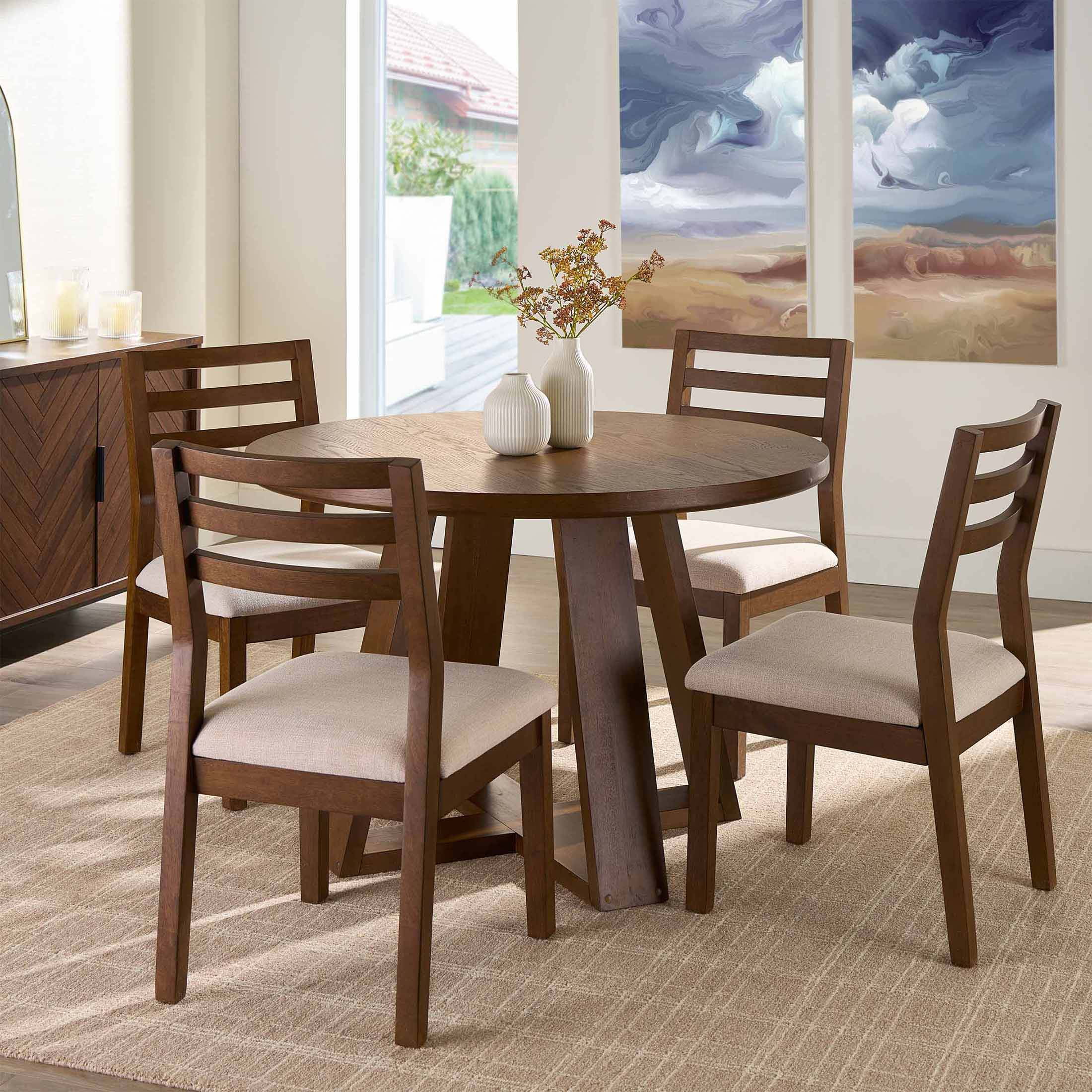 Better Homes & Gardens Ezra Round Wood Dining Table, 45 in, Walnut