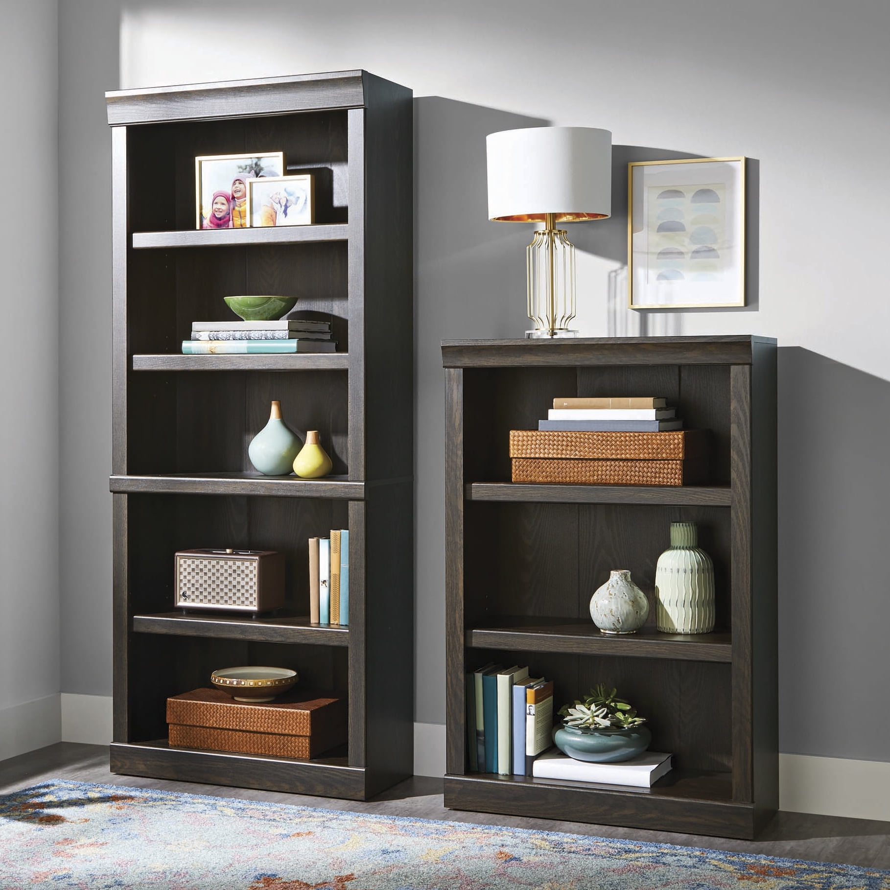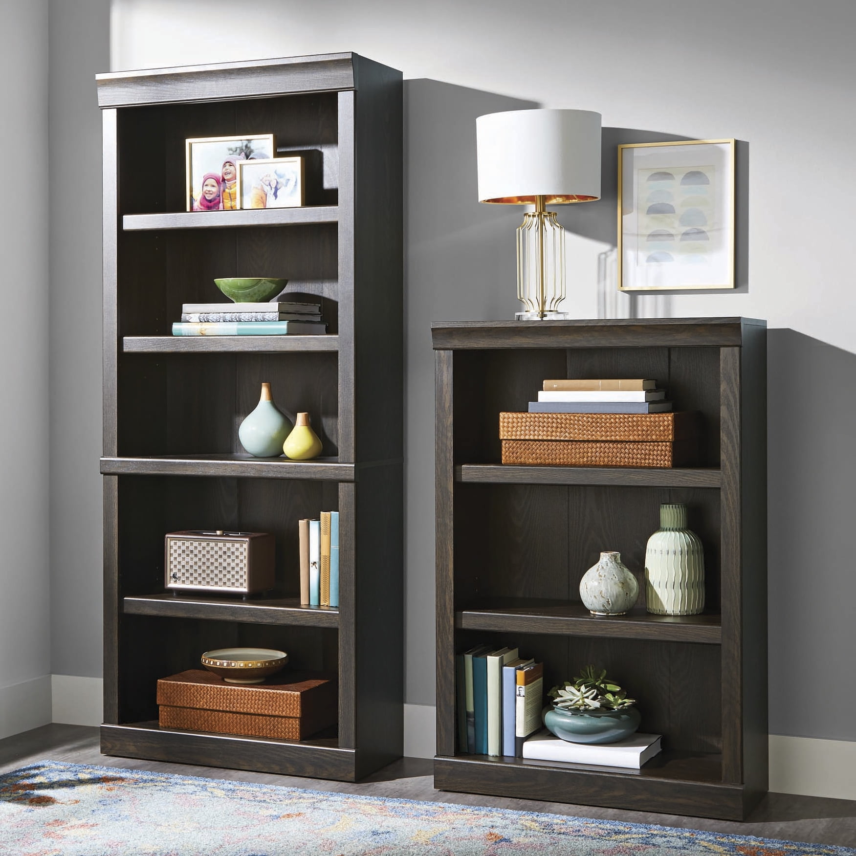 Better Homes & Gardens Glendale 5-Shelf Bookcase, Dark Oak 3 adjustable shelves, 5 total shelves Use multiple units to create versatile storage solutions Mix and match with Better Homes & Gardens Glendale 3 Shelf Bookcase, sold separately Dark oak finish Engineered wood construction 1 year limited warranty Assembly required Assembled dimensions: 29.370″ L X 12.992″ W X 71.260″ H Model 423399 Shop additional items in the Better Homes & Gardens Glendale collection