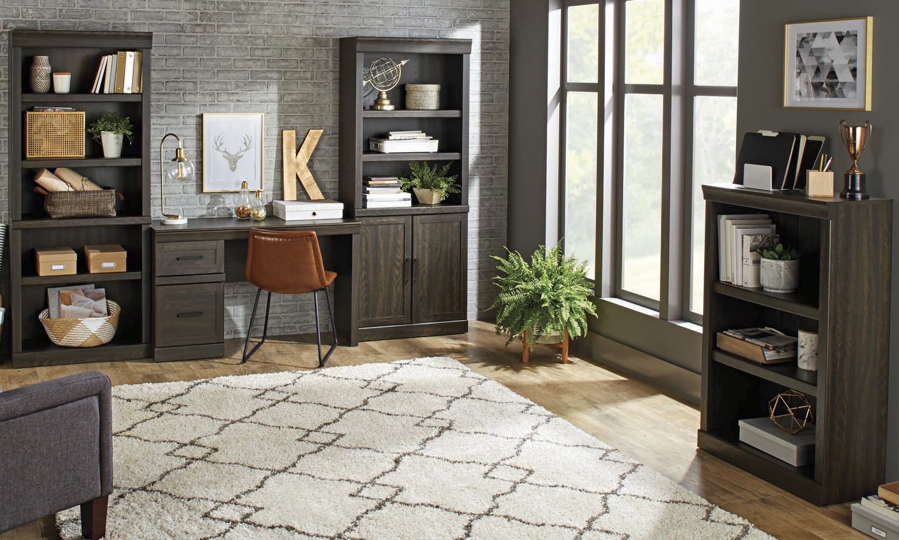 Add the versatile storage options that your home needs while adding the beautiful style and simplistic design that you want with the Better Homes & Gardens Glendale 5-Shelf Bookcase. It features five spacious shelves that provide you with all the room you need to store and display a variety of different items like your stacks of novels and organizing bins to your array of knick-knacks and photos of your family and friends. It includes three adjustable shelves that have the ability to move to different heights to create flexible storage options for items of all shapes and sizes. You can find a place for all your things! Its simple charm and attractive good looks make it a perfect fit for any room in your home from the living room to down the hallway or even in your bedroom. Finished in dark oak, this handsome bookshelf will have you feeling organized in no time. Organize your home in style with the Better Homes & Gardens Glendale 5-Shelf Bookcase. From book cases to TV stands, Better Homes and Gardens furniture is designed to help you organize your home. Look for a new dresser for your clothes, display your favorite books with a bookcase or create your home office with a desk and a cube organizer. You’ll also find kitchen and dining tables and chairs, living room furniture and kid s furniture.