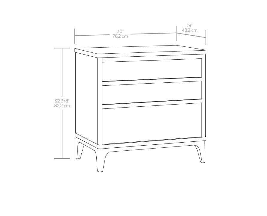 Assembled Dimensions: L: 30.00″ x W: 18.98″ x H: 32.36″ Spacious drawers feature metal runners and safety stops Lower drawer is extra deep Interlocking safety mechanism allows only one drawer open at a time on each side Tip restraint safety strap included Solid wood feet Acorn finish Model #: 441420 Box Dimensions: L: 37.99″ x W: 21.73″ x H: 11.73″ For additional questions or any issues, please contact the manufacturer at 1-800-523-3987. Be sure to check out the Better Homes & Garden collection for more great items!