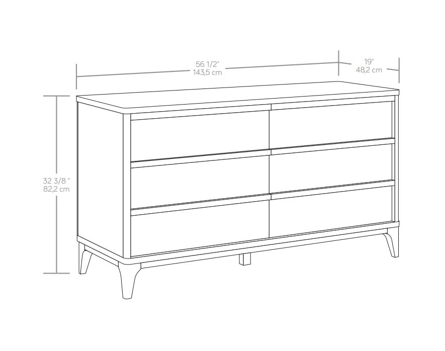 Assembled Dimensions: L: 56.50″ x W: 18.98″ x H: 32.36″ Spacious drawers feature metal runners and safety stops Interlocking safety mechanism allows only one drawer open at a time on each side Tip restraint safety strap included Solid wood feet Acorn finish Model #: 441427 Box 1 Dimensions: L: 64.88″ x W: 22.13″ x H: 5.63″ Box 2 Dimensions: L: 33.27″ x W: 22.13″ x H: 12.24″ For additional questions or any issues, please contact the manufacturer at 1-800-523-3987. Be sure to check out the Better Homes & Garden collection for more great items!