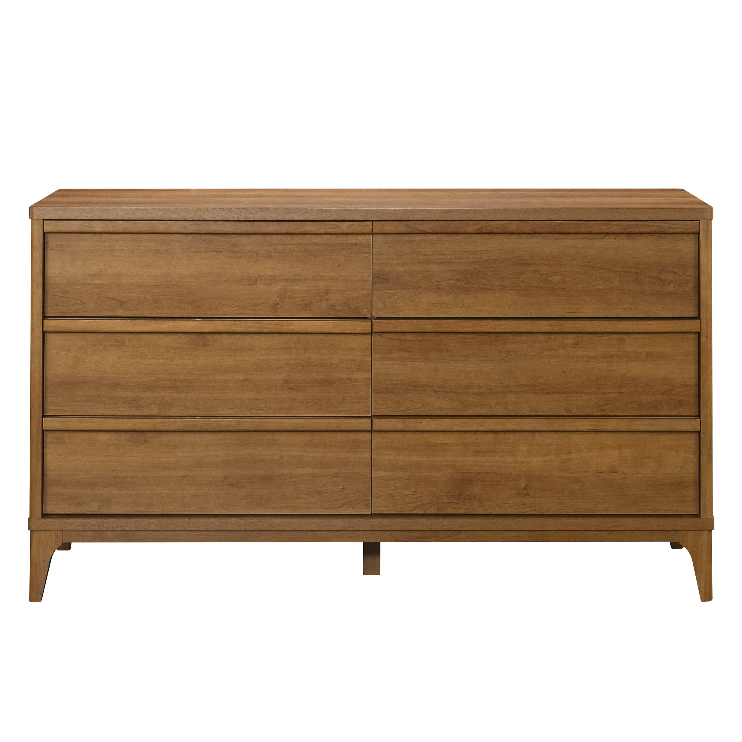 With both utility and simple elegance of mid-century modern style, this 6-drawer dresser from the Better Homes & Gardens Greyson collection embodies a true turn-of-the-century vibe. Crafted with a beautiful Acorn finish, this retro dresser boasts a natural wood look that complements décor in any bedroom or living space. The solid wood feet add stability and durability, ensuring this double dresser will last for years. With spacious drawers equipped with metal runners and safety stops, this bedroom dresser provides smooth operation and ample storage space for bedroom, dining room, or entryway essentials. This mid-century modern dresser has an interlocking safety mechanism that ensures only one drawer opens at a time on each side, enhancing safety and preventing tipping. Additionally, a tip restraint safety strap is included, offering added security. Perfect for organizing, its sleek lines and functional design make this contemporary dresser with drawers a standout piece in any home.