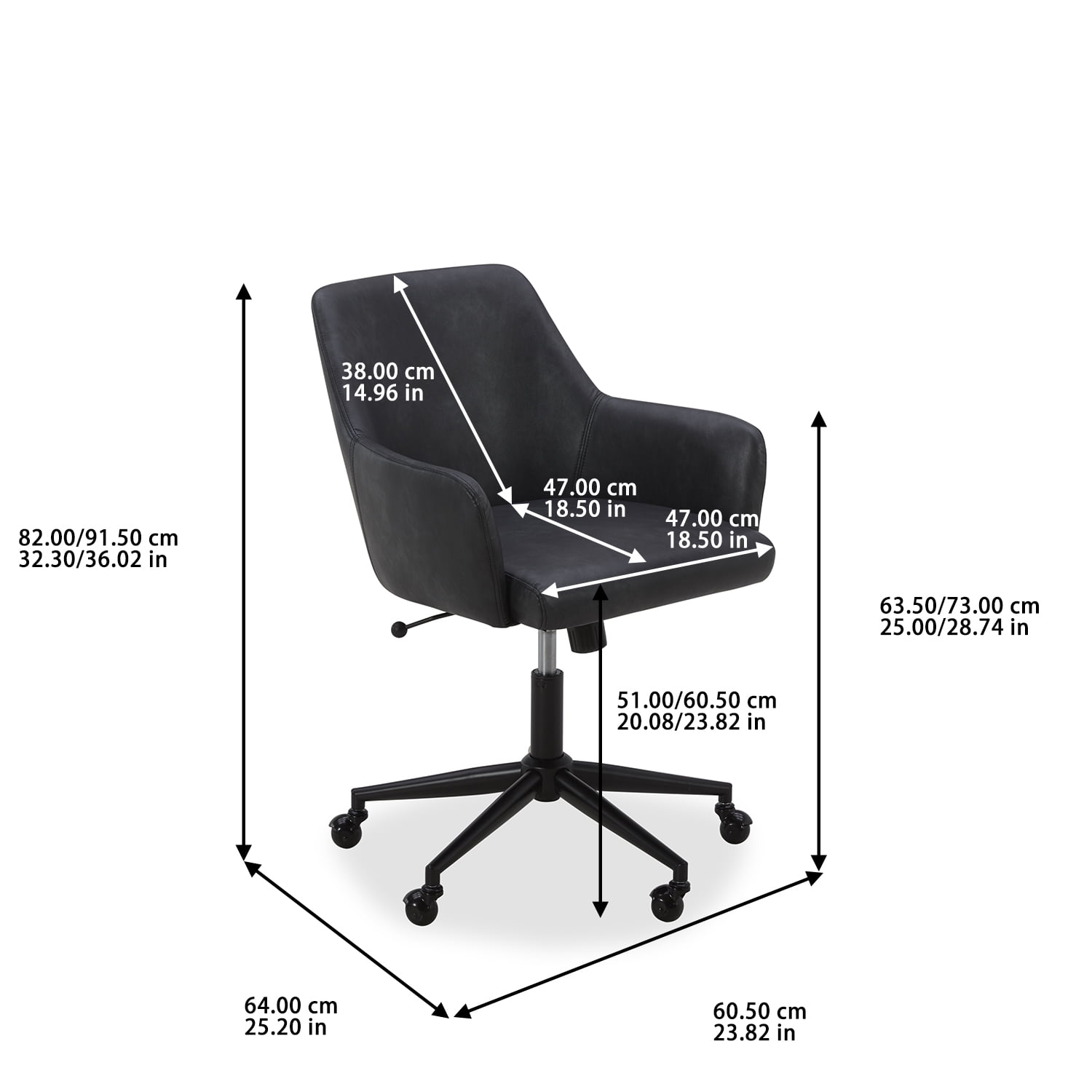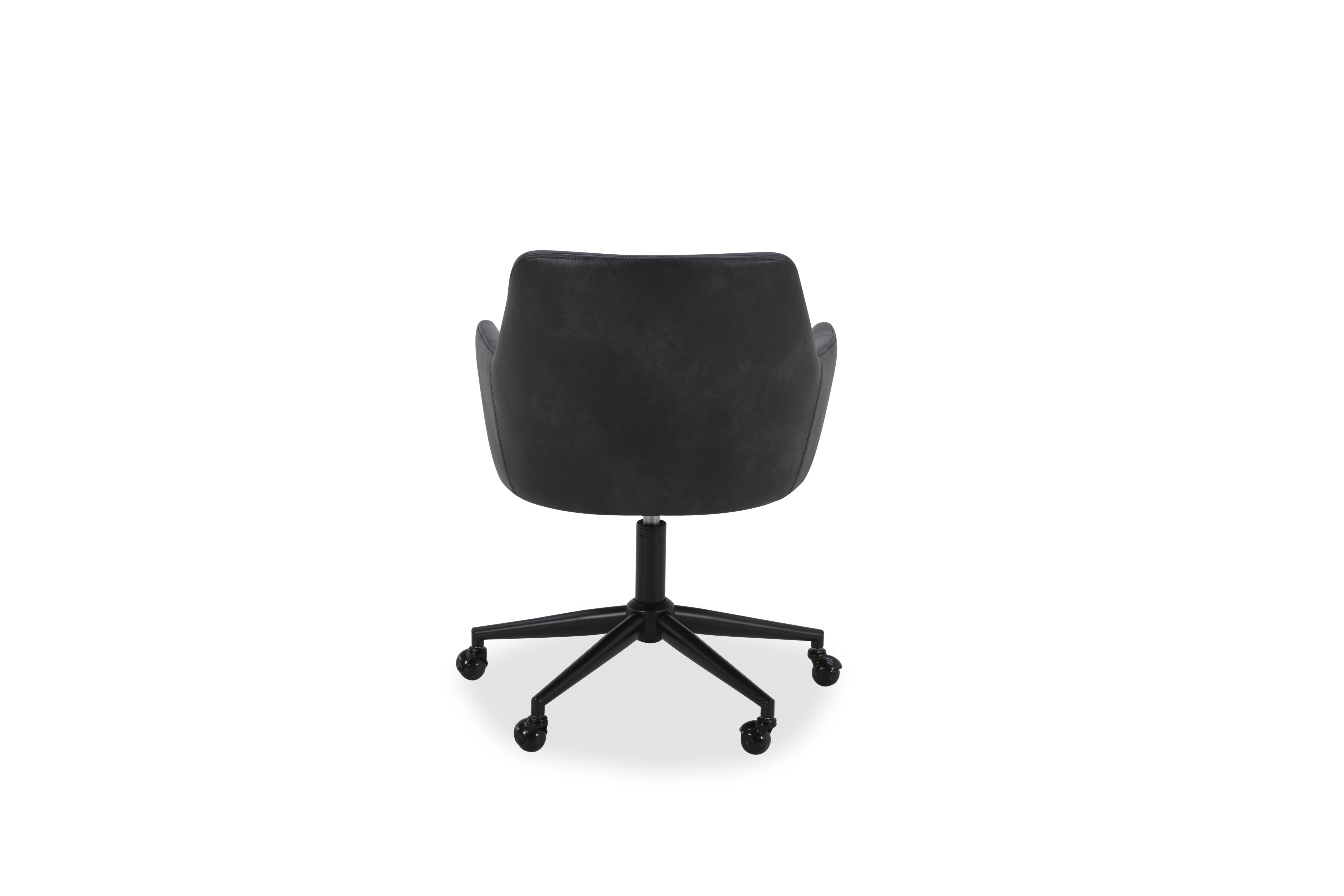 The Better Homes & Gardens Greyson Office Chair, Black, is a sleek and stylish choice for any home office or workspace. With its rounded arms and matching stitching, this chair exudes a modern, professional, functional, and aesthetically pleasing look. Upholstered in luxurious faux black leather, the Greyson Office Chair adds a touch of sophistication to any office environment. Equipped with a convenient swivel caster base and gas lift mechanism, this chair offers optimal mobility and adjustability. Whether you need to move around your workspace or adjust the height for maximum comfort, the Greyson Office Chair provides the flexibility you need to stay productive throughout the day. The high-density foam cushions and webbed seat suspension ensure a comfortable seating experience, allowing you to focus on your work without sacrificing comfort. The solid and engineered wood construction offers durability and stability, making this chair a reliable choice for long-term use. While the Greyson Office Chair boasts a sturdy build, it requires simple assembly, allowing for easy setup and quick integration into your workspace. The Better Homes & Gardens Greyson Office Chair combines comfort, style, and functionality, making it a practical and elegant addition to any home office or professional setting.