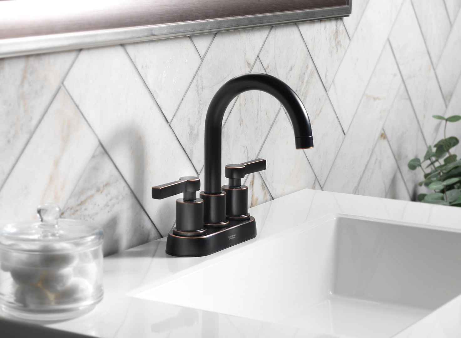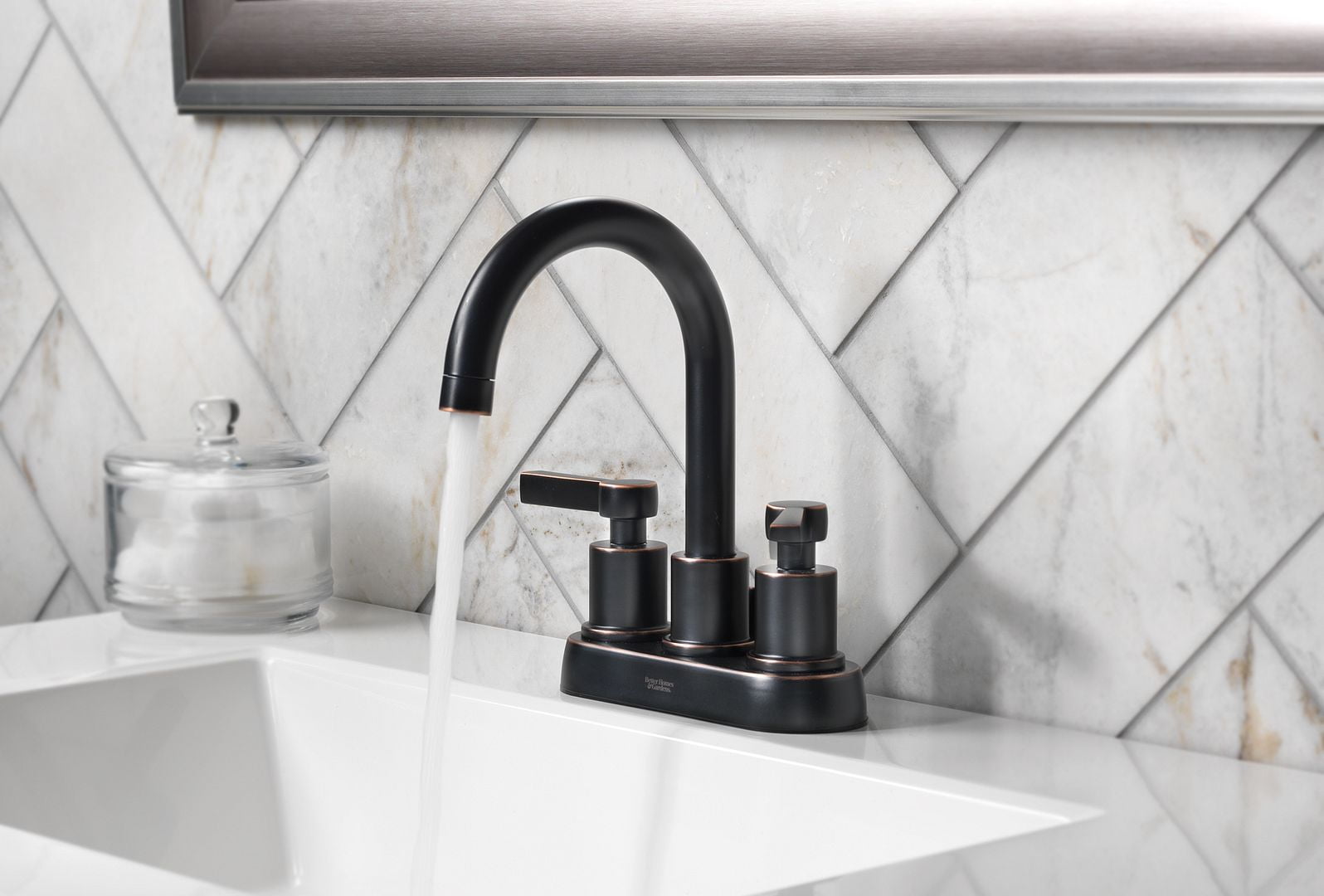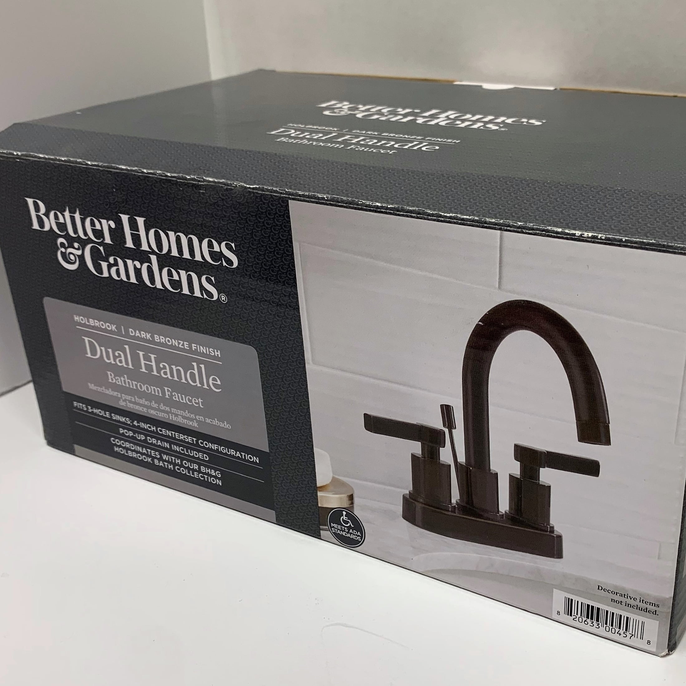 Installs on most 3-hole bath sinks with a 4-inch centerset Push pop-up drain included 1.2 gallons per minute (GPM) conserves water without sacrificing performance Two handles give separate access to hot and cold water Coordinates perfectly with the Better Homes & Gardens Holbrook Bath Collection Backed by a limited lifetime warranty Oil-rubbed bronze finish provides a timeless look