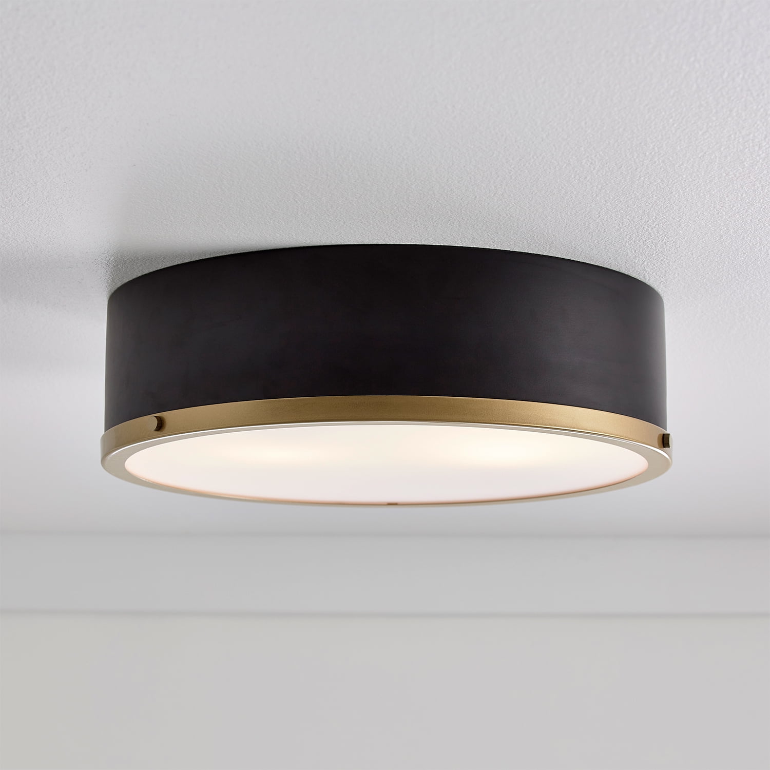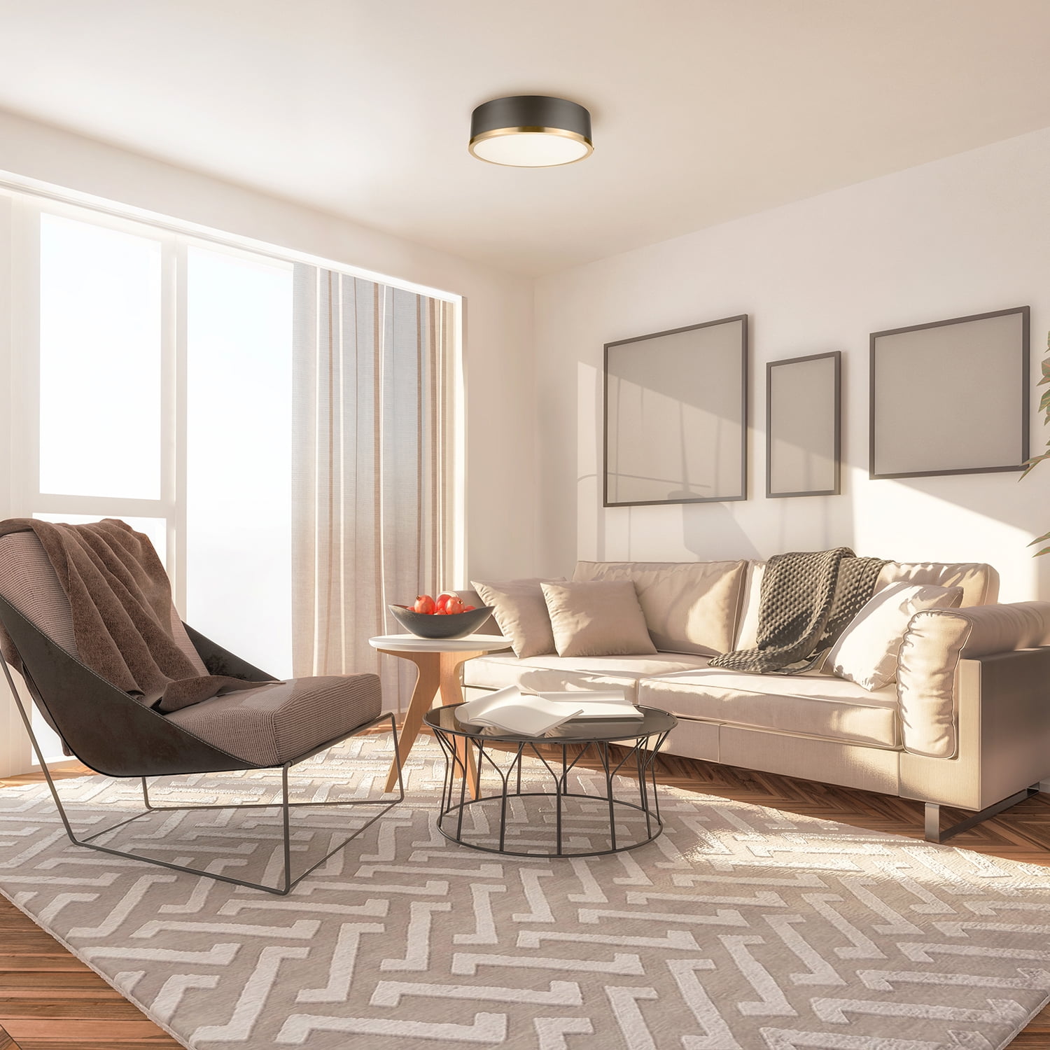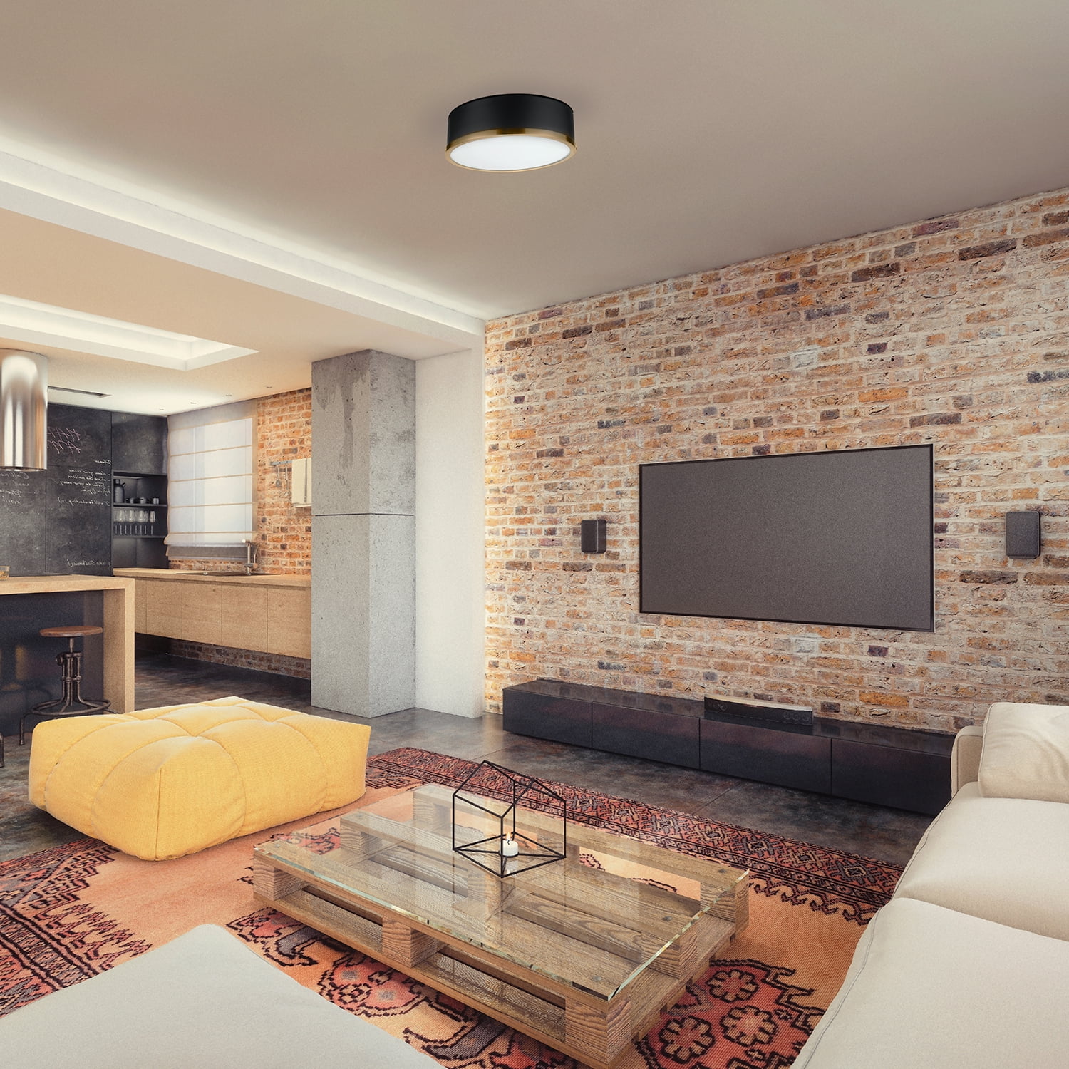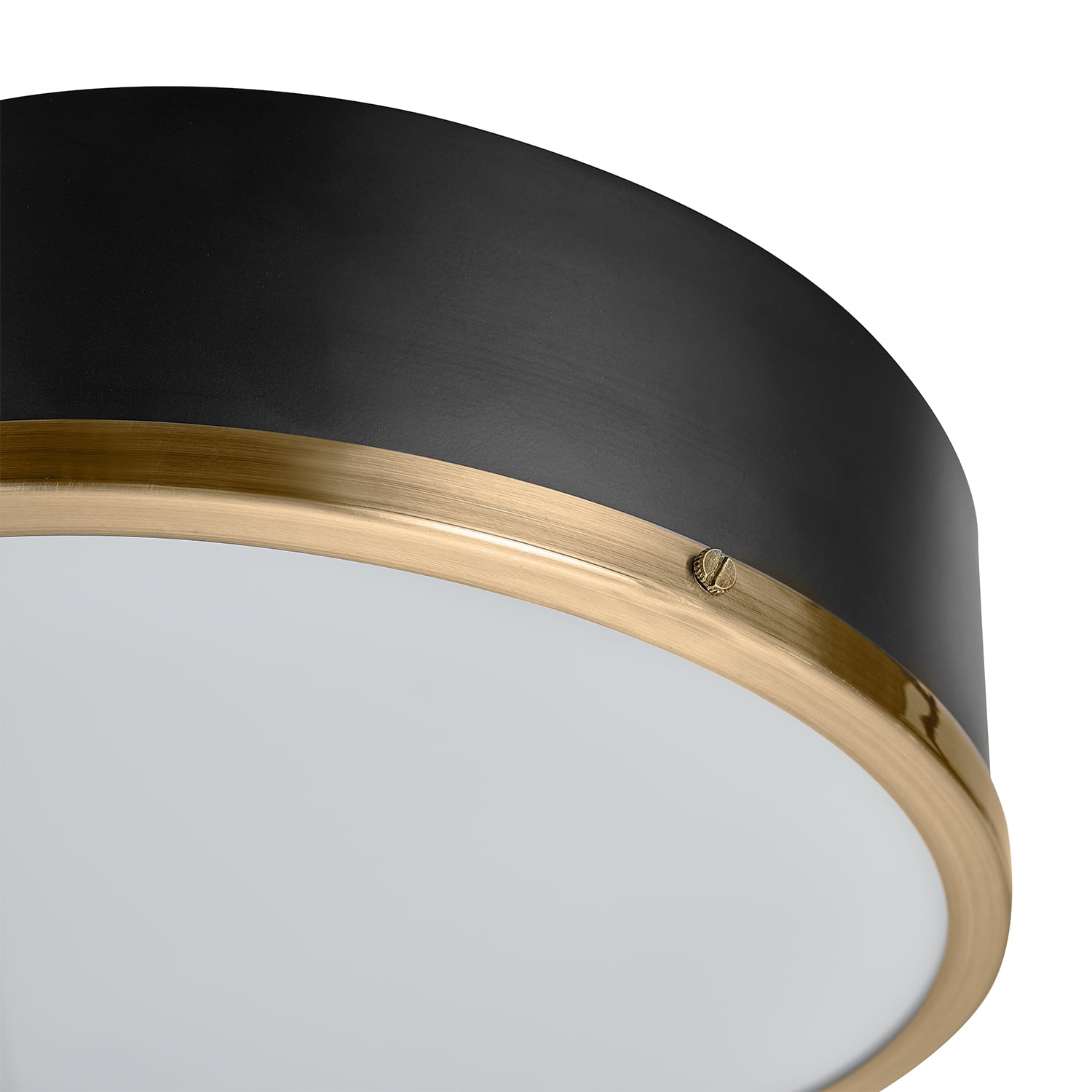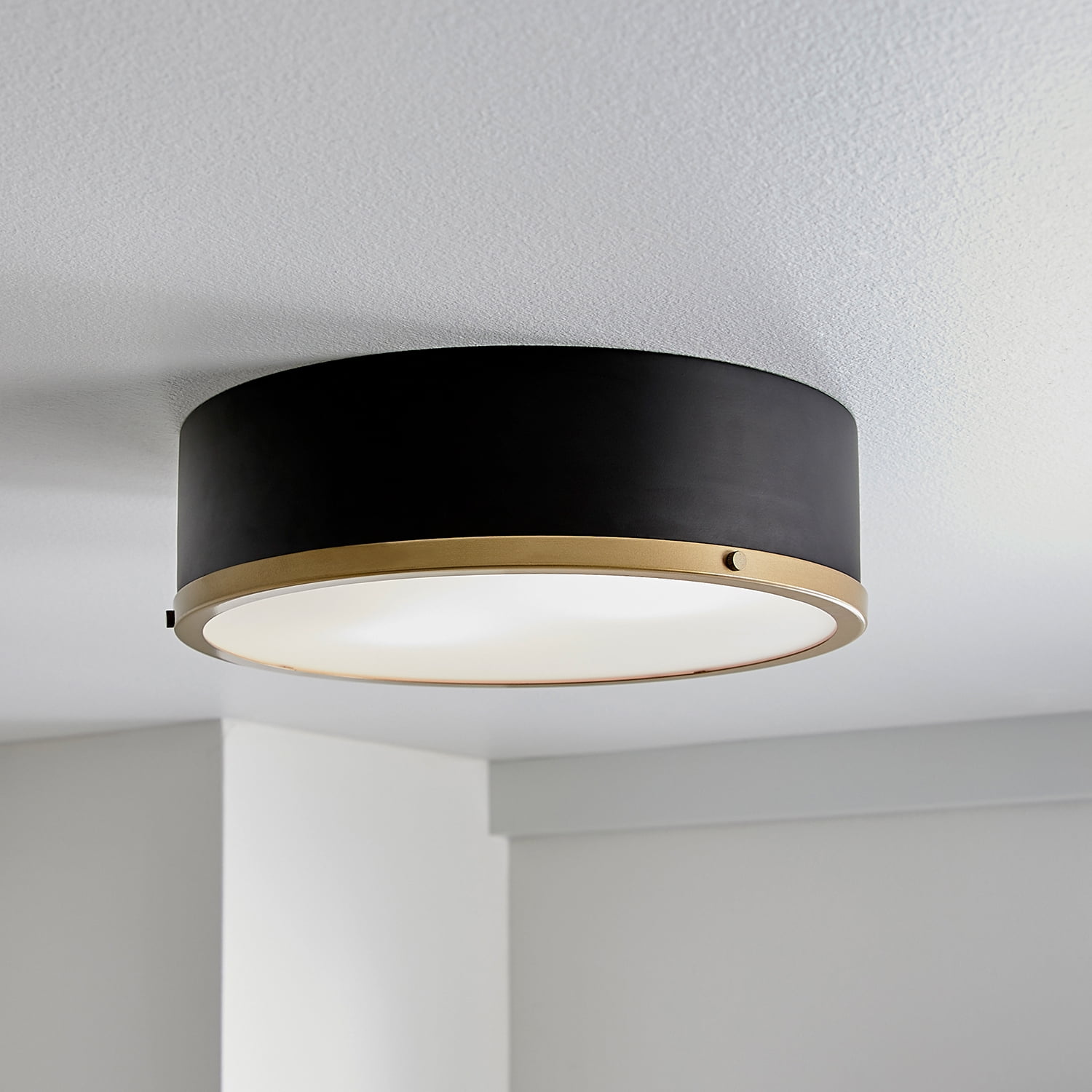 MODERN GLAM: with a matte black finish and an burnished brass accent the Irving Park Flush Mount Ceiling Light offers a sleek sophisticated style to complement contemporary, glam, modern and industrial décor FROSTED GLASS SHADE: the frosted glass shade emits warm, diffused light perfect for making your space comfortable and relaxing DIMMABLE: fully dimmable with a compatible dimmer switch to create the perfect atmosphere (dimmer switch sold separately) BULB INCLUDED: 2x E26/Medium Base A19 Shape Title 20 Energy Star Certified LED Bulbs Included – Each Bulb: 10 Watts (60 Watt equivalent), 800 Lumens, 3000 Kelvin, 90 CRI, Dimmable, 10,000 Hour Bulb Life PERFECT LIGHTING EVERY TIME: add a lower wattage bulb for a softer light or a higher wattage bulb for a brighter light to have the perfect lighting solution every time MAKE IT SMART: automate your flush mount by adding Smart bulbs – simply screw them in and create different lighting solutions with your phone – the options are endless! EASY INSTALL: includes all mounting hardware for quick and easy installation