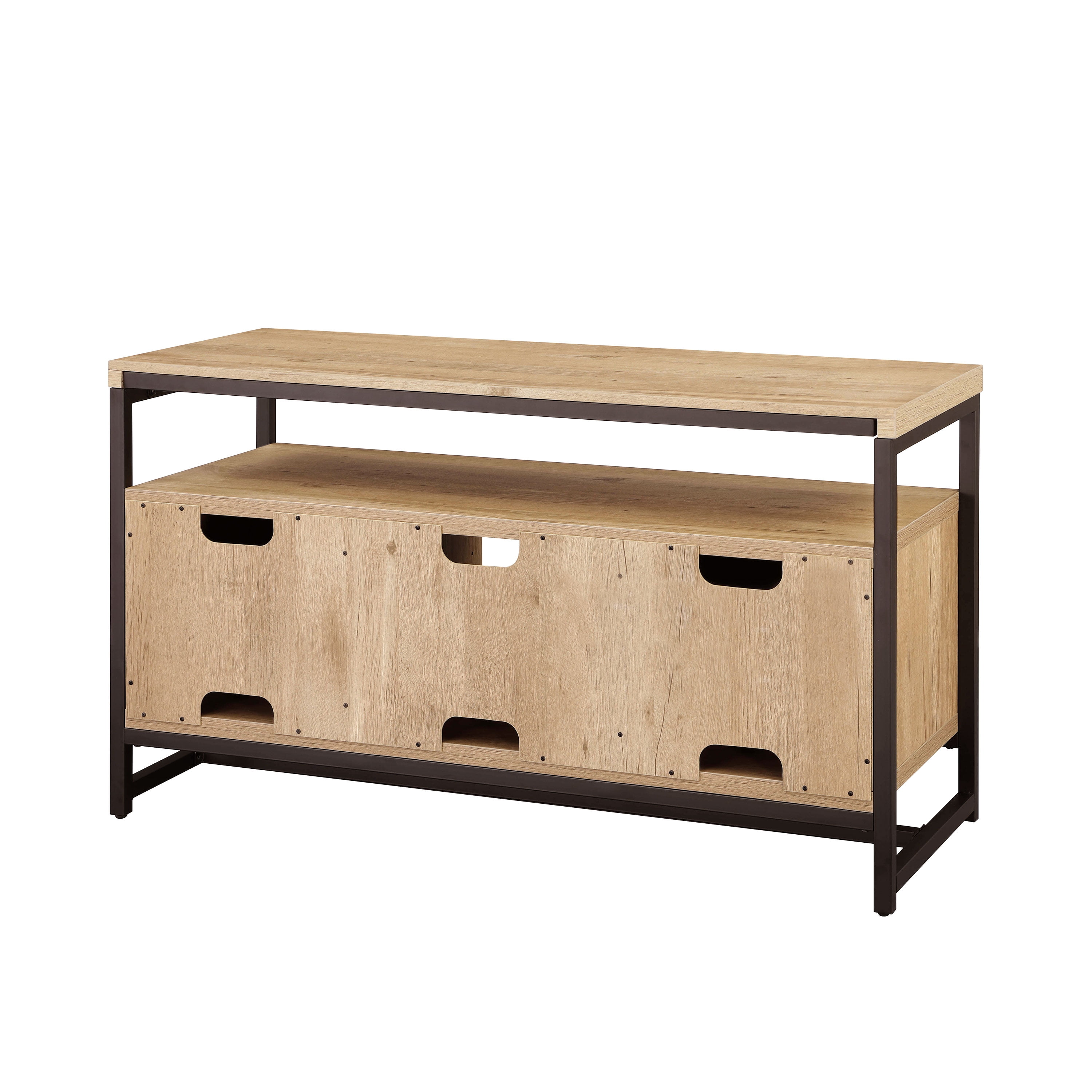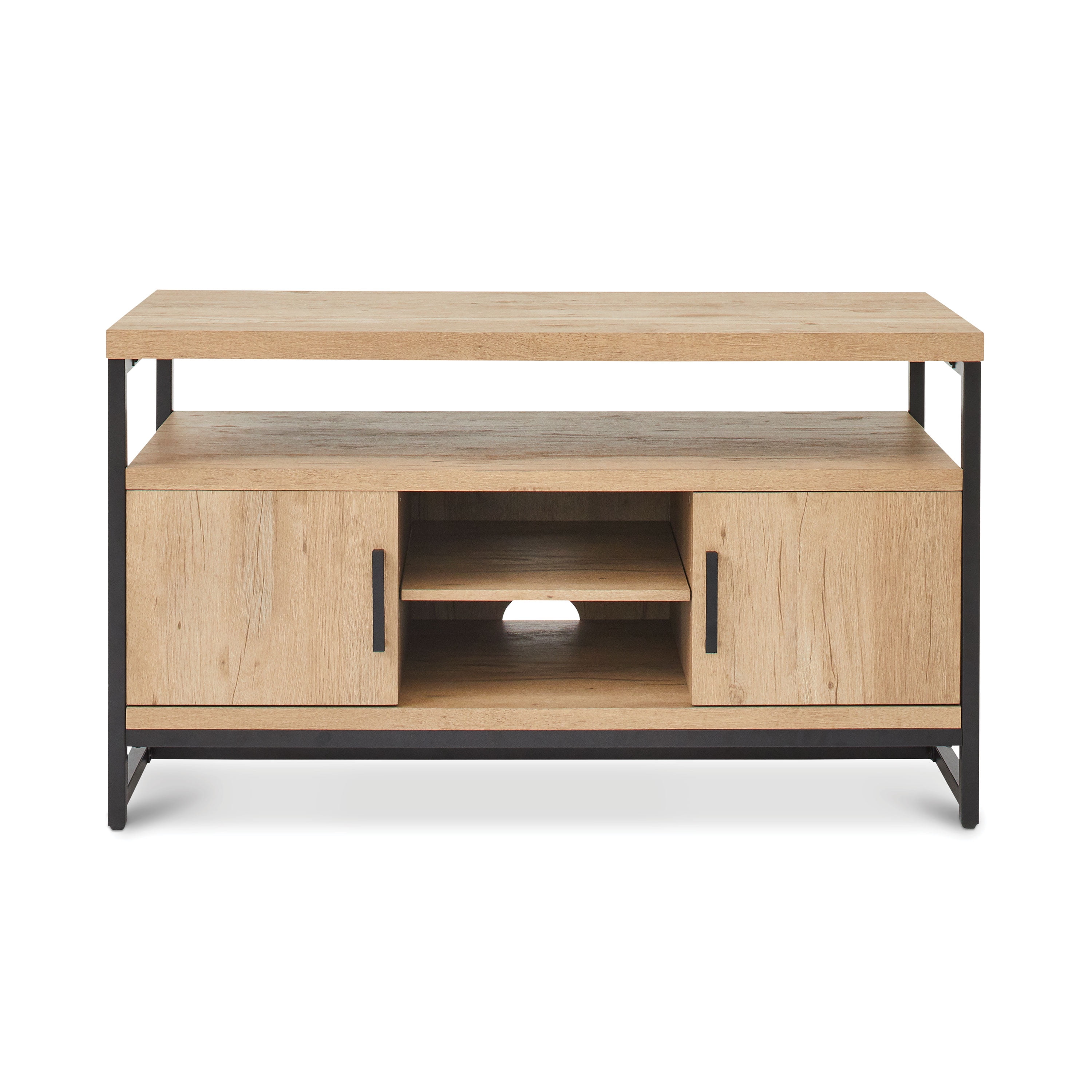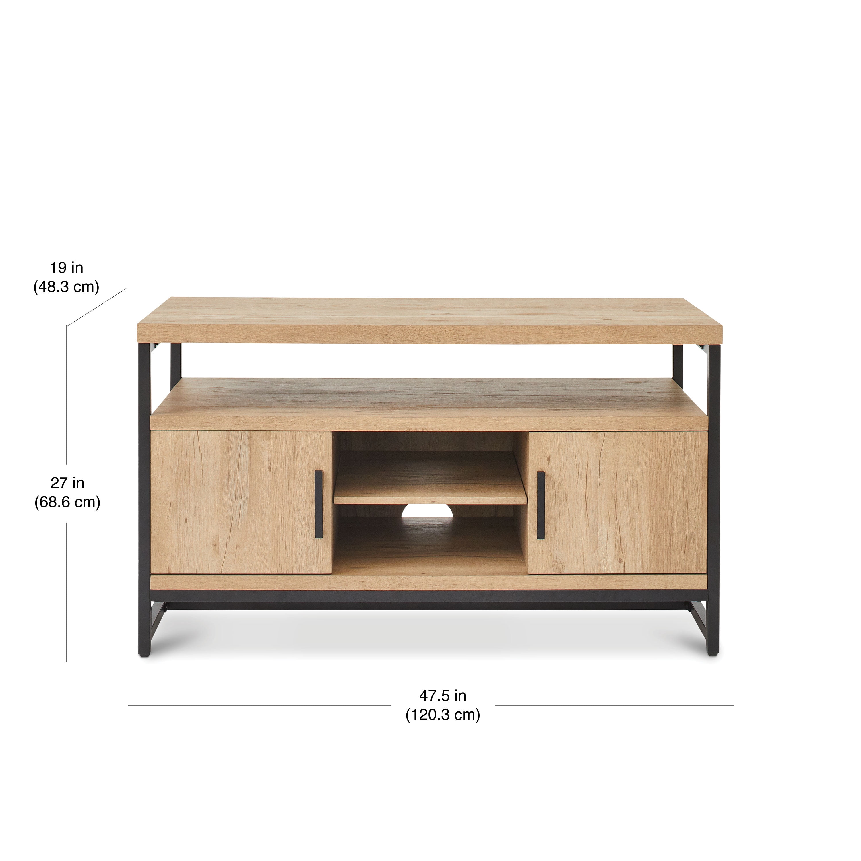 Better Homes & Gardens Jace Industrial Media TV Stand for TVs up to 55″, Natural Oak