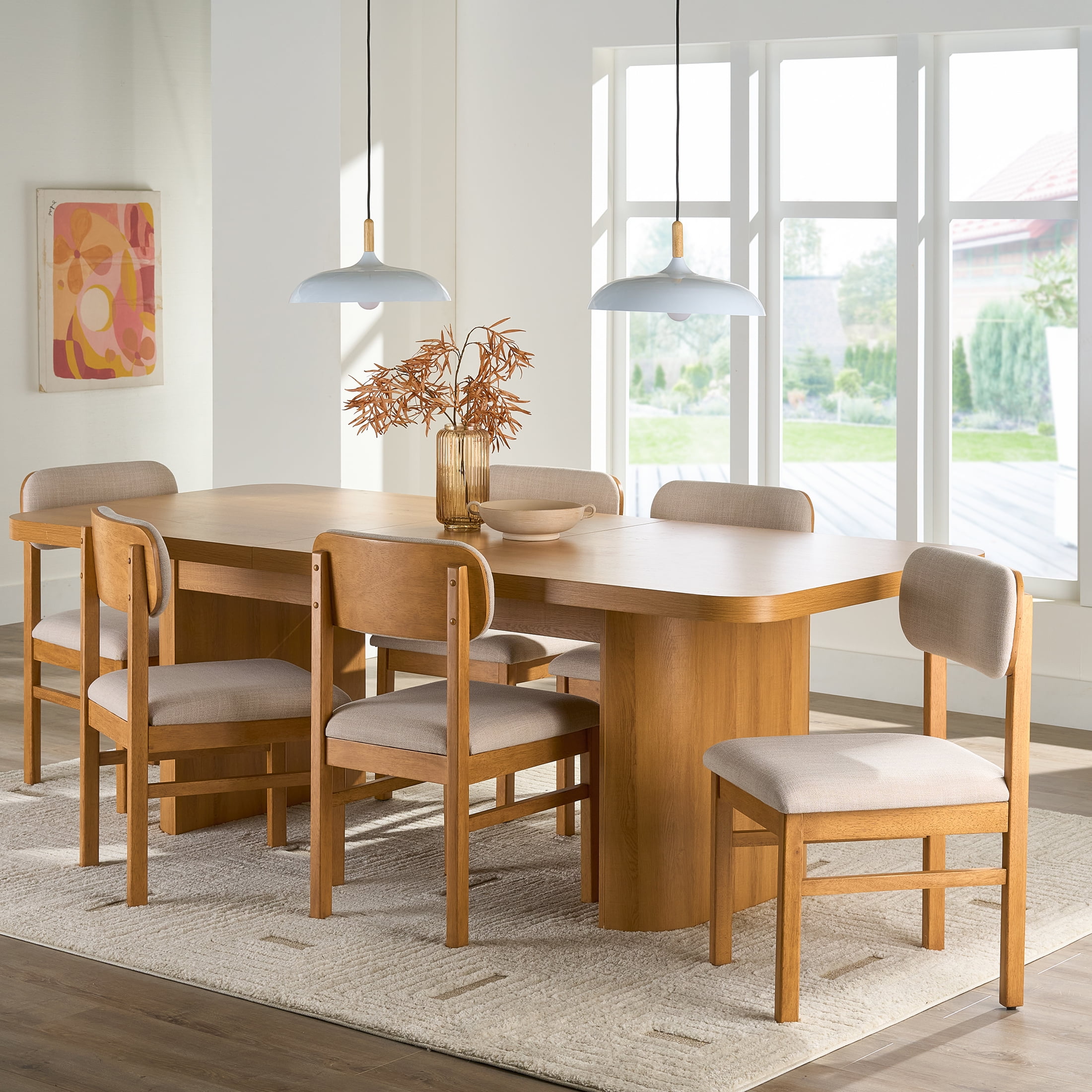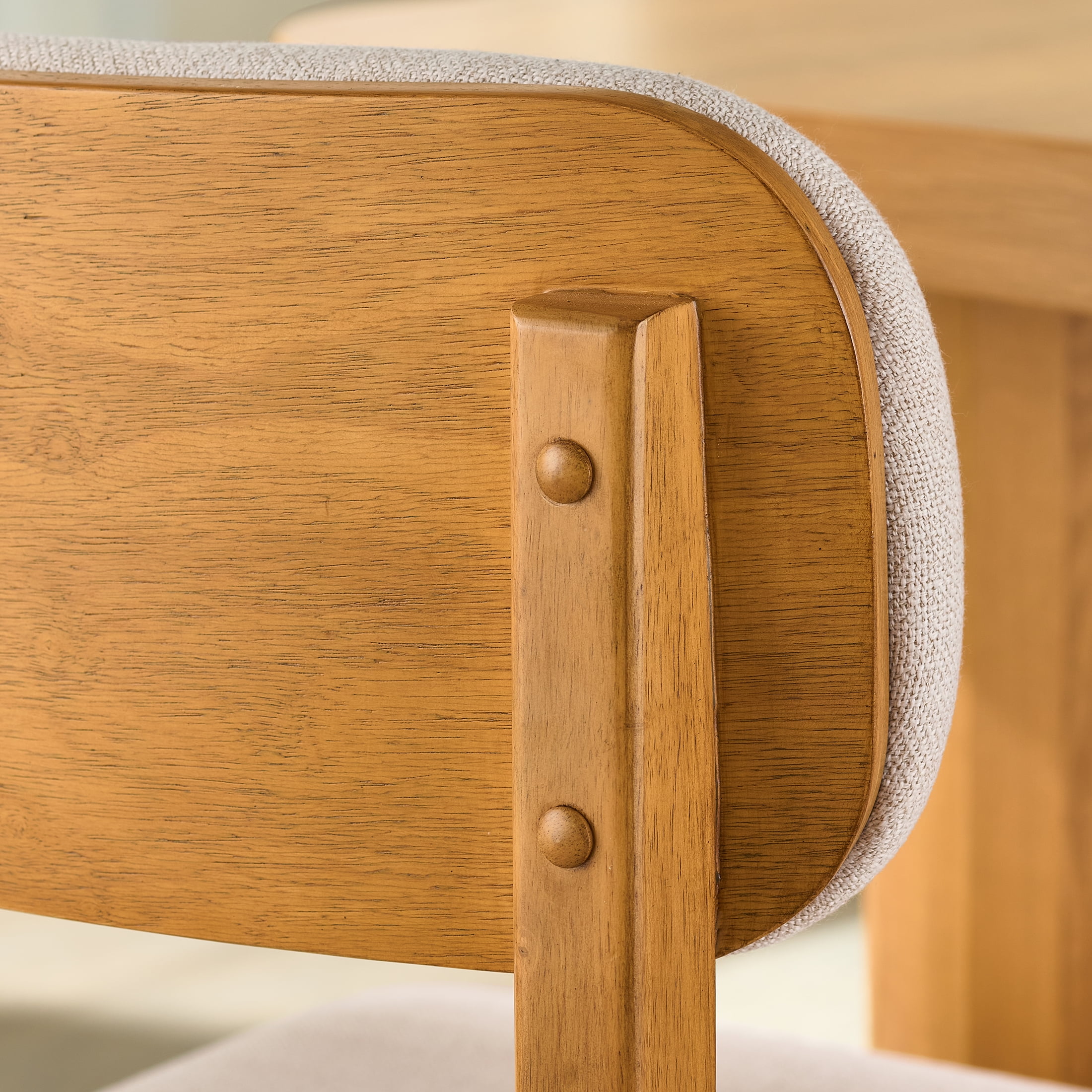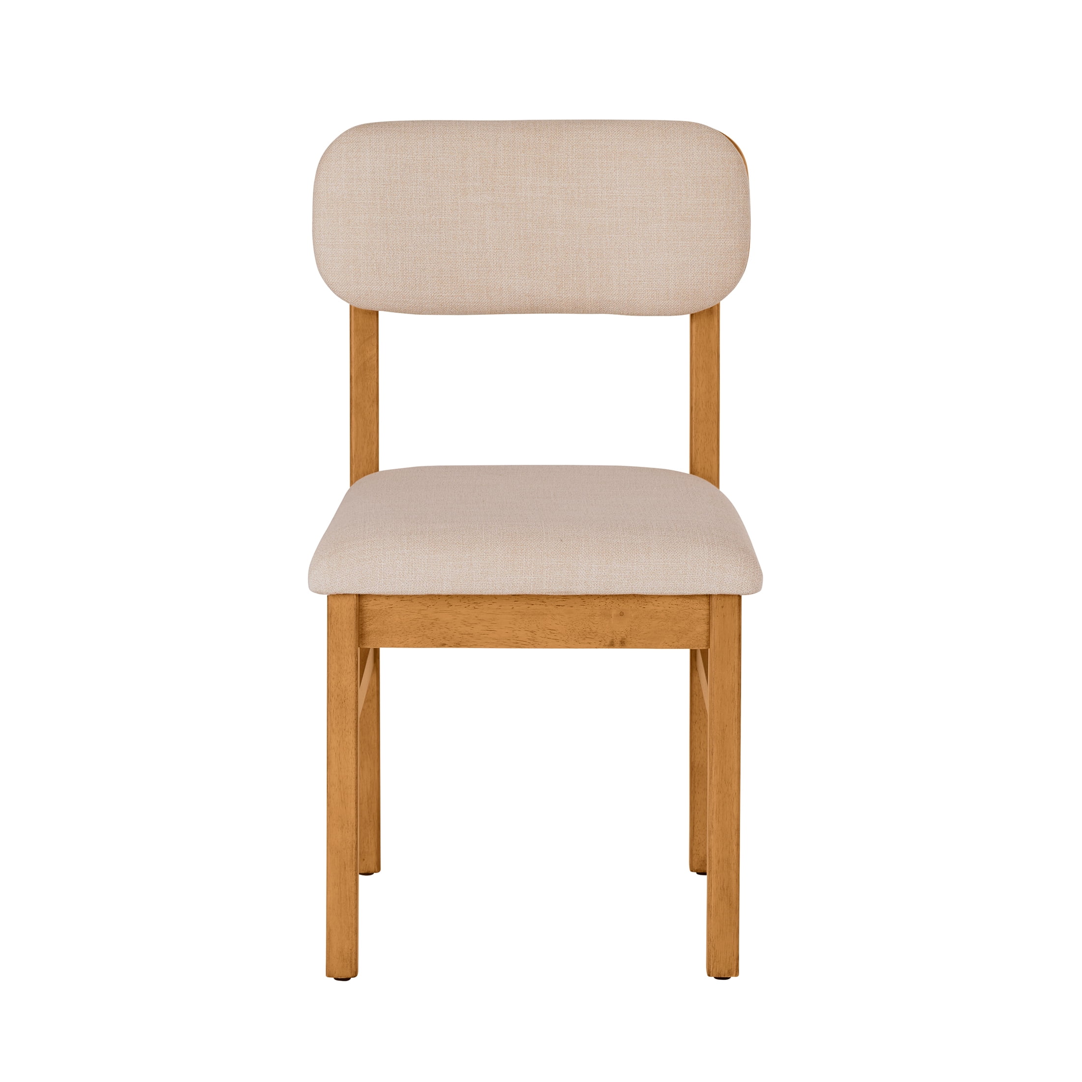 Complement your dining table with the Better Homes & Gardens Juliet Dining Chairs in Light Honey. This 2-piece set of contemporary dining chairs has a natural, textured finish for an elevated design that can pair with any style. The curved backrest and comfortable seat features padded woven fabric in a light cream color that contrasts beautifully with the warm, honey-hued legs. The spacious seats are attached to a solid rubberwood frame for long-lasting durability and support. These chairs can accent a dining table or serve as extra seating in your kitchen, living room, or office. Pair them with other Light Honey furniture from the Better Homes & Gardens Juliet Collection to complete the look.