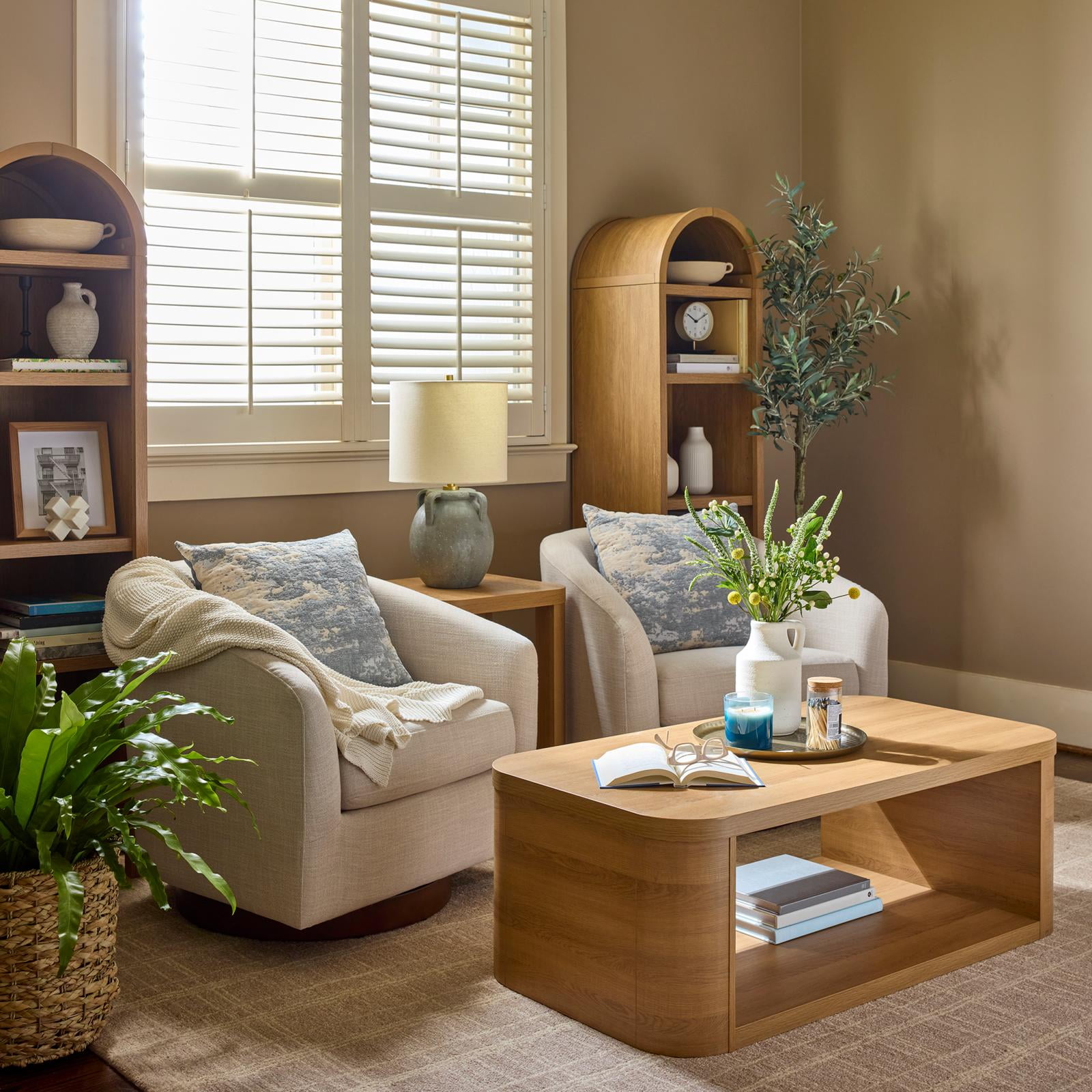 The Better Homes & Gardens Juliet Narrow Arch Bookcase is a perfect blend of form, function, and flair for your home. This bookcase is a statement of elegance and versatility, designed to enhance any interior décor. With its rounded arch top, the Juliet Narrow Arch Bookcase captivates with architectural grace and a modern twist, available in two chic finishes: Light Honey and Black. These options ensure a perfect match for your personal style, whether you’re aiming for a bright and airy vibe or a sleek, sophisticated look. The Juliet ladder bookcase stands out with its five spacious shelves, each adjustable to accommodate your collection of books, cherished collectibles or decorative pieces. This flexibility makes it an ideal solution for those who love to refresh their spaces or display an ever-changing array of items. The shelves are built to be sturdy, ensuring that your treasures are displayed securely and stylishly. Crafted with durability in mind, the Juliet Narrow Arch Bookcase promises long-lasting quality. Whether it finds a place in your living room, study, or hallway, this modern bookshelf is designed to elevate your space and showcase your style with sophistication. Make the Juliet part of your home and enjoy the perfect combination of beauty and practicality it brings to every corner. The Better Homes & Gardens Juliet Narrow Arch Bookcase more than a bookcase – it’s a centerpiece that reflects your taste and complements your lifestyle.