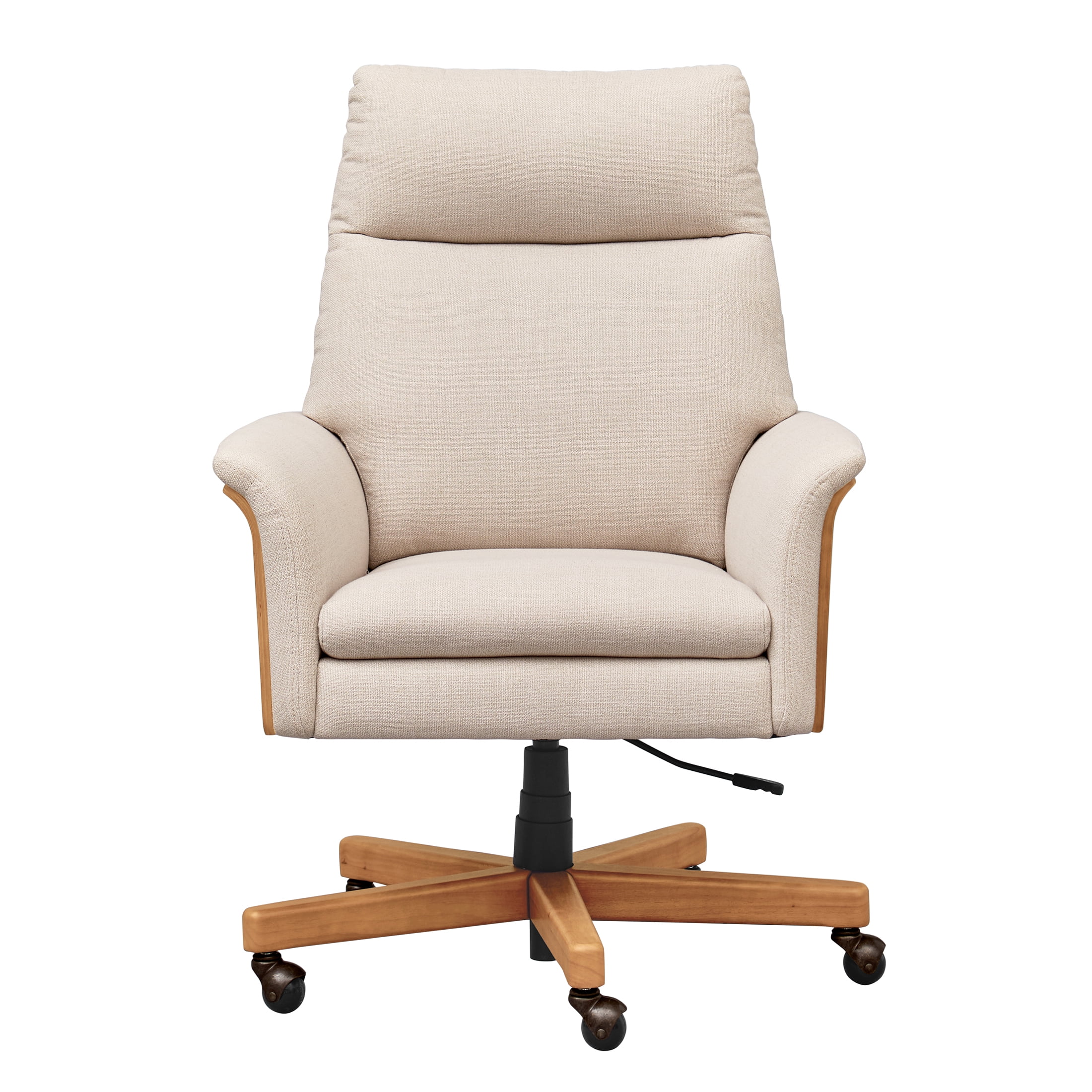Better Homes & Gardens Juliet Tall Back Office Chair, Cream and Light Honey Finish Set up your office for success with the Better Homes & Gardens Juliet Tall Back Office Chair for a comfortable, sophisticated desk chair choice. The office chair’s flared arms add a classy touch while giving you a roomy, captain-chair feeling, contouring the body with a tall, fixed back for ergonomic support. The woodgrain base complements the premium dacron fabric and color-matched stitching, coming in three color choices—Olive and Light Honey Woodgrain, Cream and Rich Black Woodgrain, and Cream and Light Honey Woodgrain. Constructed with high-quality components, the high-density foam seat cushion and sturdy wood frame ensure the chair is built to last. The chair’s gas lift with an adjustable height caster base allows easy adjustments to find the perfect seating position for your comfort and to move around your office space. The Better Homes & Gardens Juliet Tall Back Office Chair is made for comfort and style and is a versatile choice for many types of desks. Combined with other furniture pieces in the Juliet Collection, it takes the guesswork out of room styling, making it easy to find a cohesive look for less.
