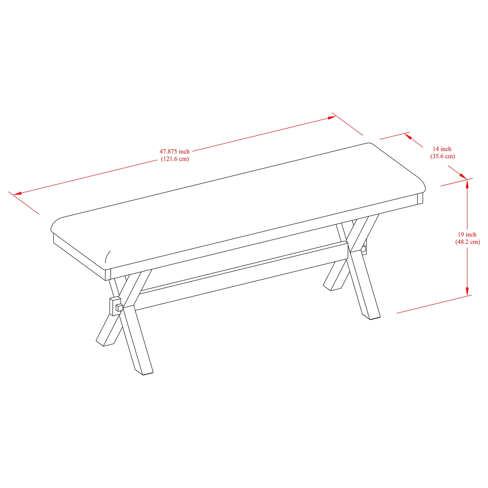 Specifications: Add seating to your dining room table, kitchen or living area with this stylish bench Cognac finish and rich brown cushion combine to offer a comfortable bench that complements decor styles from modern and elegant to rustic and vintage Coordinates with chairs, benches and other furniture in our Maddox Crossing Dining Collection Comfortably seats two people Sturdy construction Padded seat cushion Easy assembly Dining chair dimensions: 47.87″ W x 14″ D x 19″ H (121.92 cm x 35.56 cm x 48.26 cm) Model: BH44-084-399-02